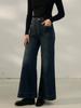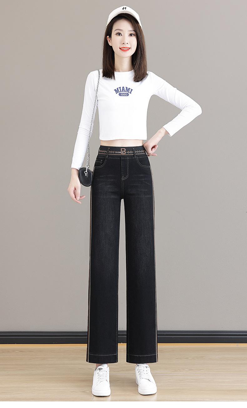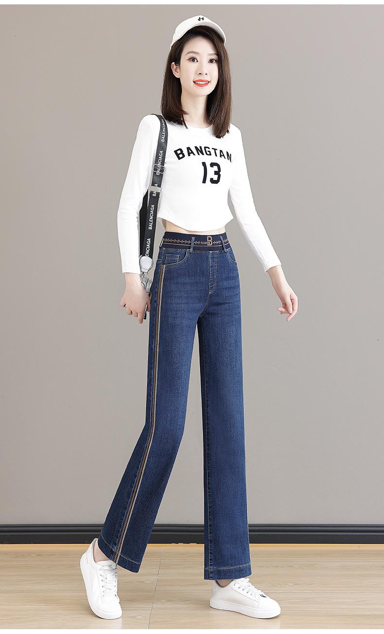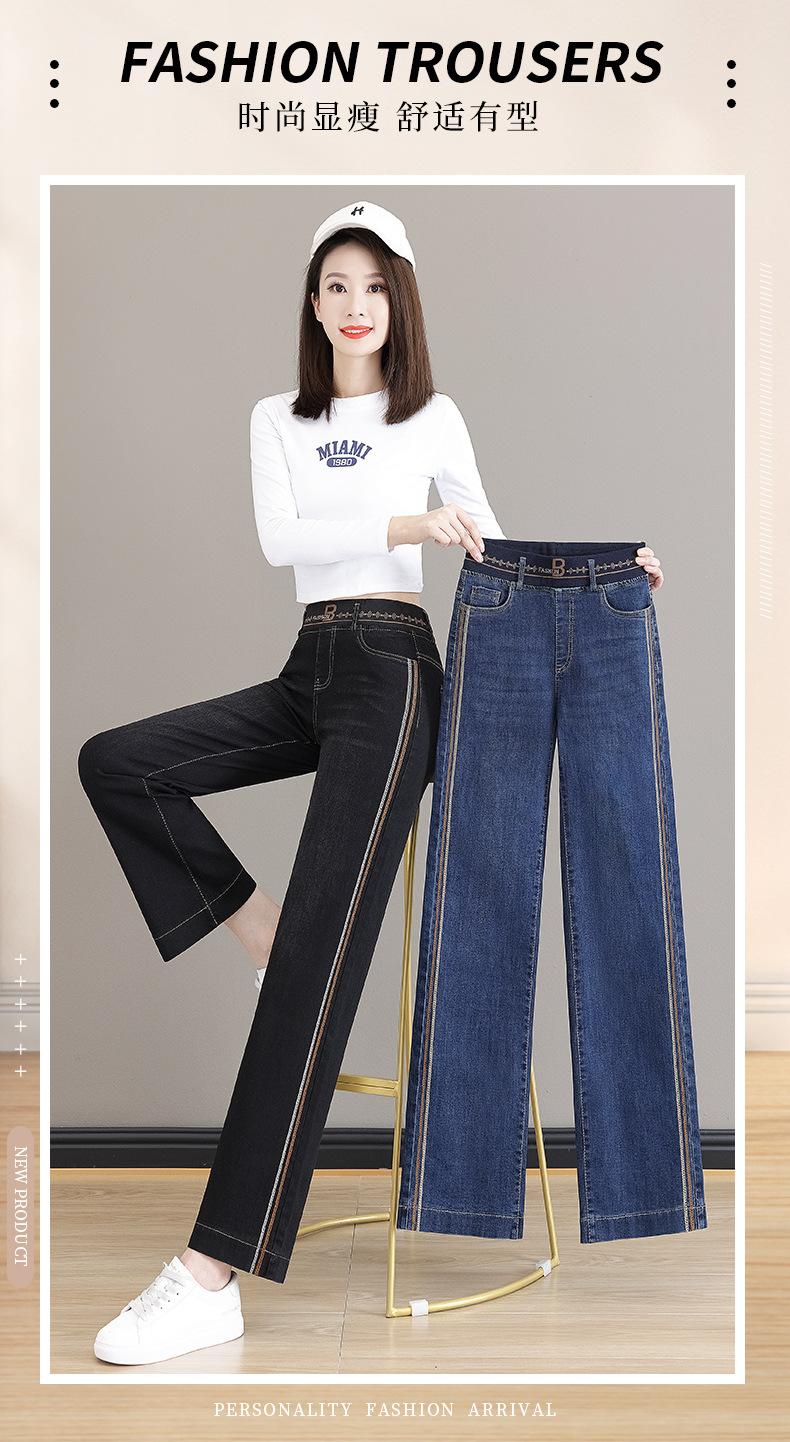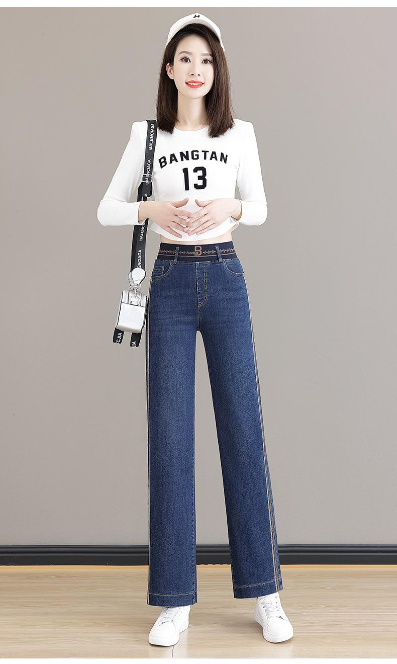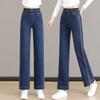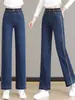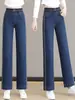 Jeans de Cintura Alta Pantalones de Pierna Ancha para Mujer 2025 Otoño e Invierno Nuevos Pantalones de Cintura Elástica Look Holgado Adelgazante Pantalones Rectos Pantalones