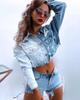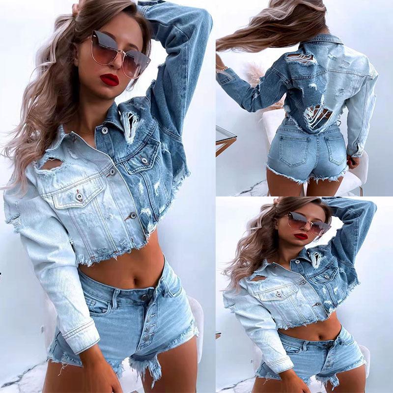 Chaqueta corta de Amazon para mujer, de primavera y otoño, de la marca Transfronteriza 2025, con degradado de mezclilla europeo y americano.