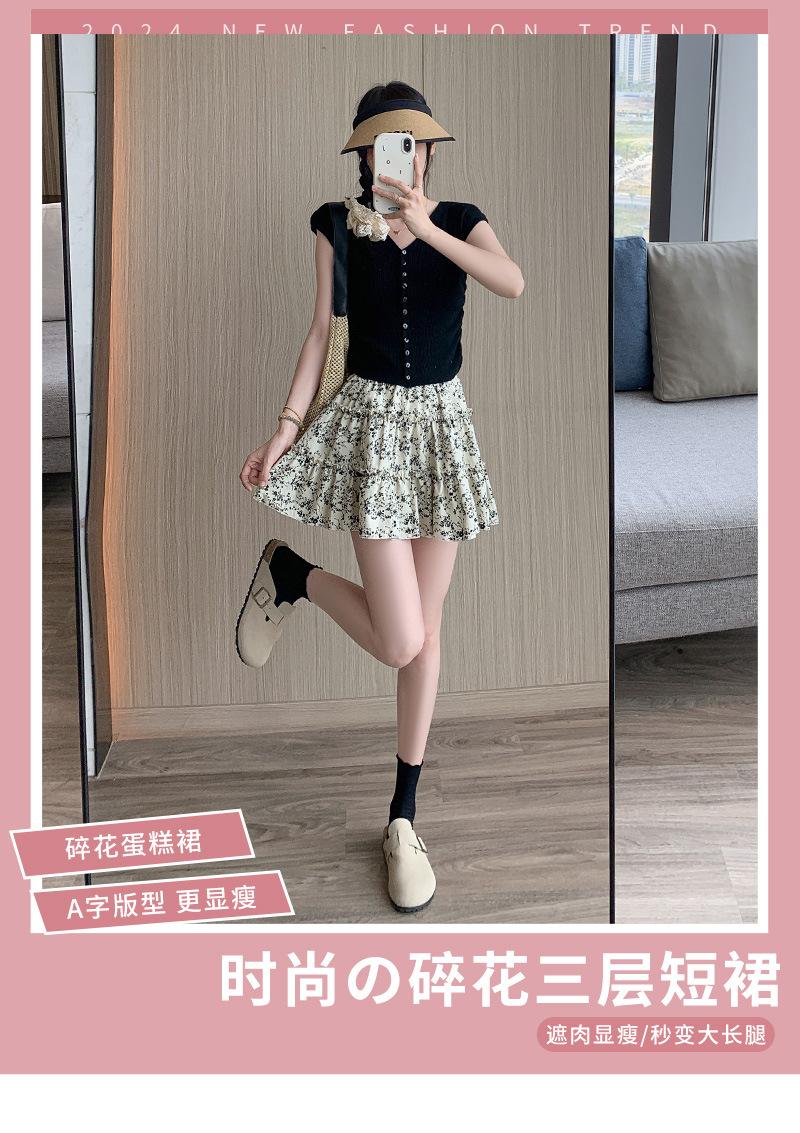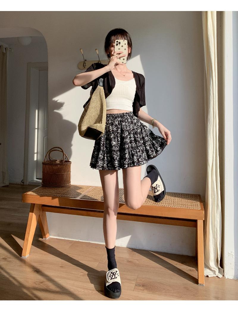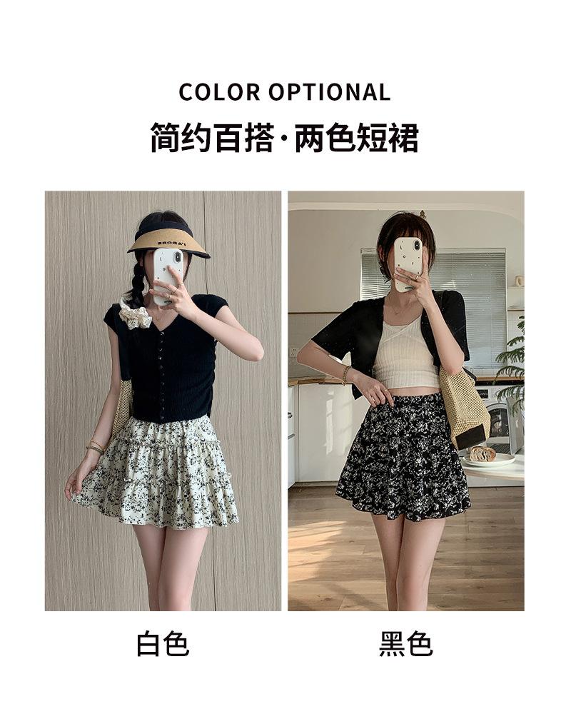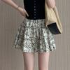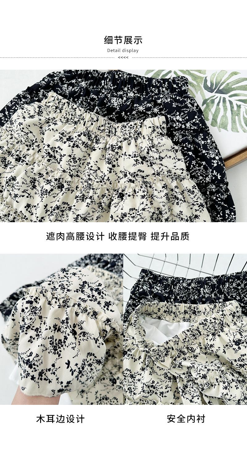 Dulce Falda de Pastel de Borde Delgado de Flores para Mujer Verano Cintura Alta Plisada Versátil Esponjosa Línea A Falda Anti-Exposición