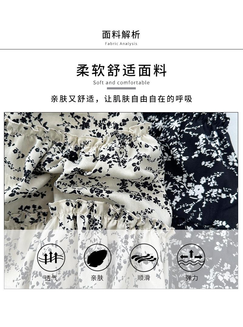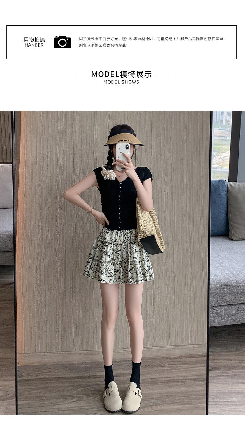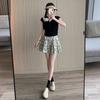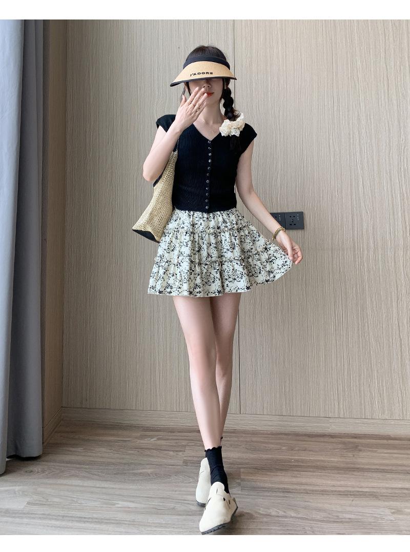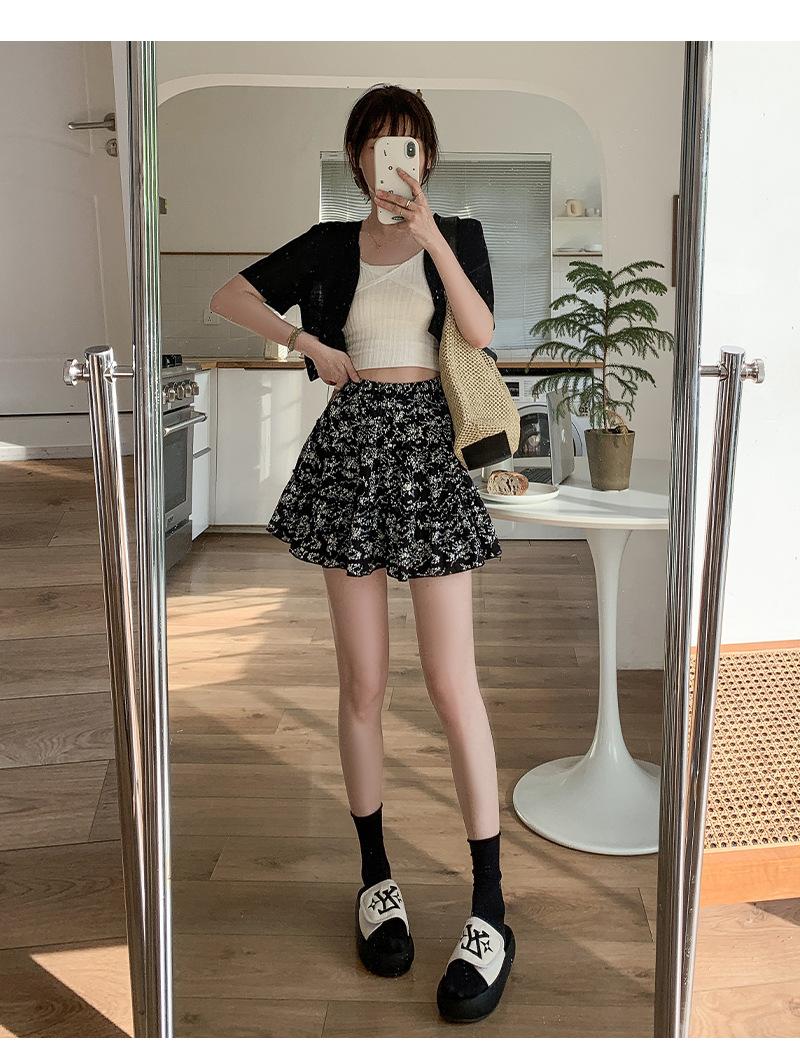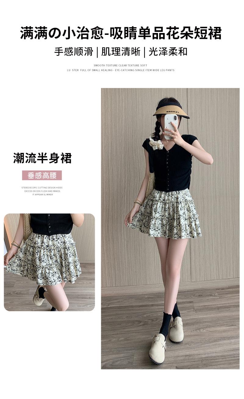 Dulce Falda de Pastel de Borde Delgado de Flores para Mujer Verano Cintura Alta Plisada Versátil Esponjosa Línea A Falda Anti-Exposición