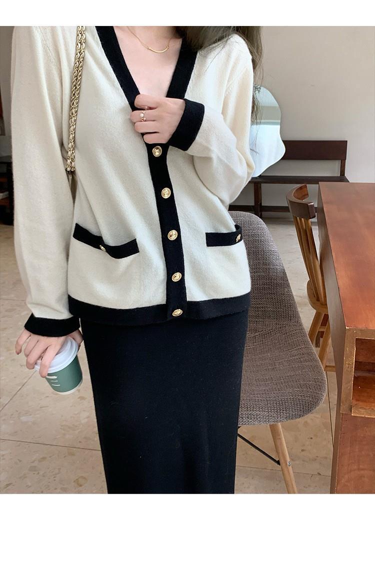 Elegante cárdigan de punto de cachemira con cuello en V y colores a juego estilo Chanel para mujer, nuevo abrigo de lana holgado que combina con todo para primavera.