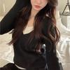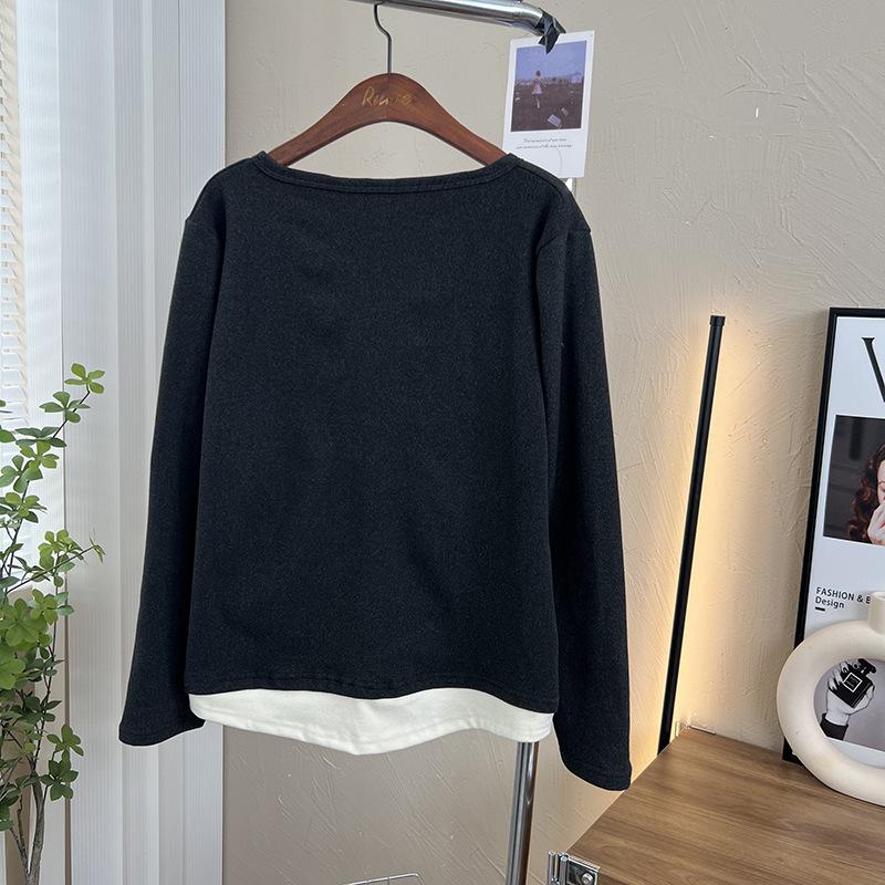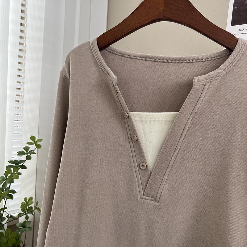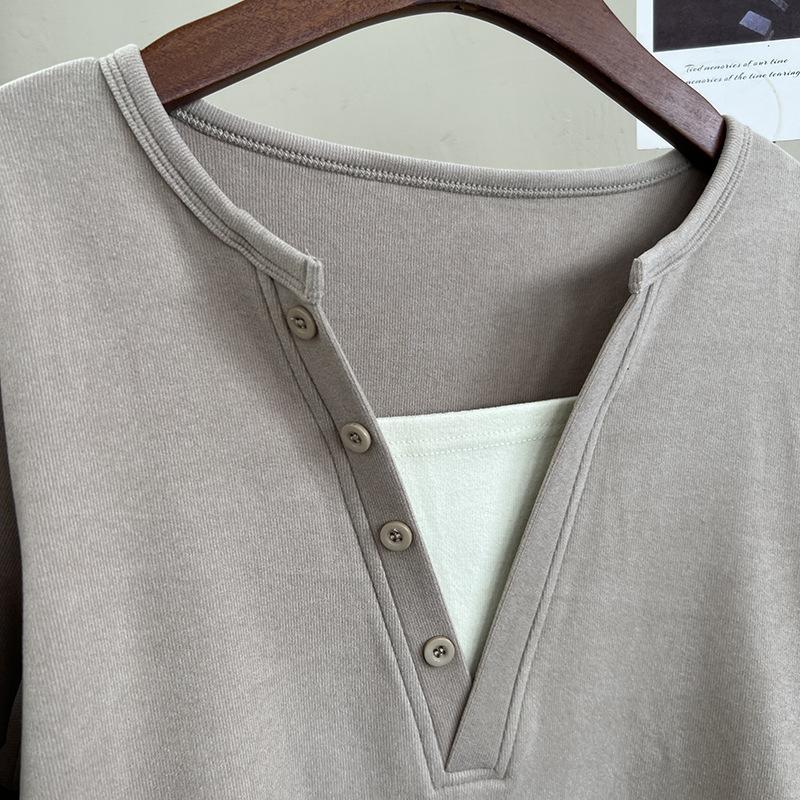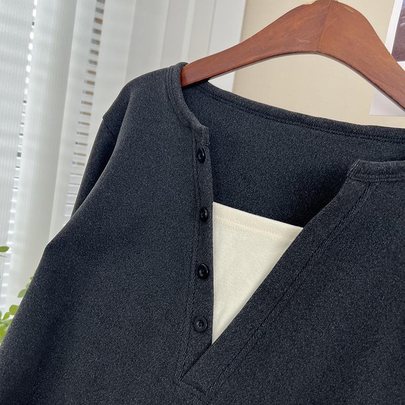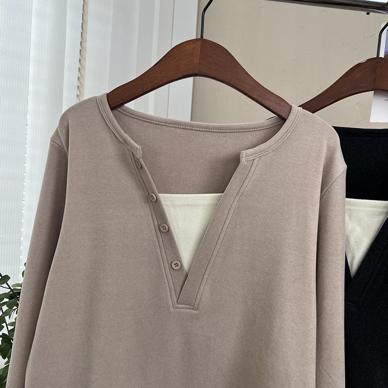 Terciopelo de Doble Cara Súper Cálido Básico Versátil Cuello en V Abotonadura Inferior Camisa 2023 Nuevo Top de Otoño e Invierno de Dos Piezas Falsas para Mujer