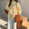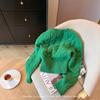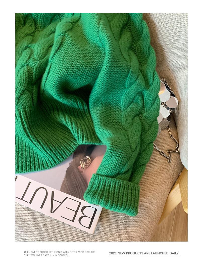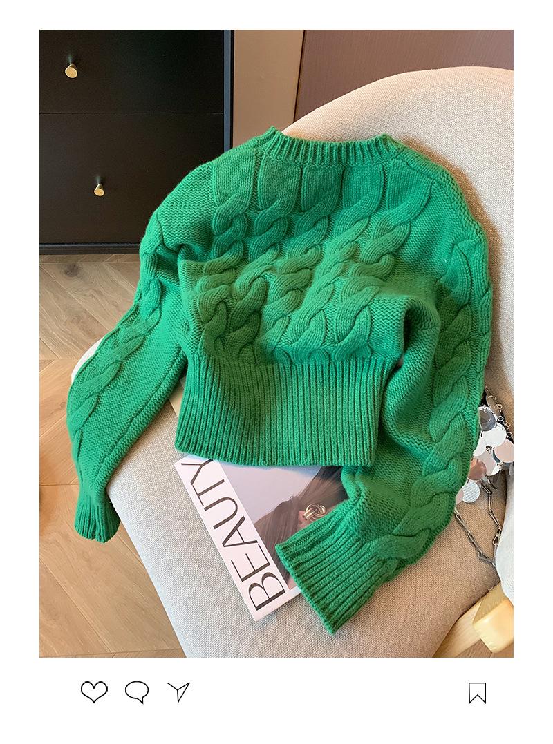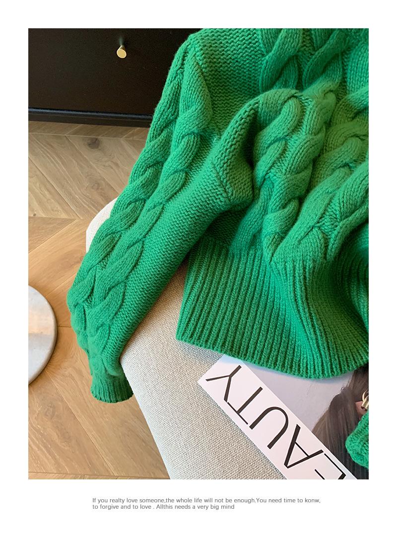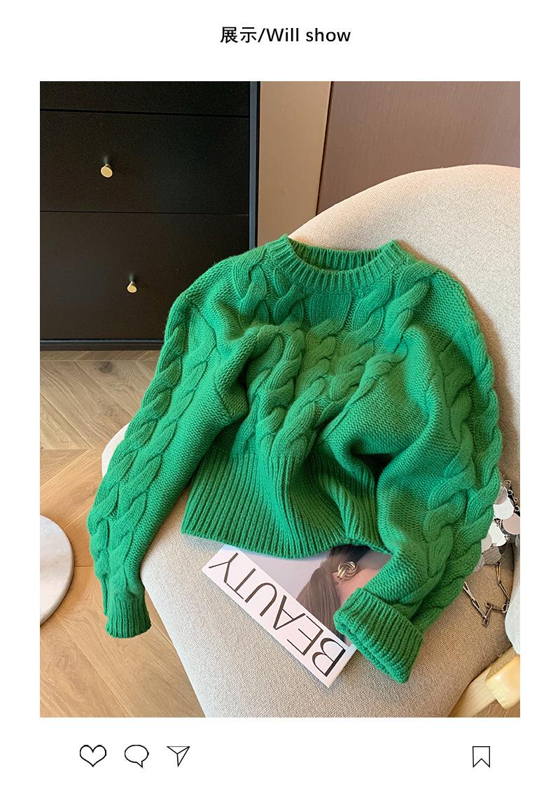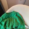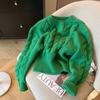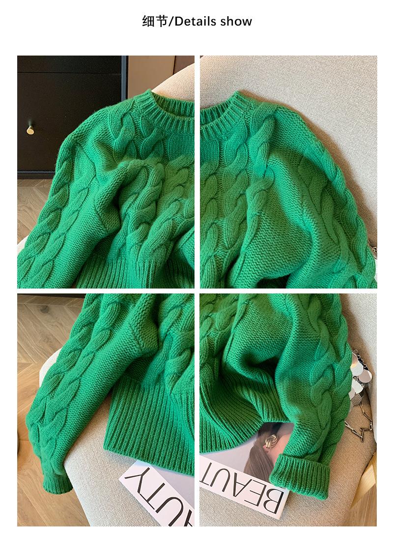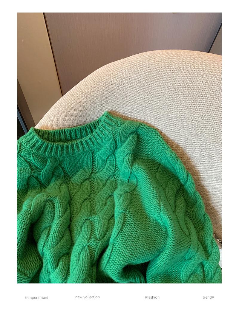 Suéter verde de punto trenzado de cuello redondo para mujer otoño e invierno 2023 perezoso suave y glutinoso holgado casual versátil suéter para exterior