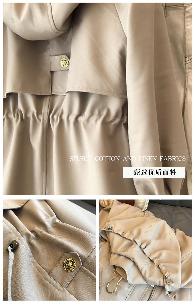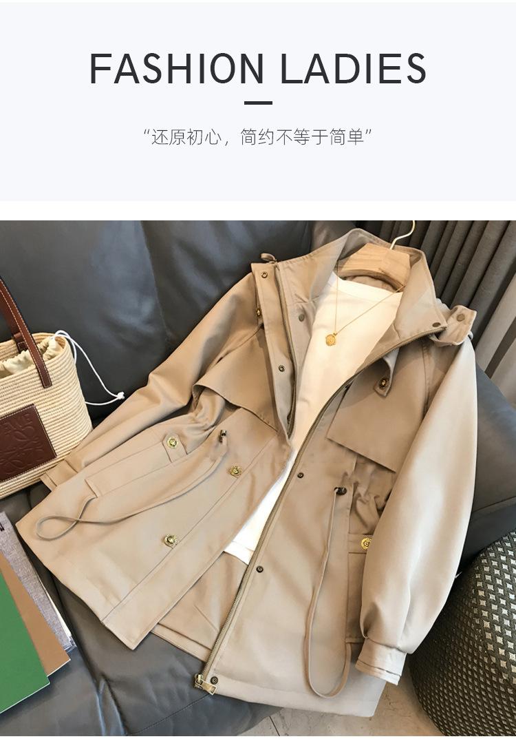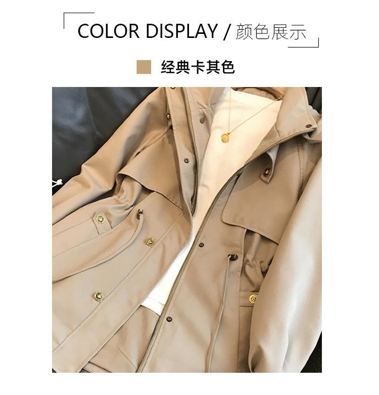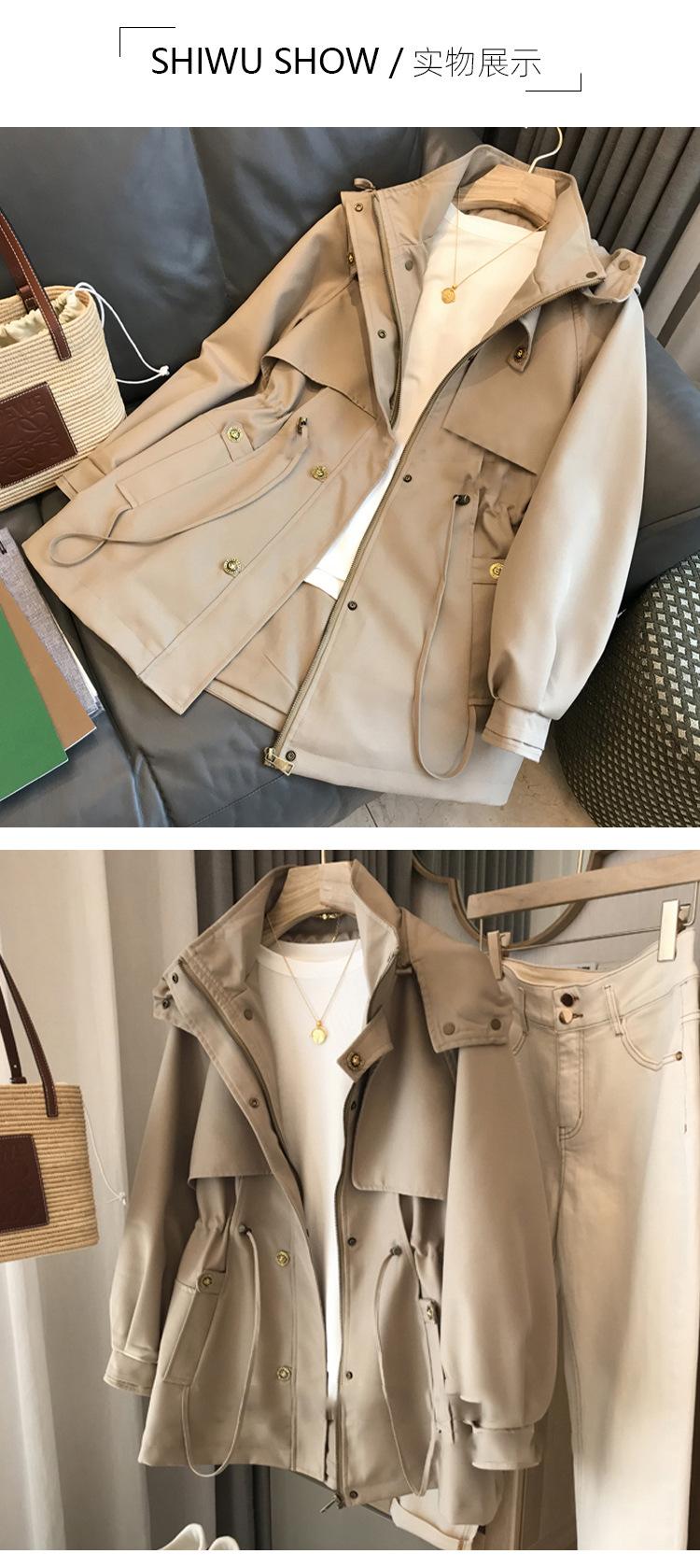 Gabardina Caqui con Capucha para Mujer 2025 Nuevo Estilo Corto de Primavera y Otoño Estilo Otoñal Petite Chaqueta de Primavera y Otoño Ropa de Mujer
