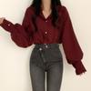 Camisa de gasa con mangas abullonadas sueltas de color sólido de nueva moda de otoño 2021, camisa de manga larga para mujer, camisa de estilo coreano