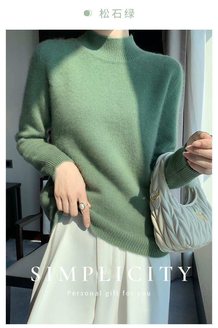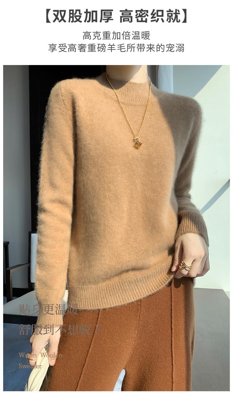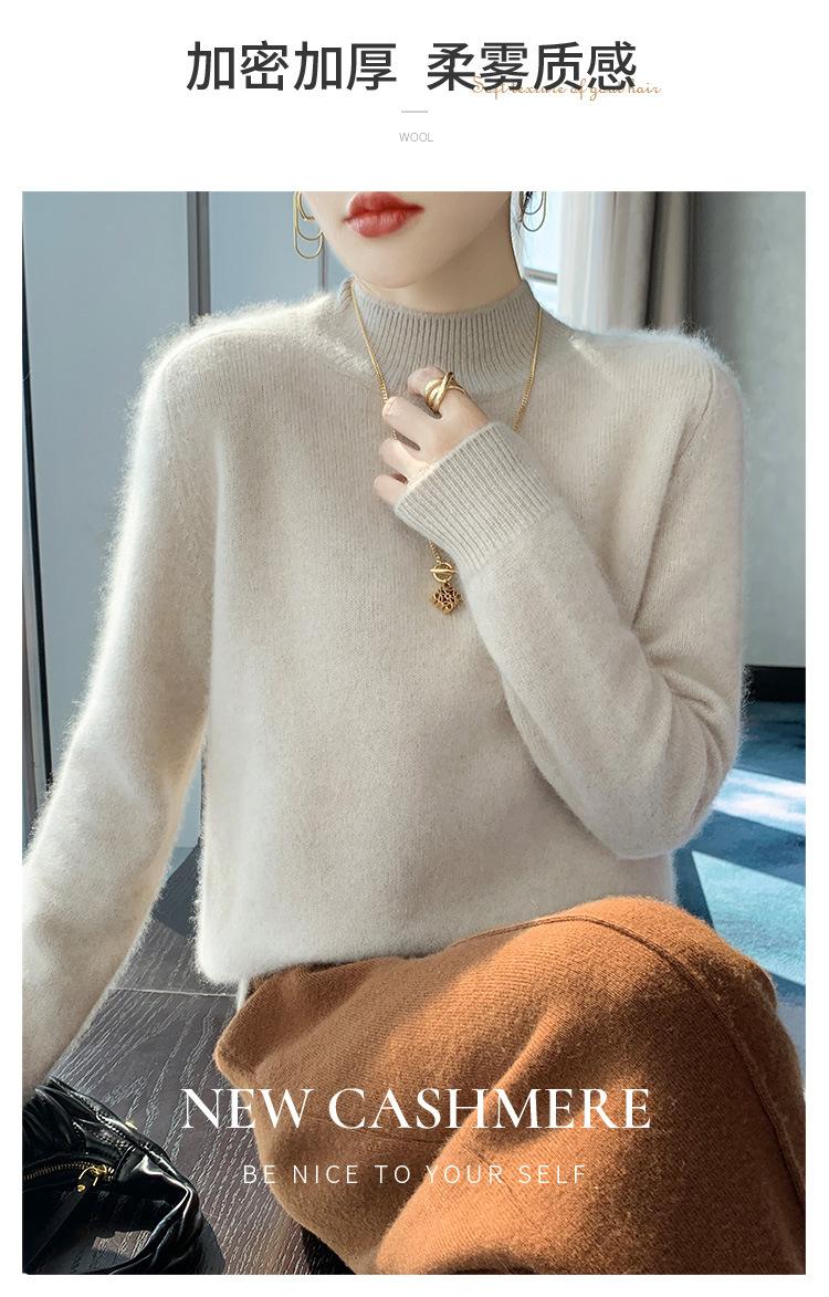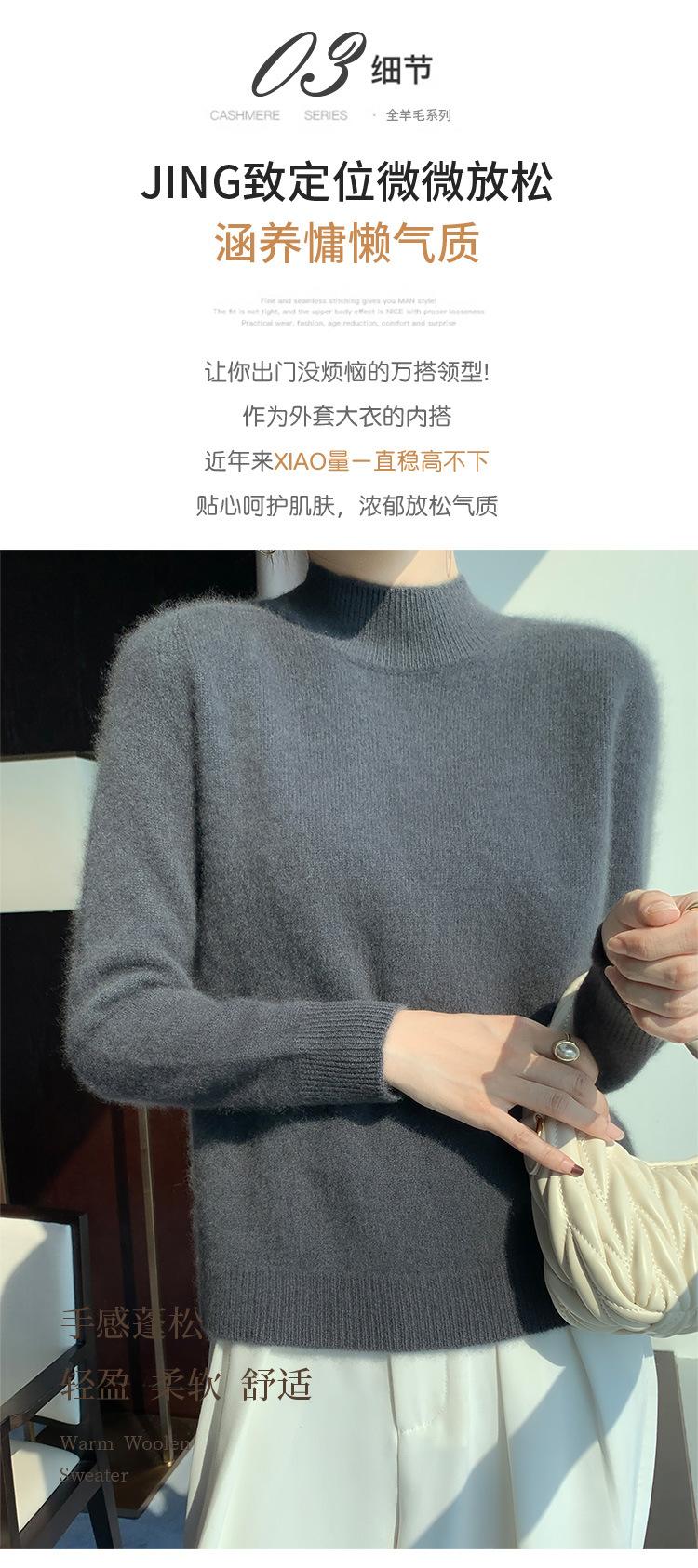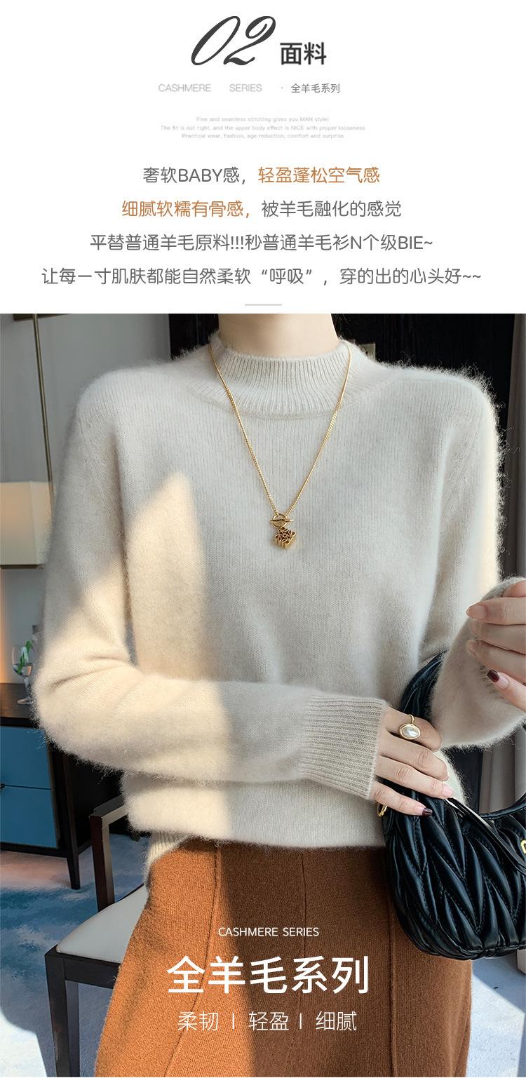 Suéter Interior de Otoño e Invierno con Cuello Medio Alto Suéter de Lana para Mujer Suéter de Lana 100% Pura Tejido Grueso de 7 Agujas Camiseta Básica
