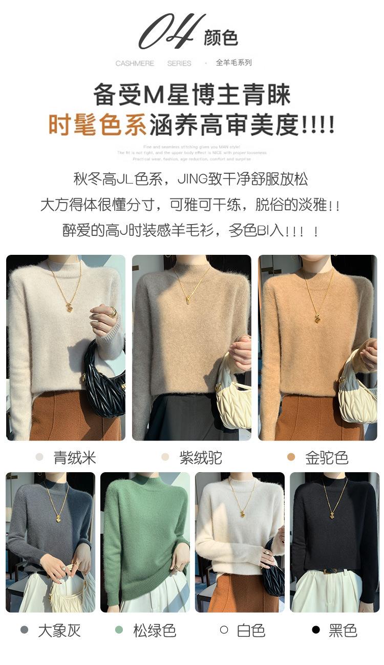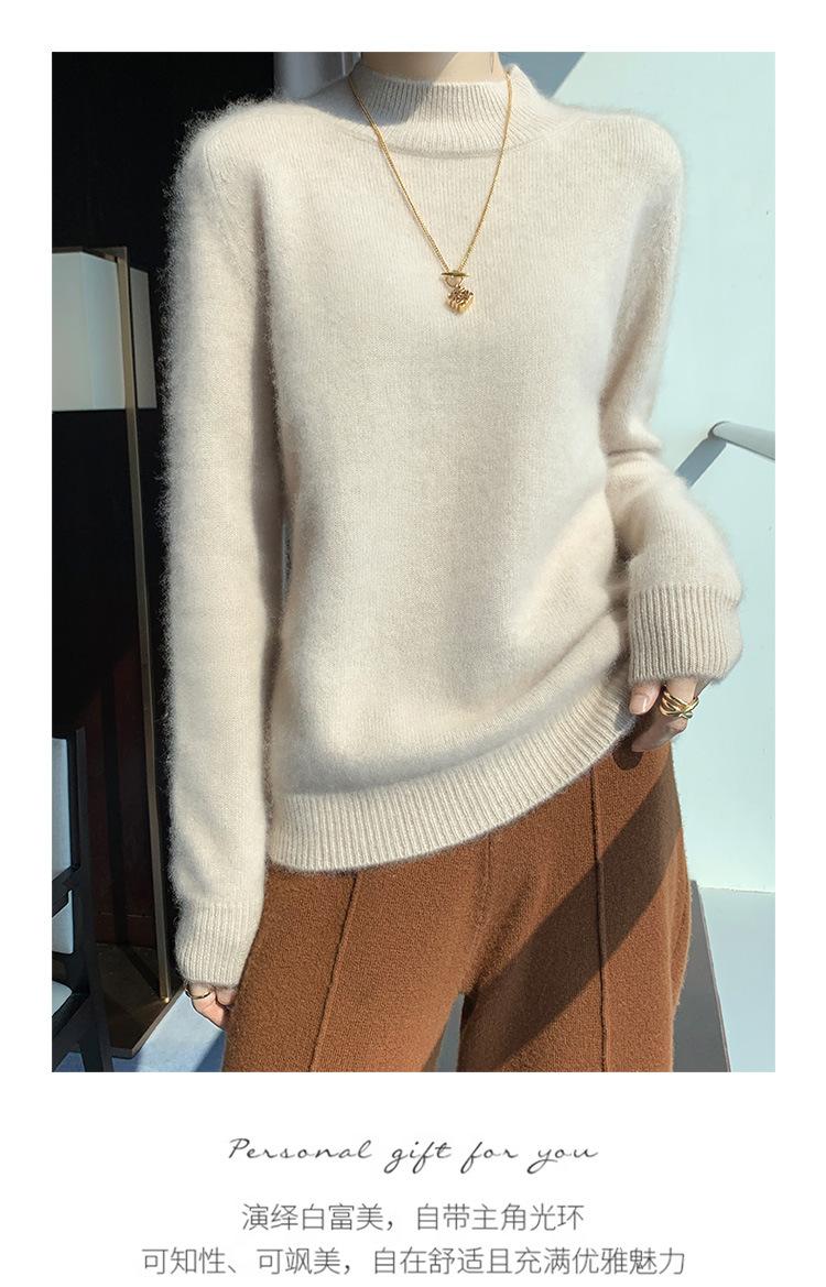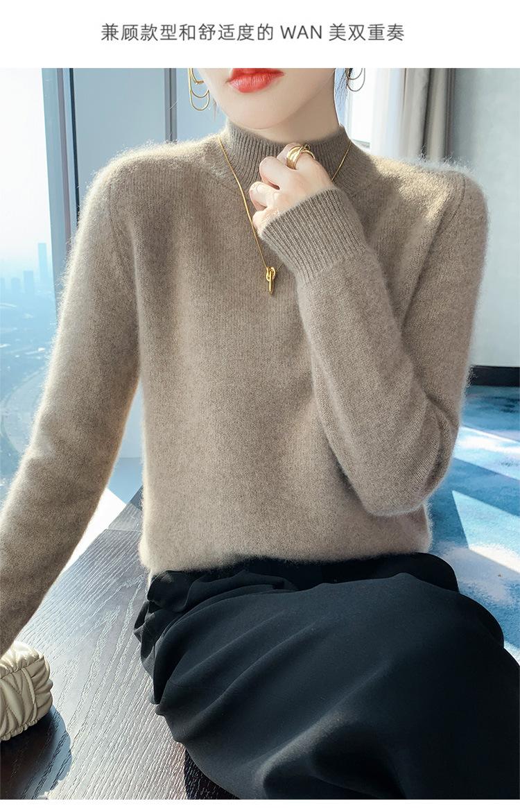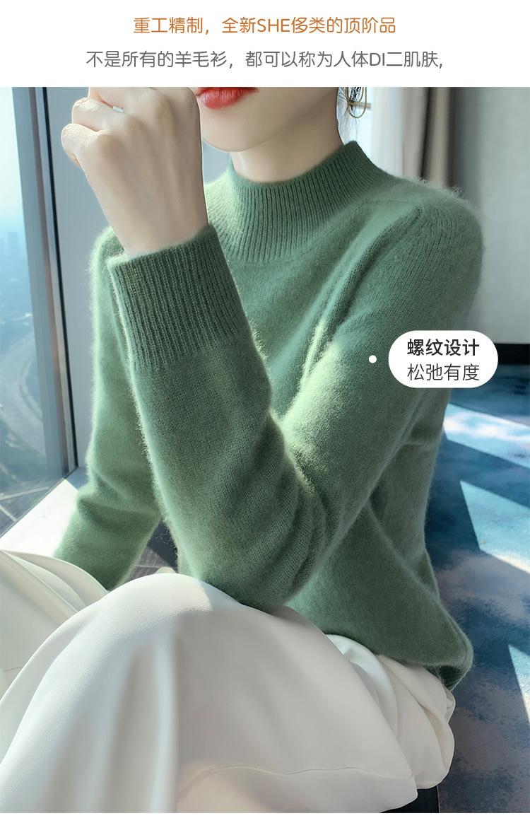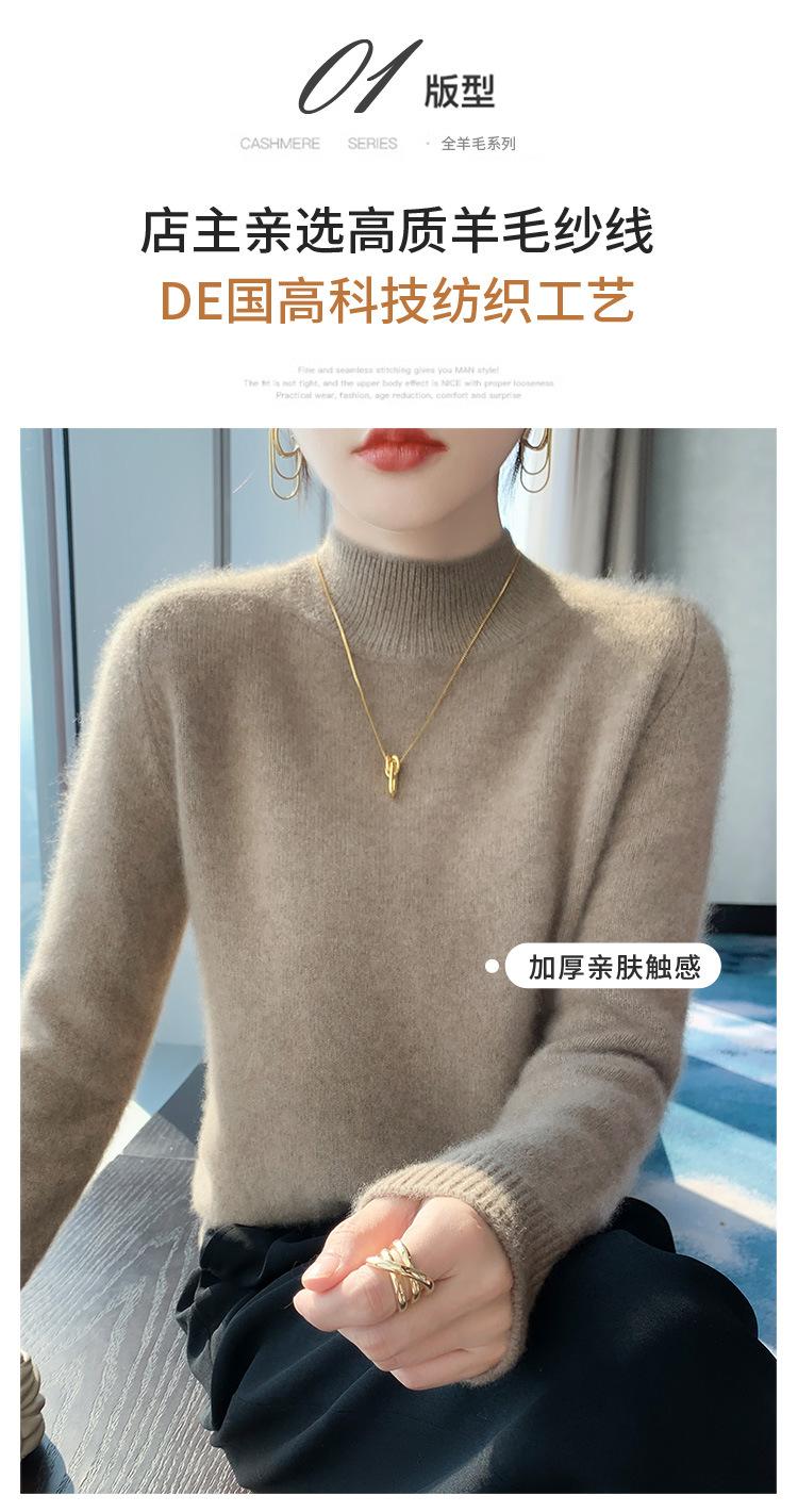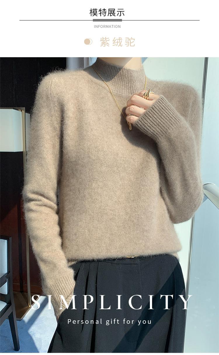 Suéter Interior de Otoño e Invierno con Cuello Medio Alto Suéter de Lana para Mujer Suéter de Lana 100% Pura Tejido Grueso de 7 Agujas Camiseta Básica