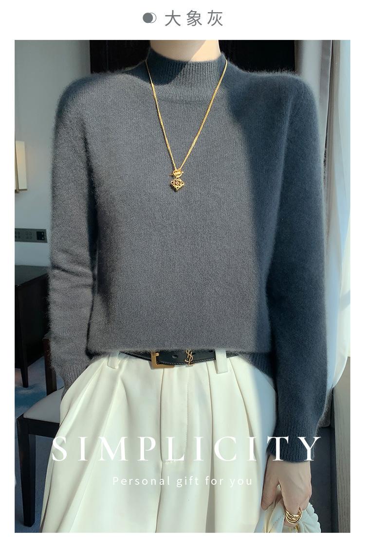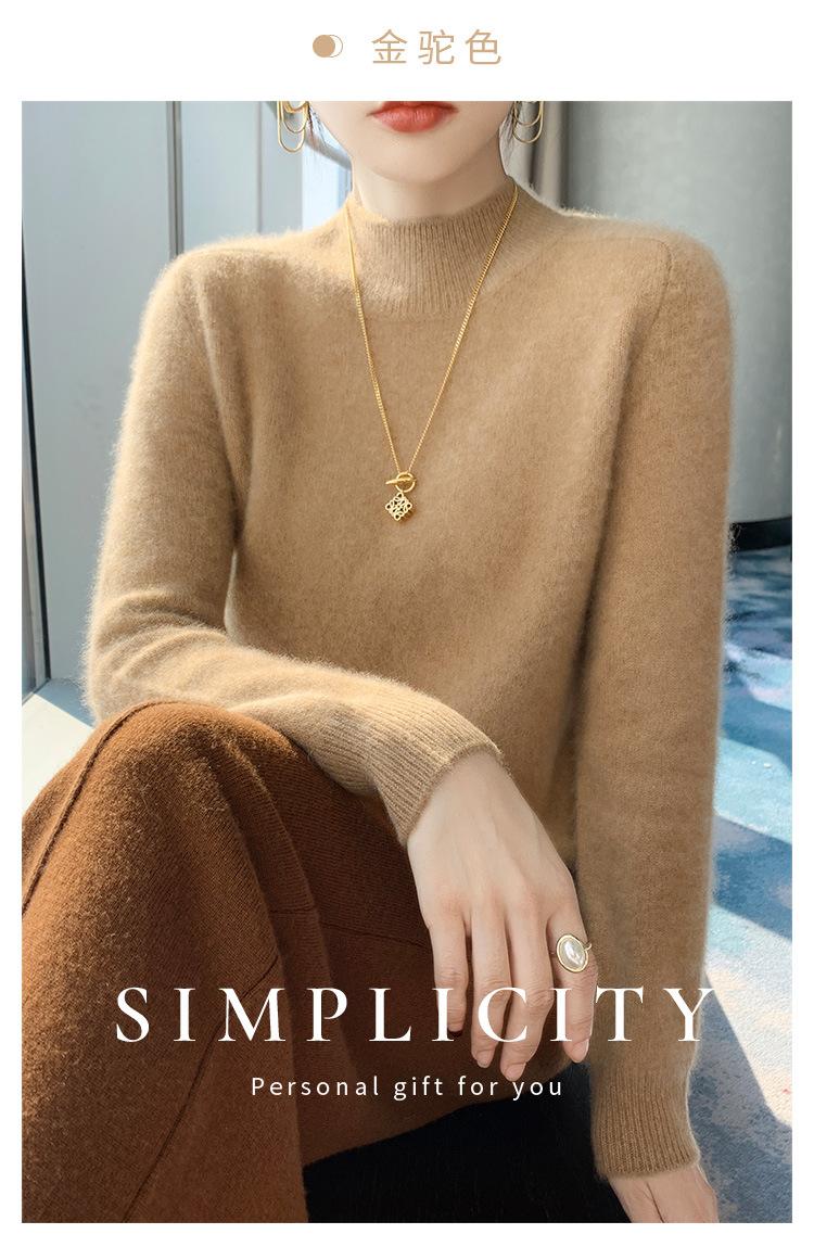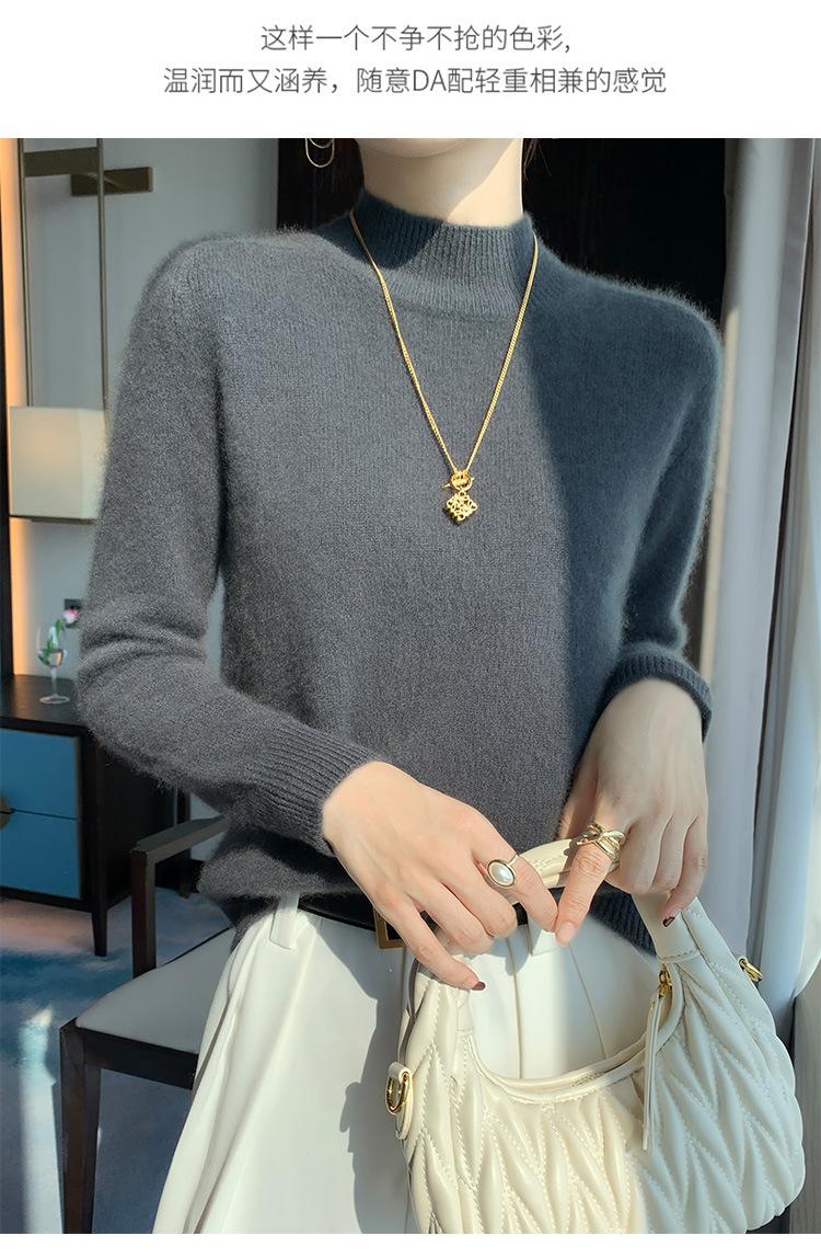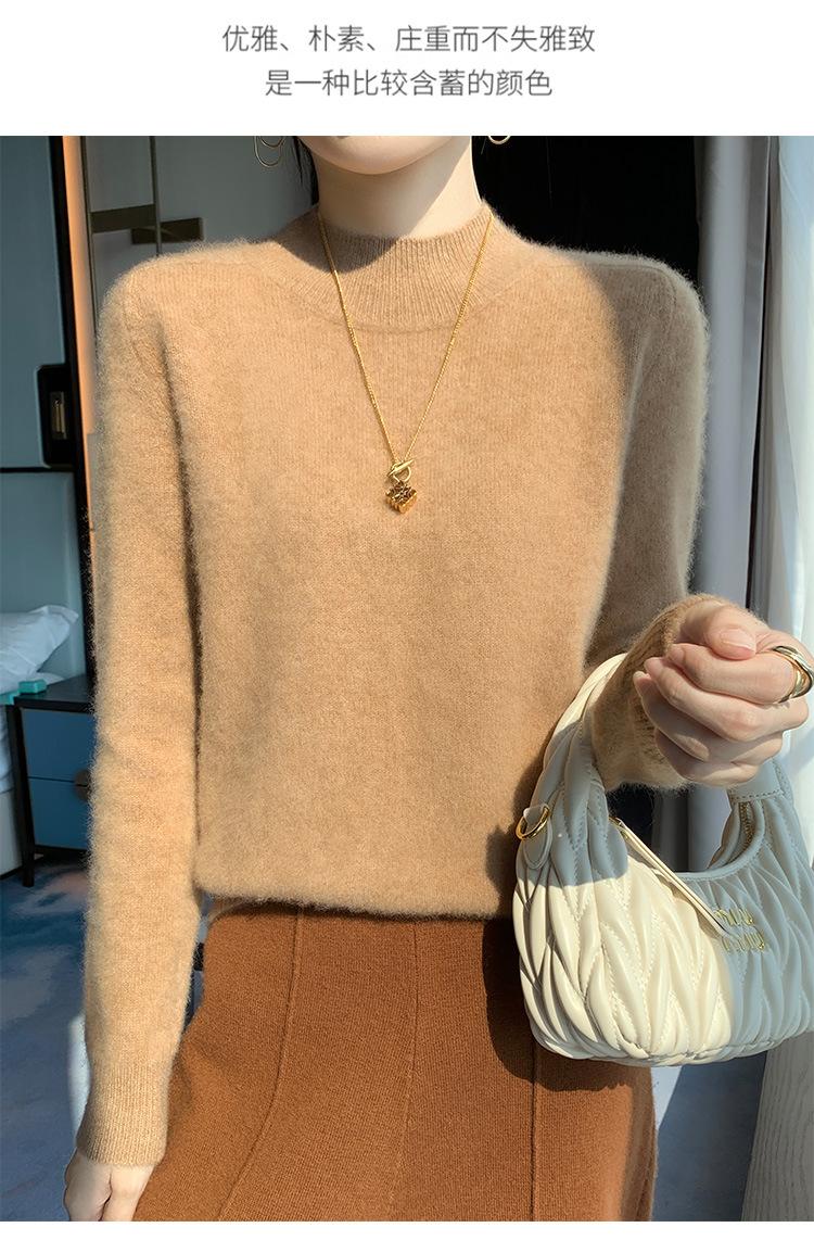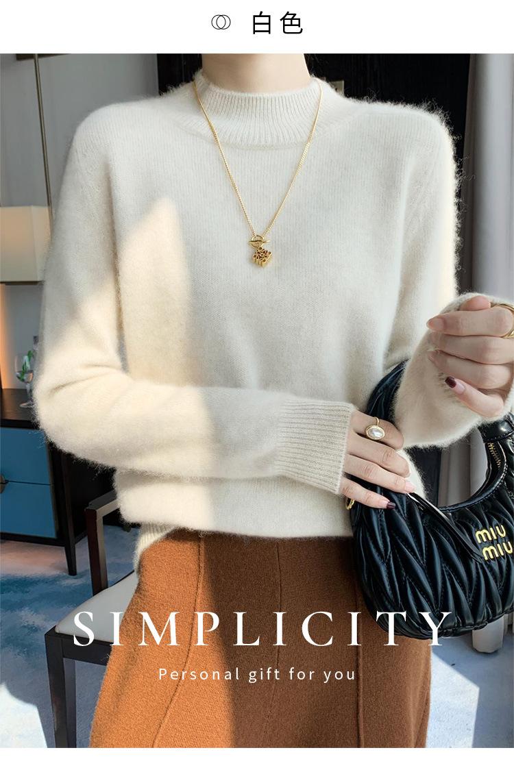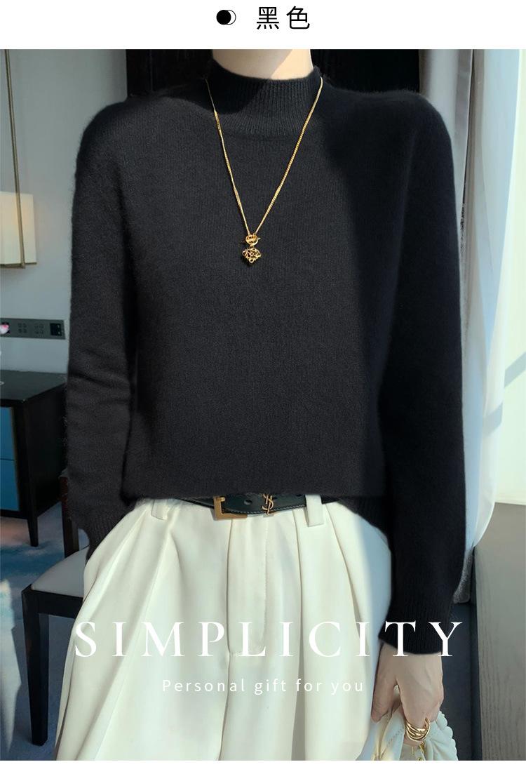 Suéter Interior de Otoño e Invierno con Cuello Medio Alto Suéter de Lana para Mujer Suéter de Lana 100% Pura Tejido Grueso de 7 Agujas Camiseta Básica