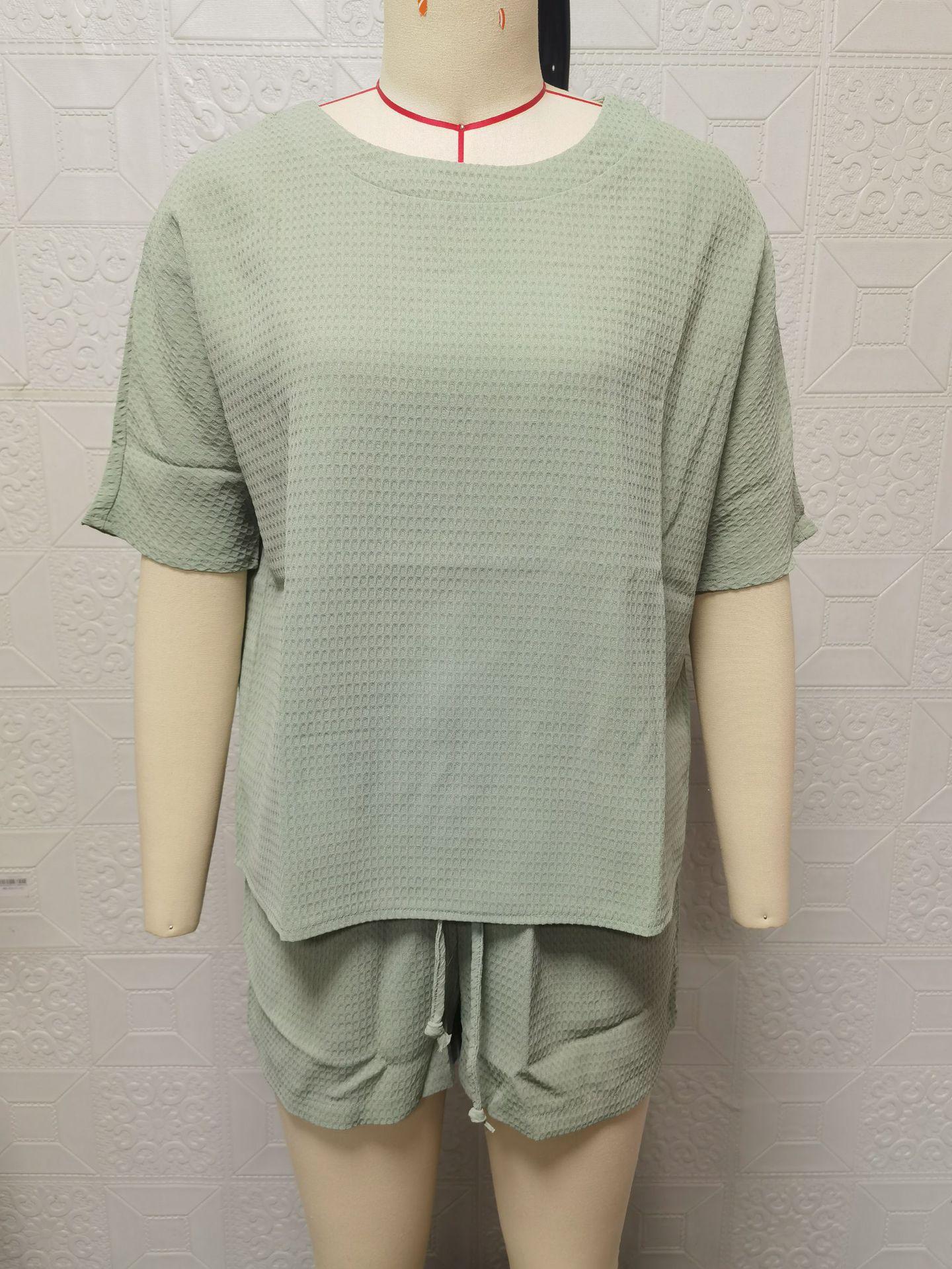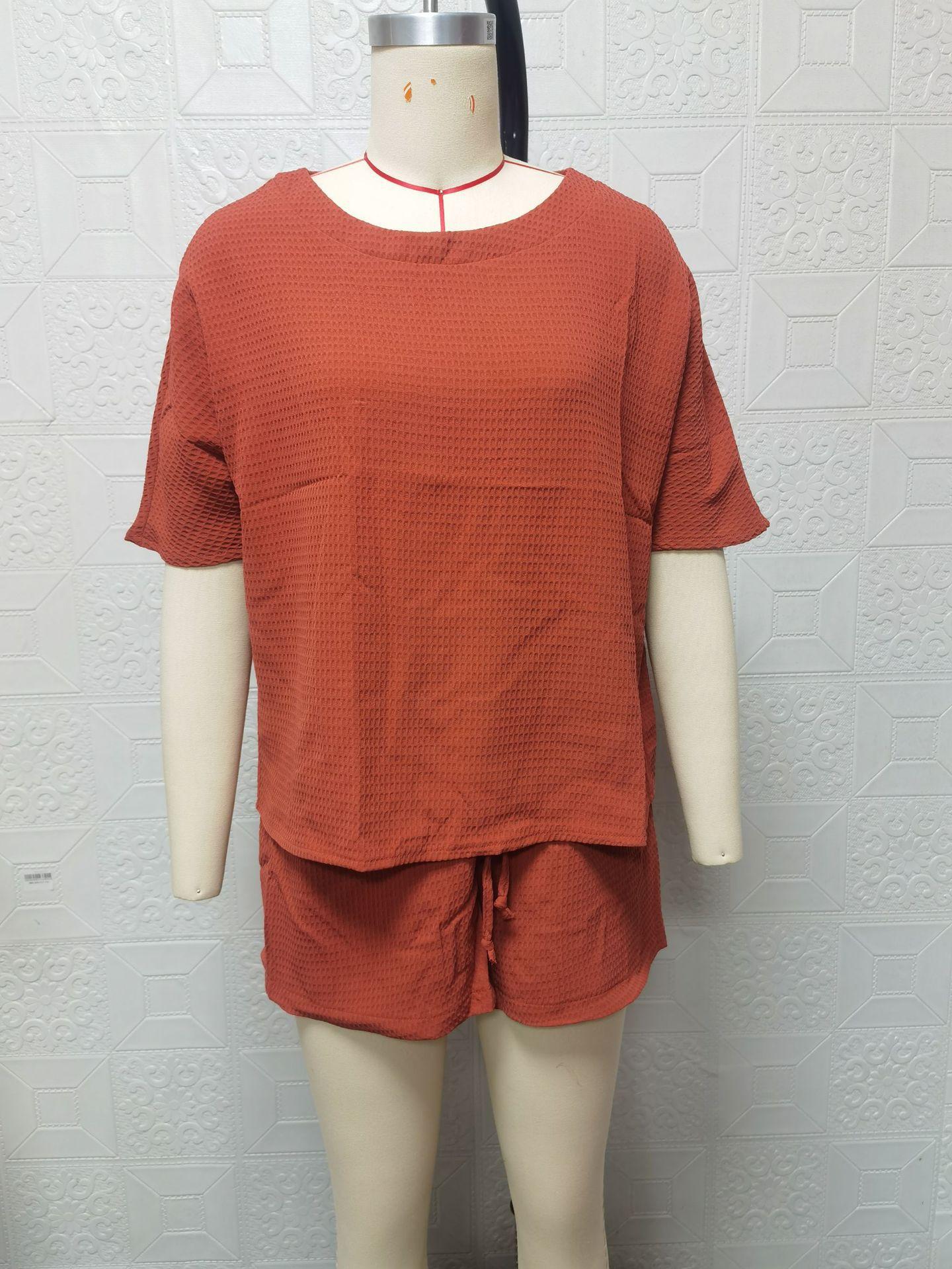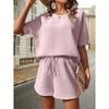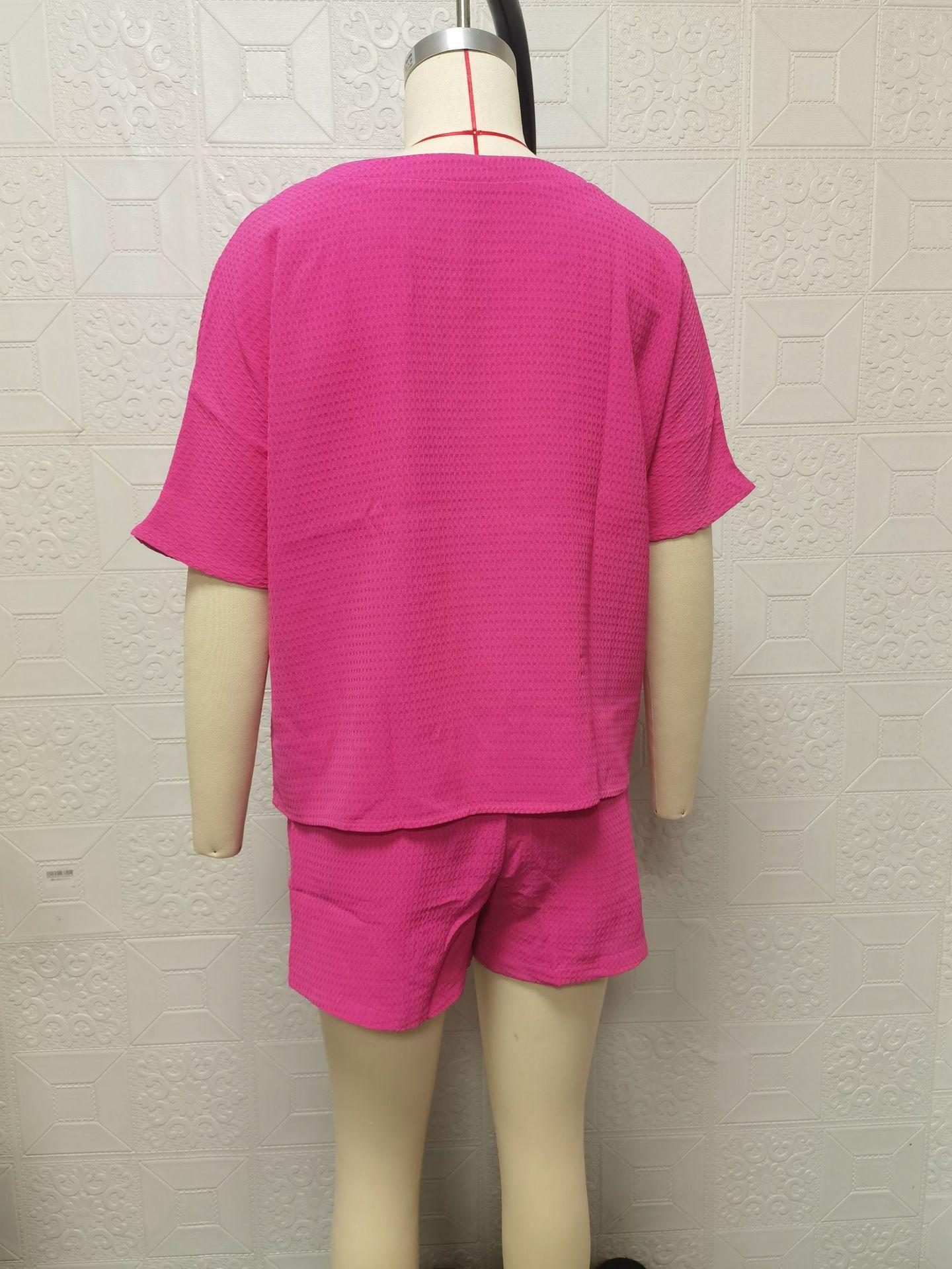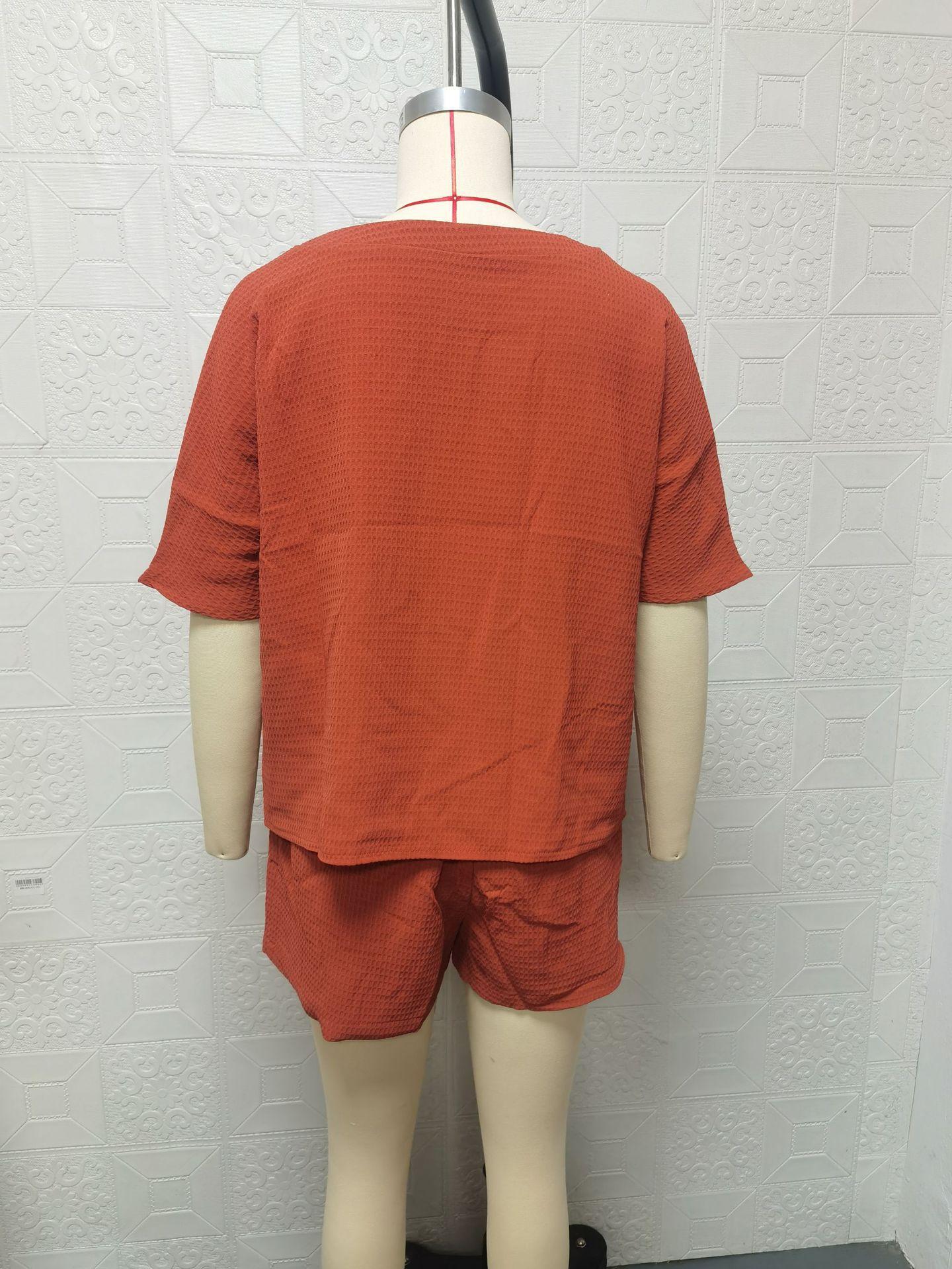 2023 Nuevo traje de manga corta transfronterizo europeo y americano para mujer, conjunto de dos piezas con camisa de murciélago estilo occidental y pantalones cortos de moda