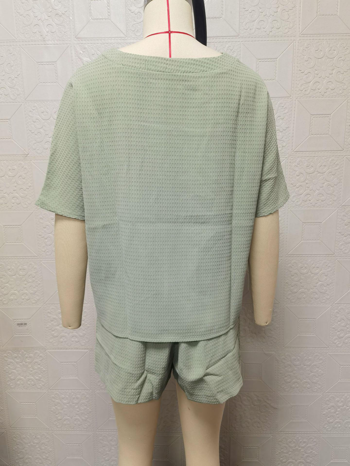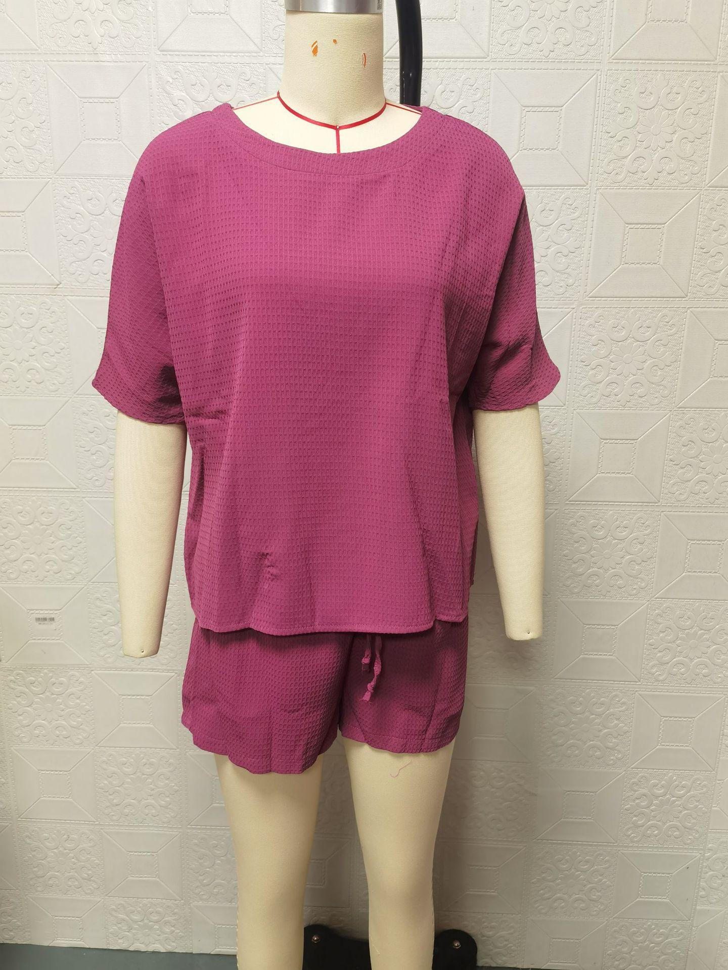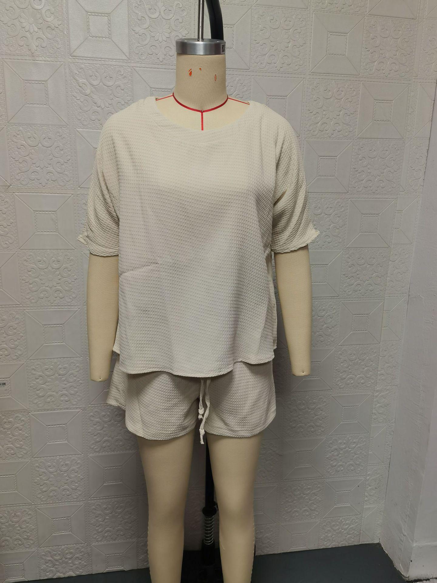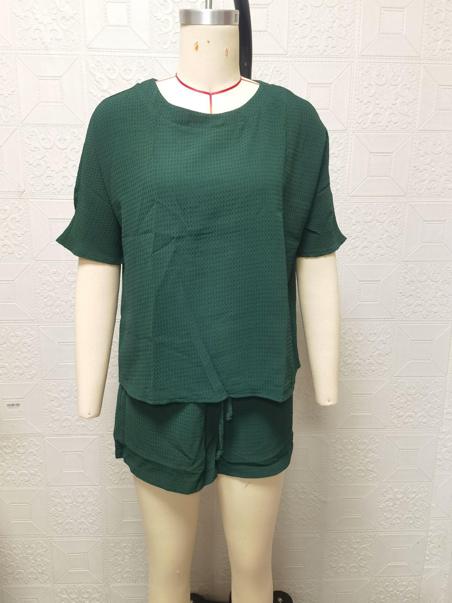 2023 Nuevo traje de manga corta transfronterizo europeo y americano para mujer, conjunto de dos piezas con camisa de murciélago estilo occidental y pantalones cortos de moda