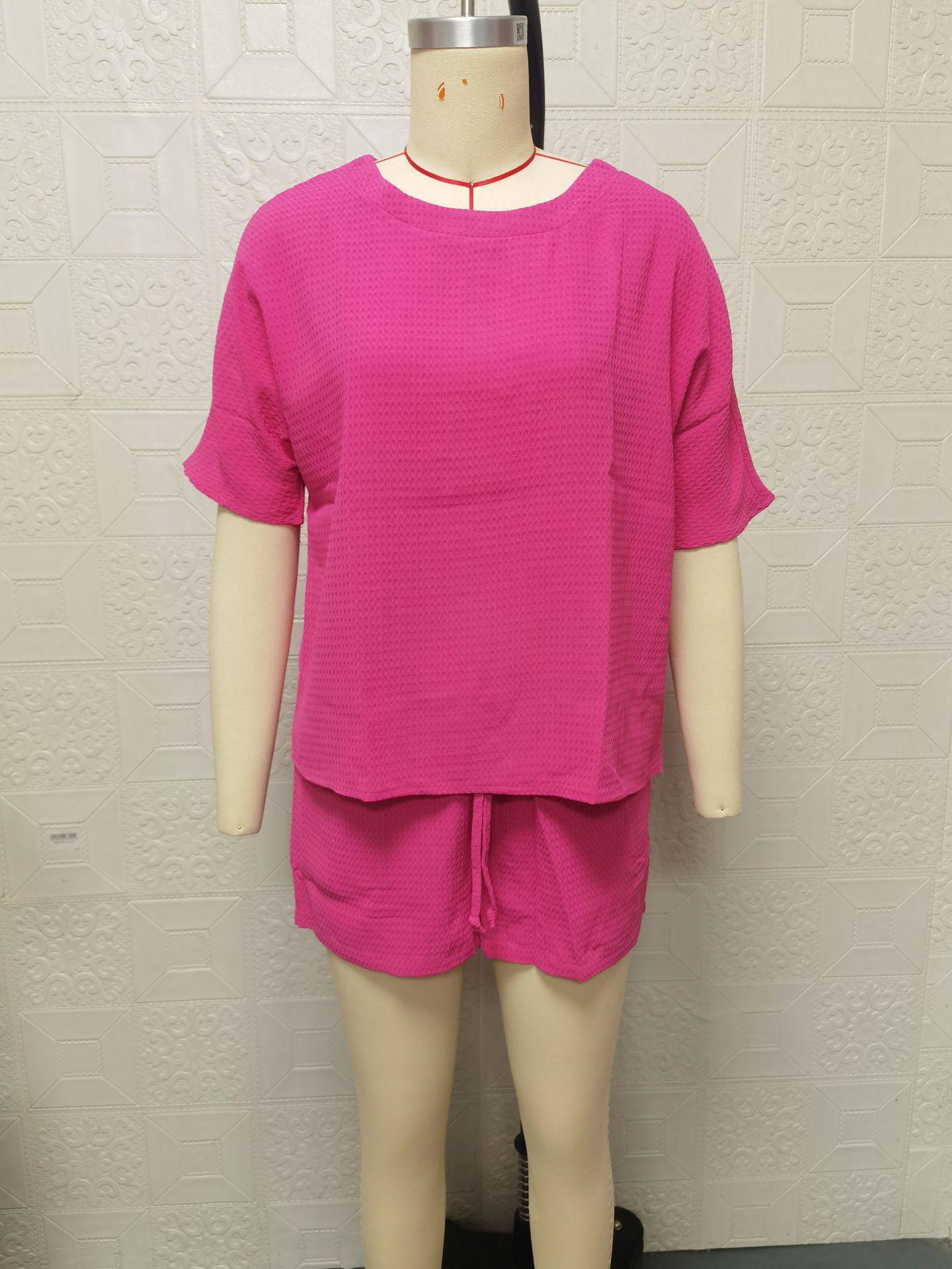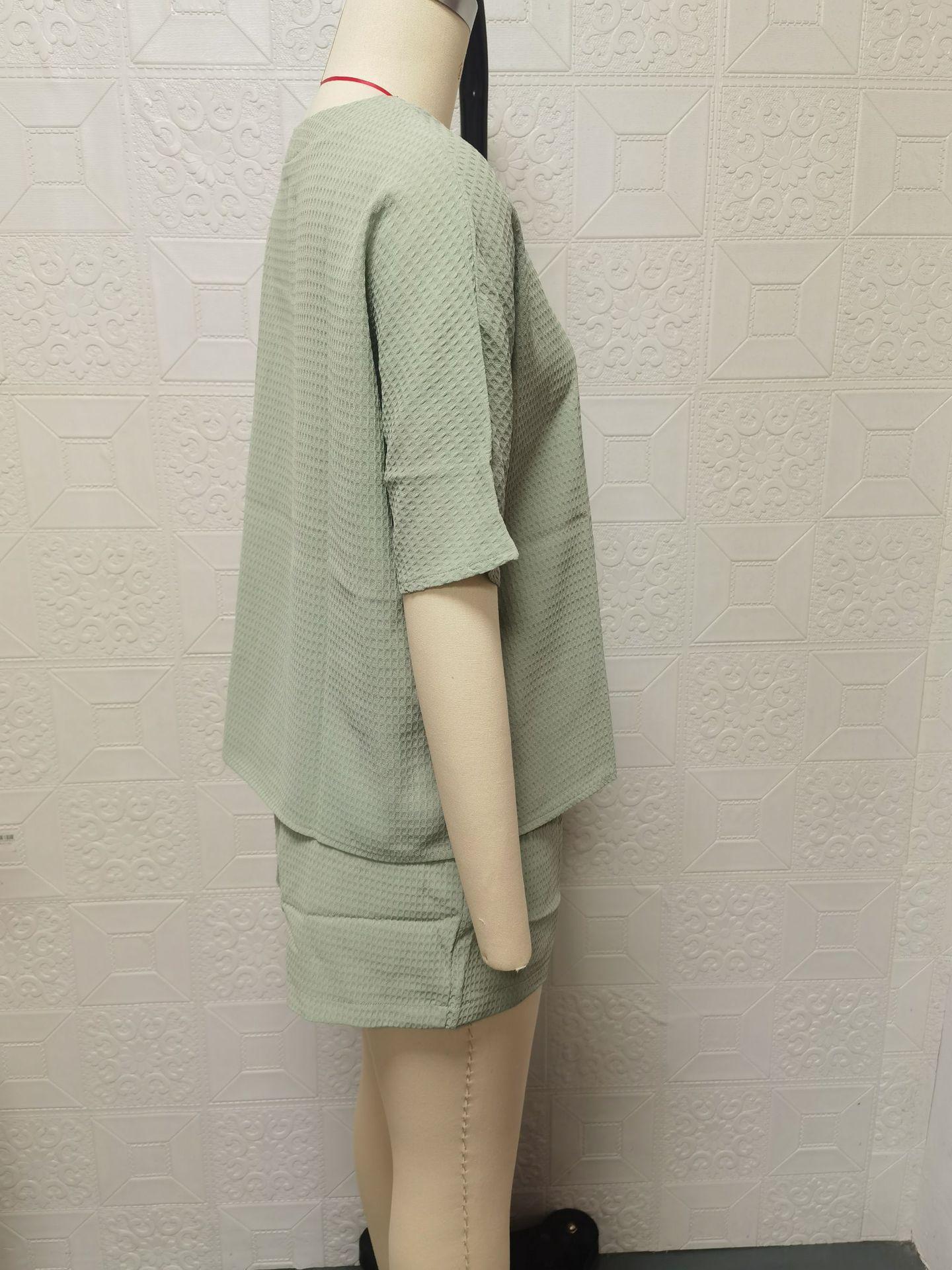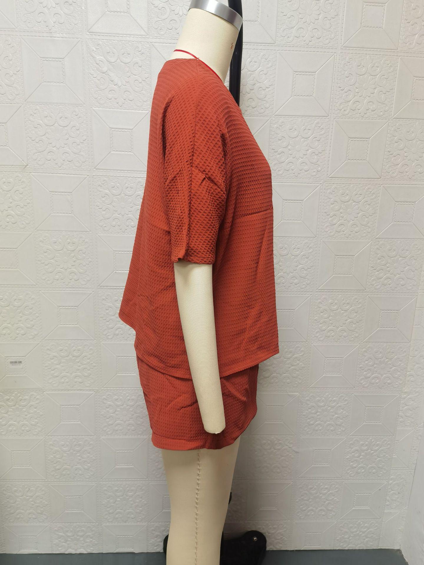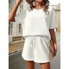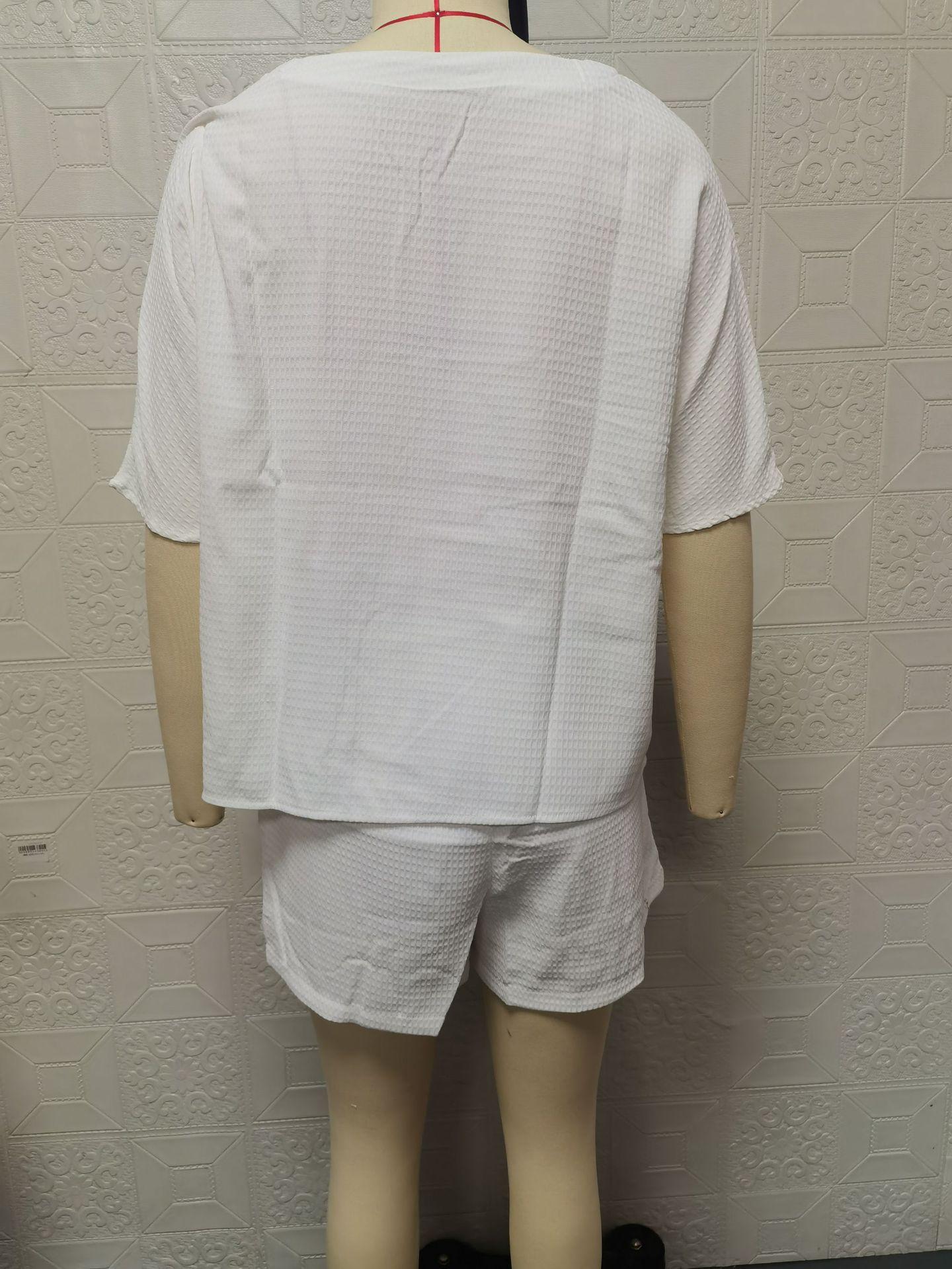 2023 Nuevo traje de manga corta transfronterizo europeo y americano para mujer, conjunto de dos piezas con camisa de murciélago estilo occidental y pantalones cortos de moda
