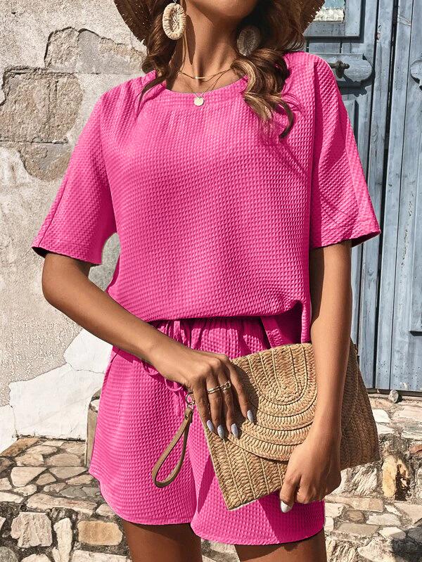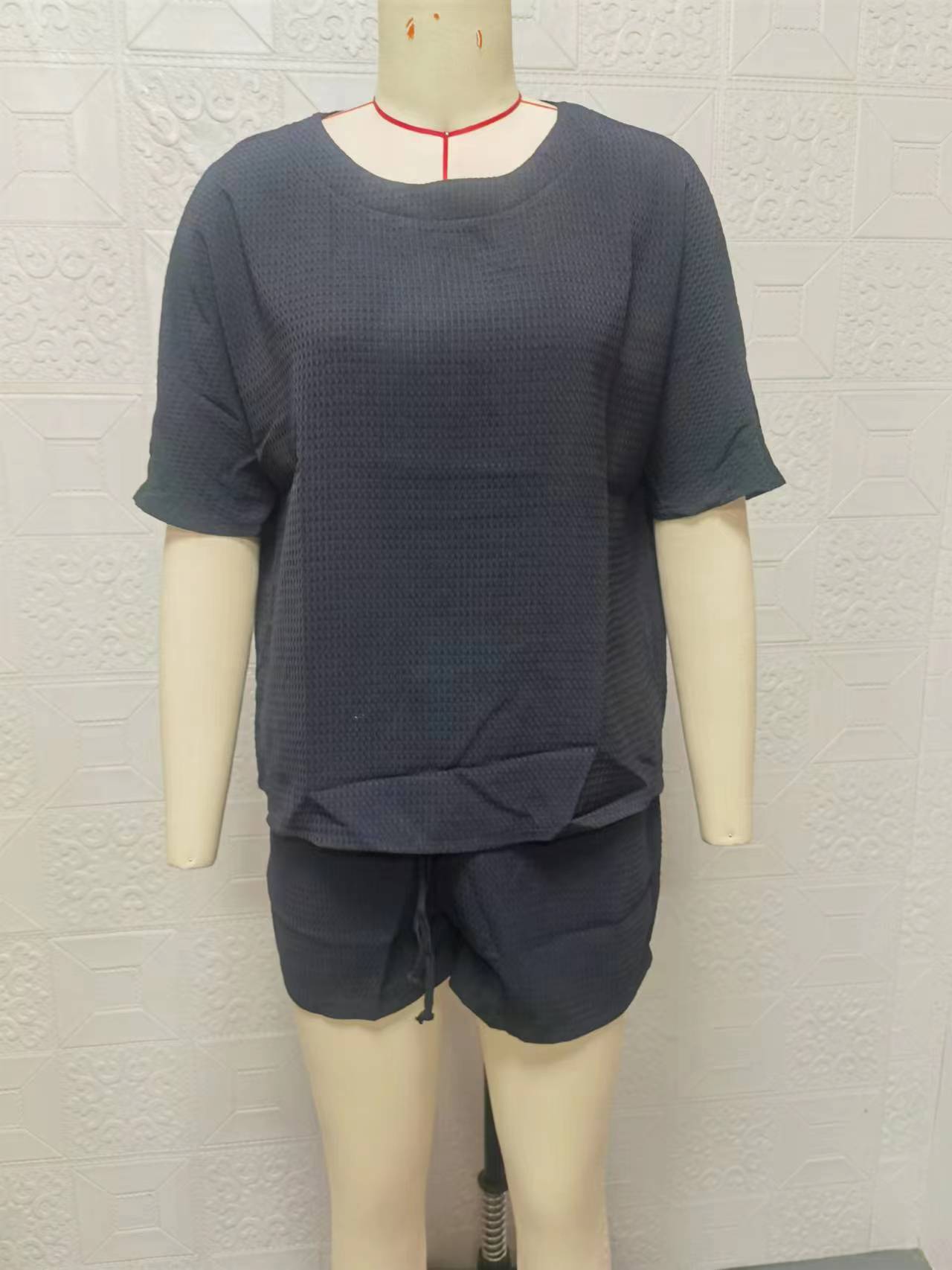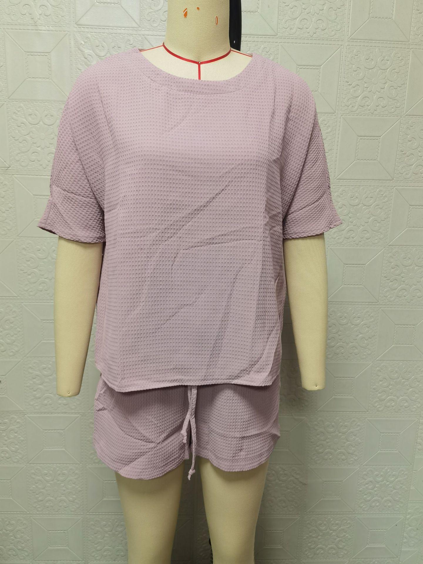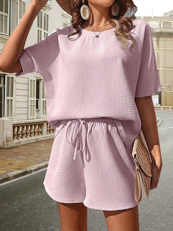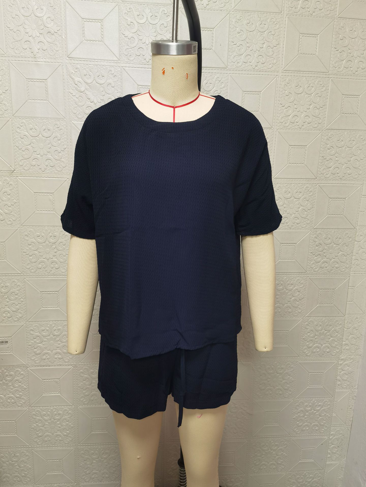 2023 Nuevo traje de manga corta transfronterizo europeo y americano para mujer, conjunto de dos piezas con camisa de murciélago estilo occidental y pantalones cortos de moda