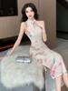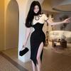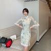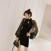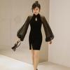 Cheongsam Mejorado 2025 Otoño Nuevo Vestido de Cadera de Terciopelo de Manga Farol Transparente para Mujer Dropshipping 1502