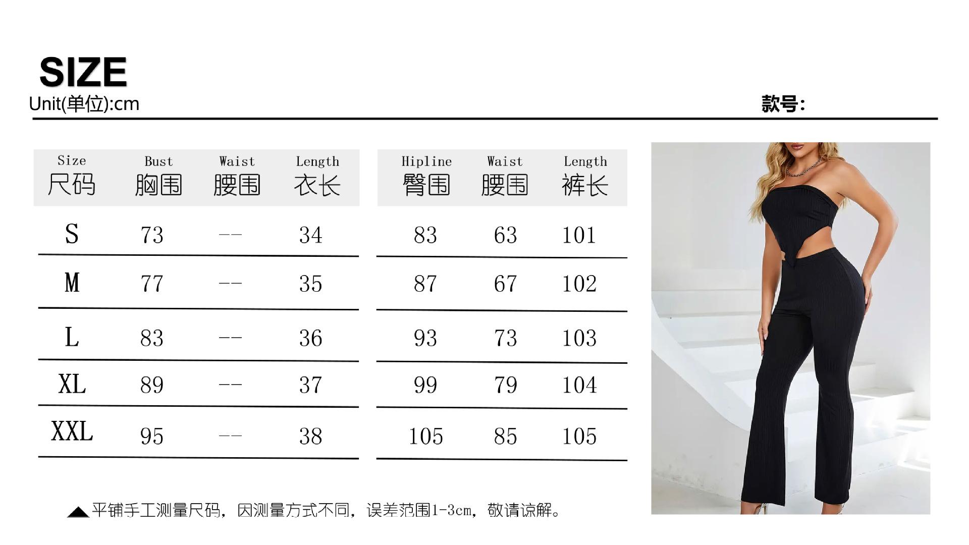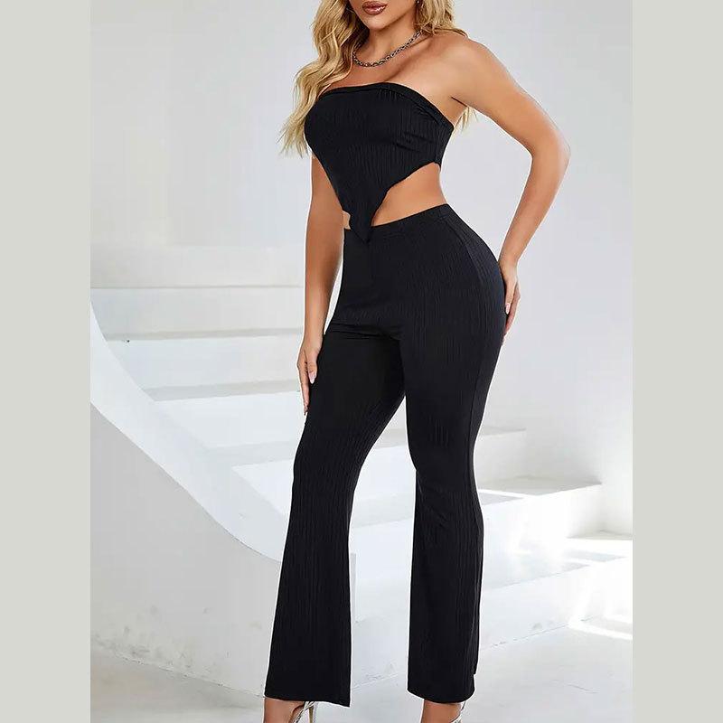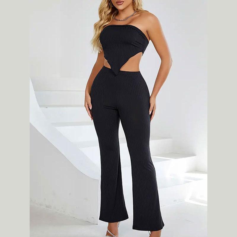 Ropa de Mujer Europea y Americana Transfronteriza Top de Tubo Cintura Elástica Pantalones Acampanados Elegante Traje de Dos Piezas Ajustado para Mujer