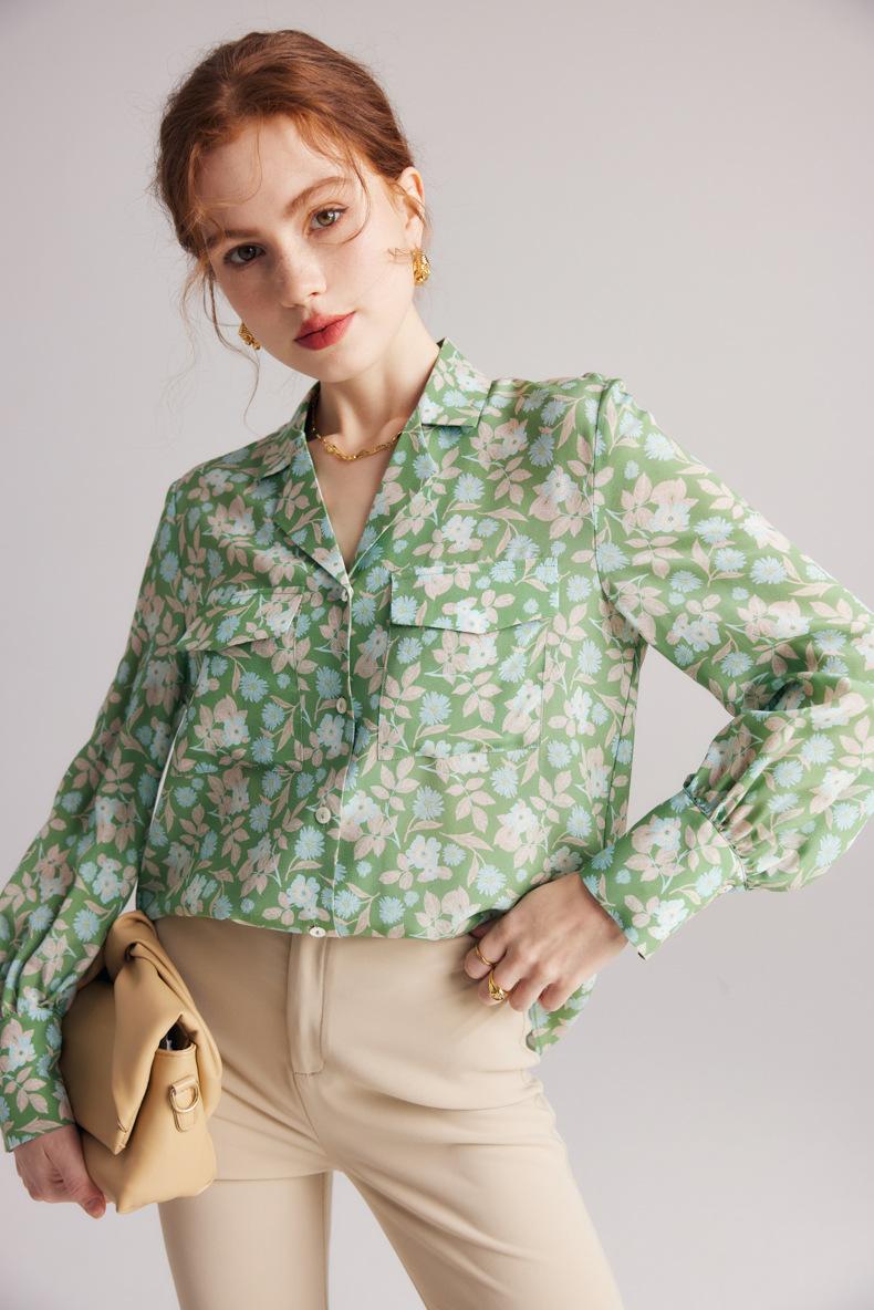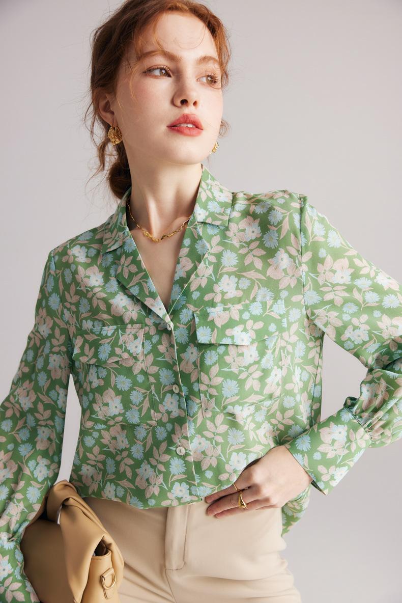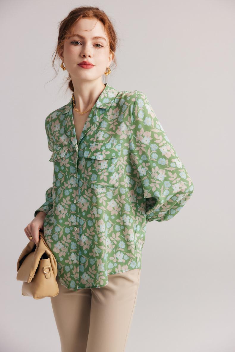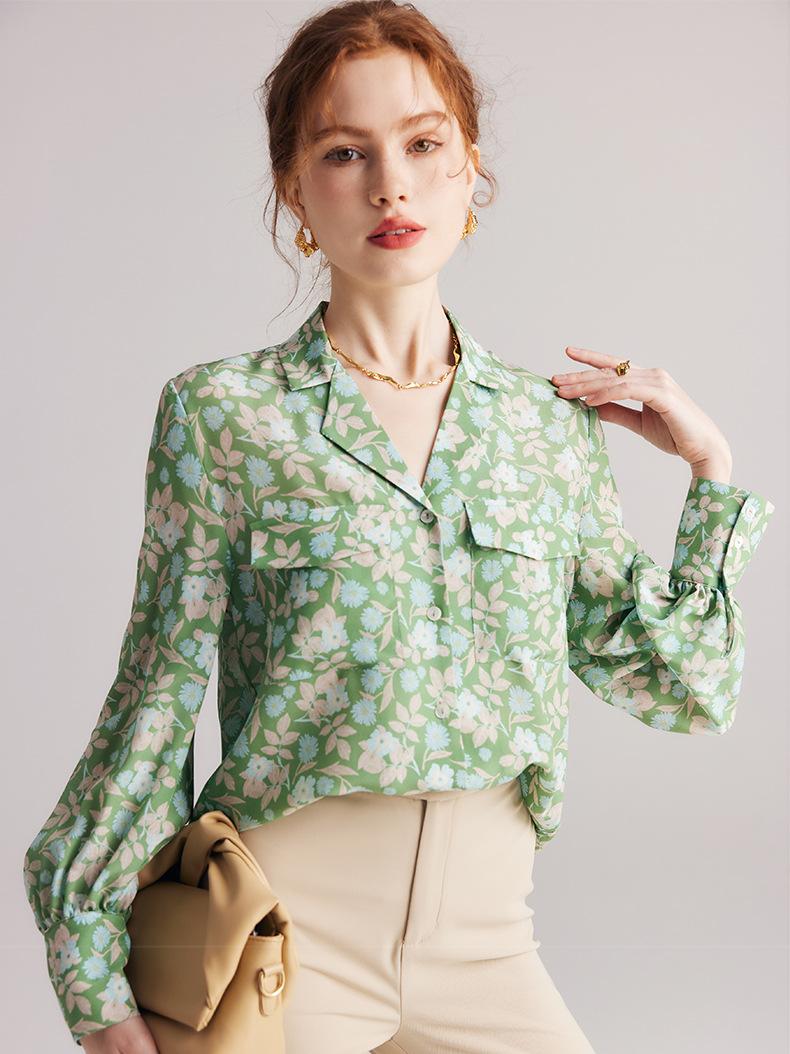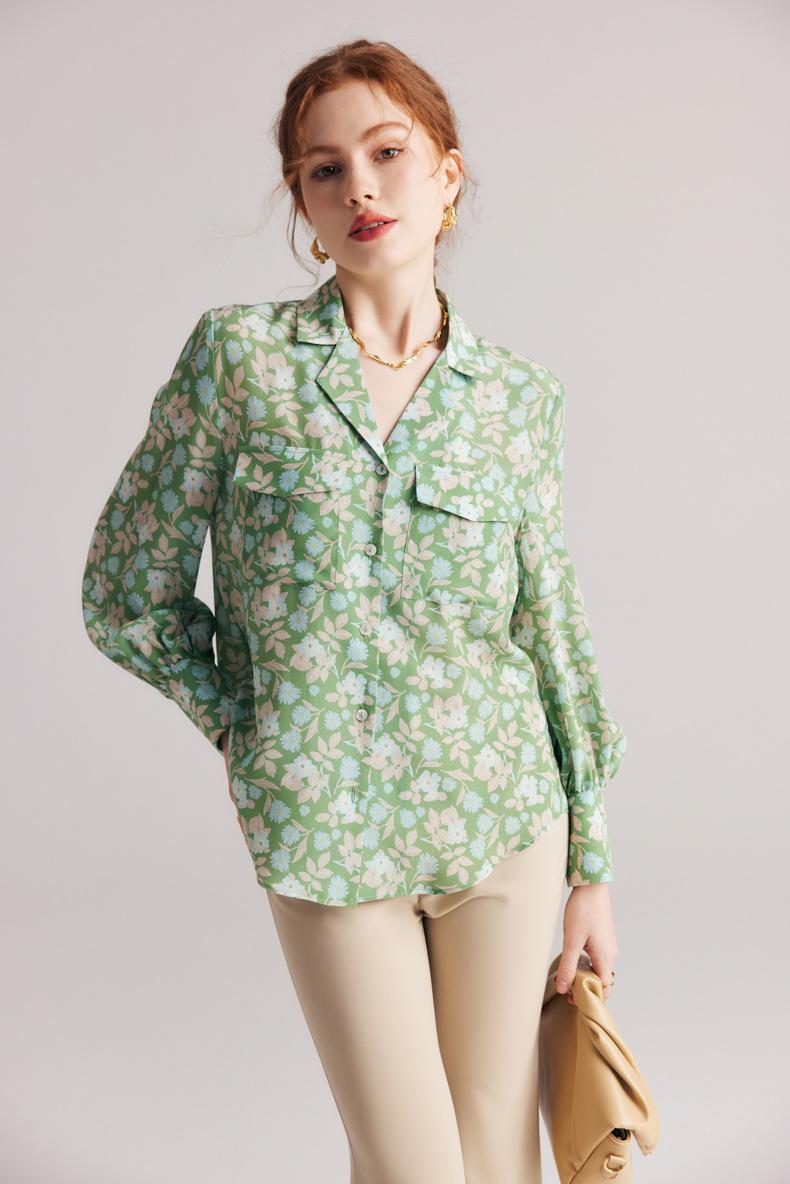 Camisa de seda para mujer, primavera y verano 2025, nueva, manga larga, estampado de crepé de China, camisa de manga larga de seda morera 100%