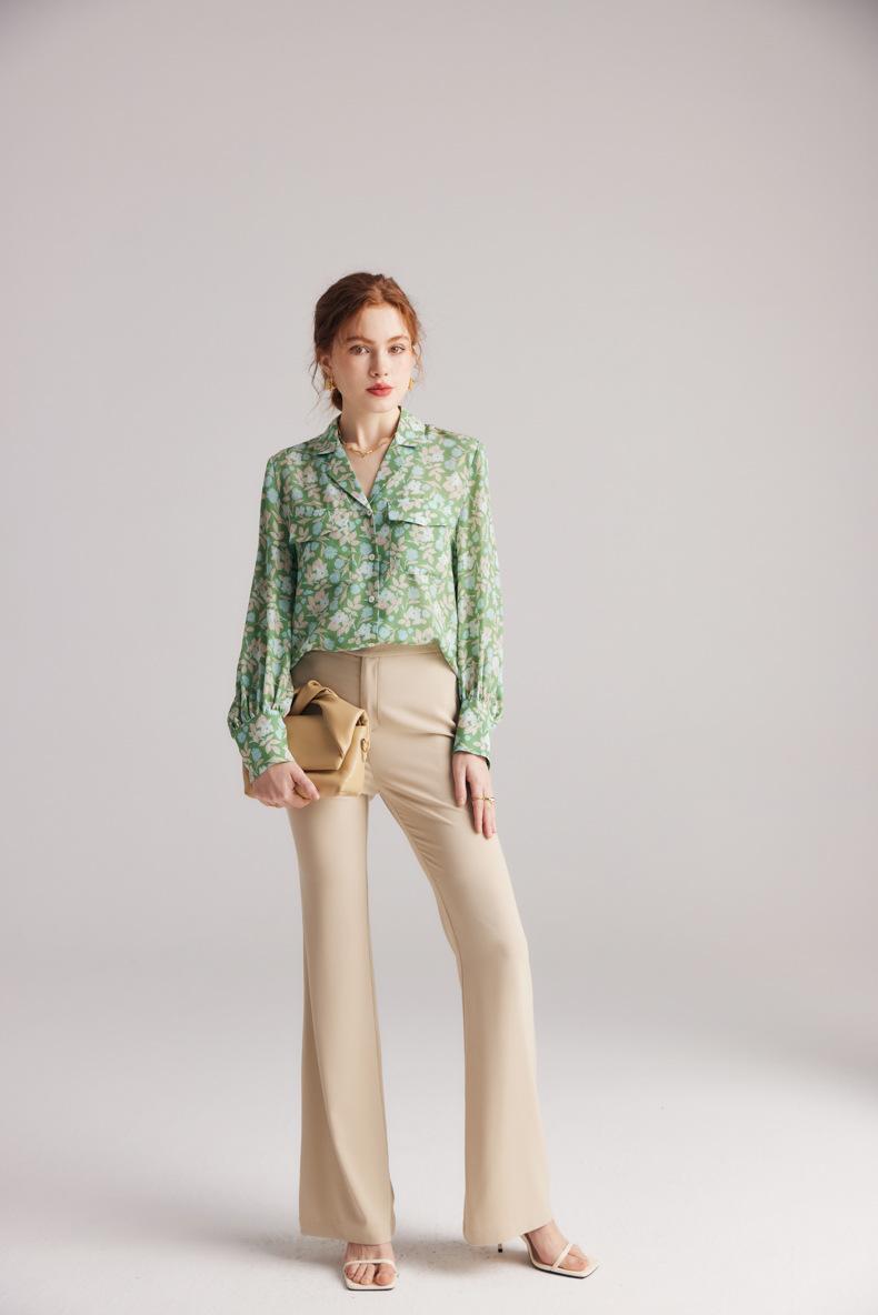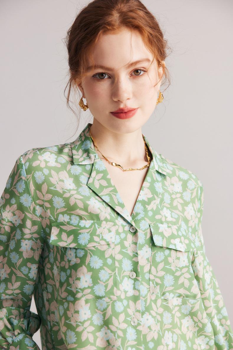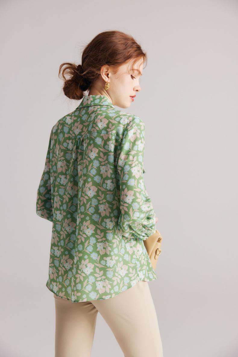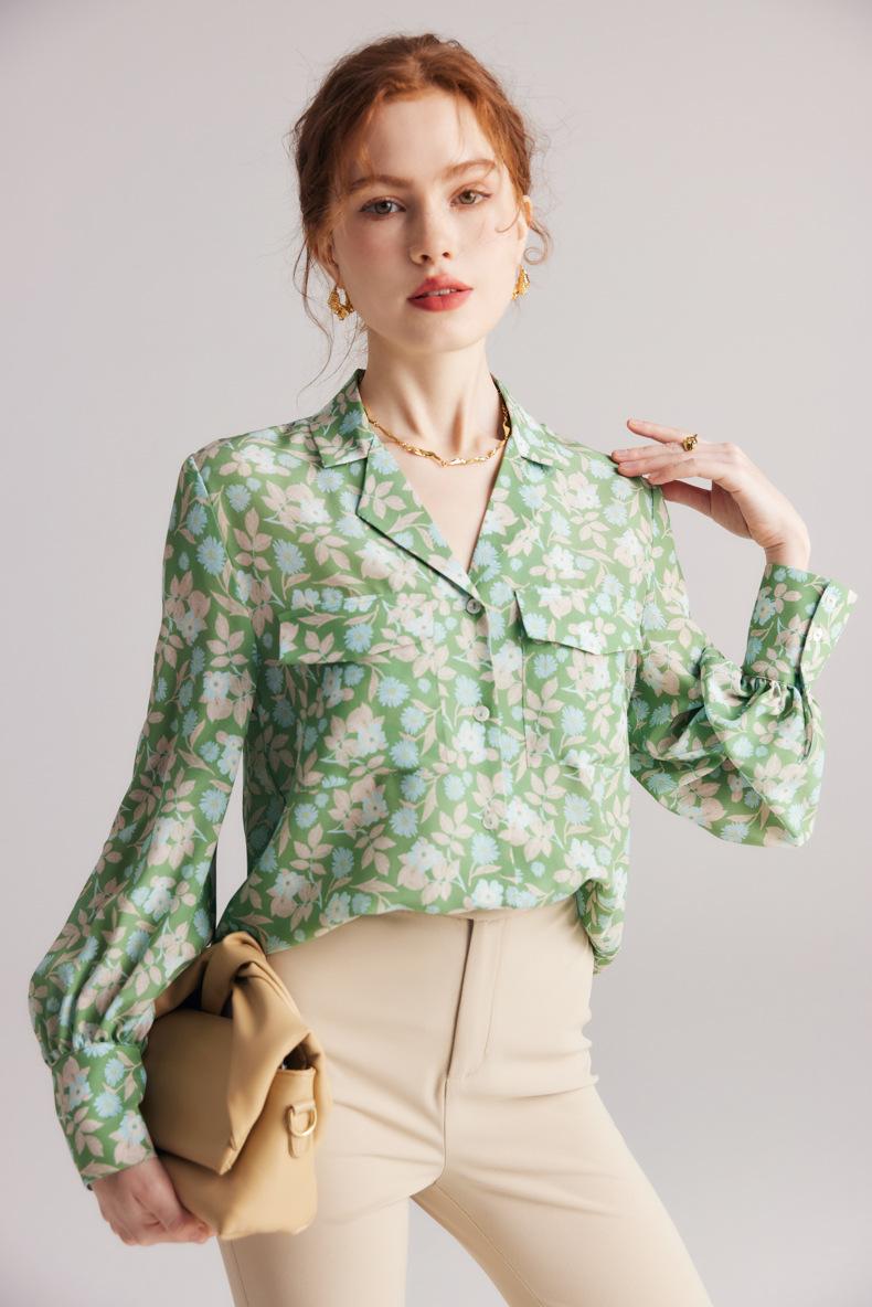 Camisa de seda para mujer, primavera y verano 2025, nueva, manga larga, estampado de crepé de China, camisa de manga larga de seda morera 100%