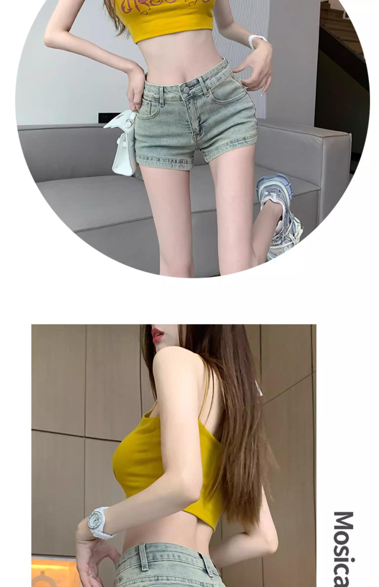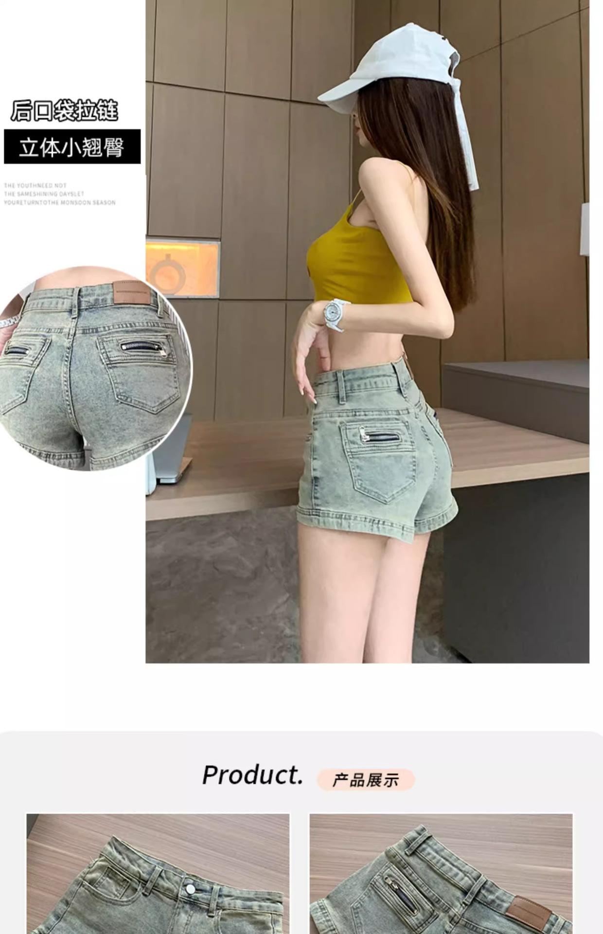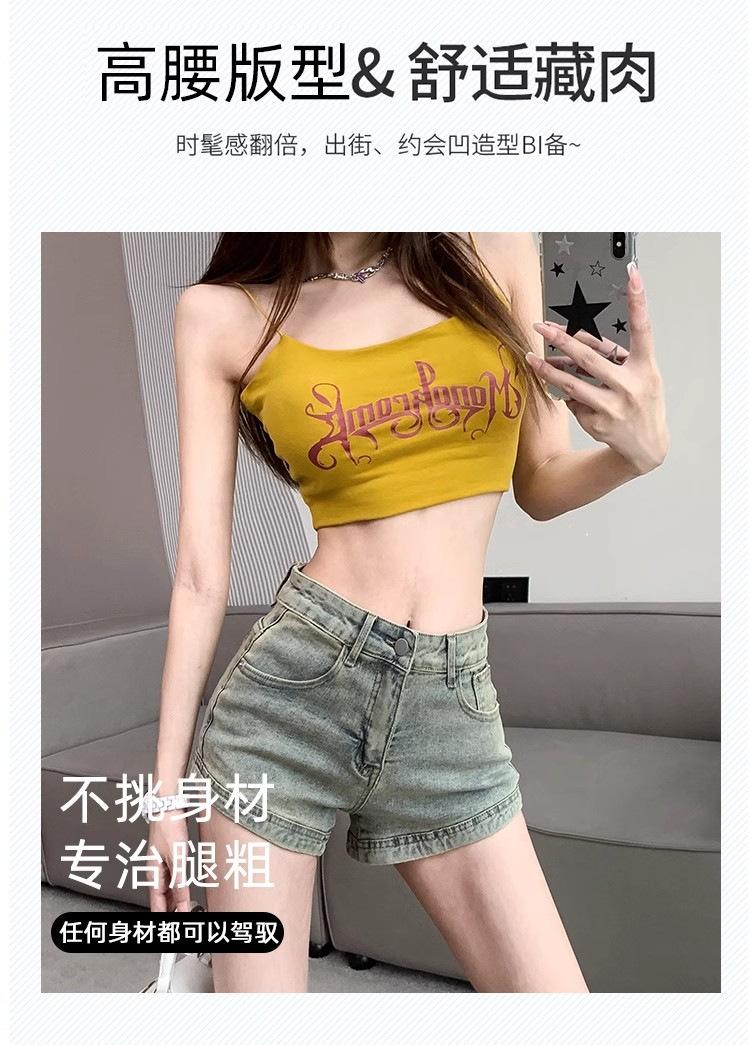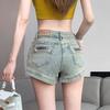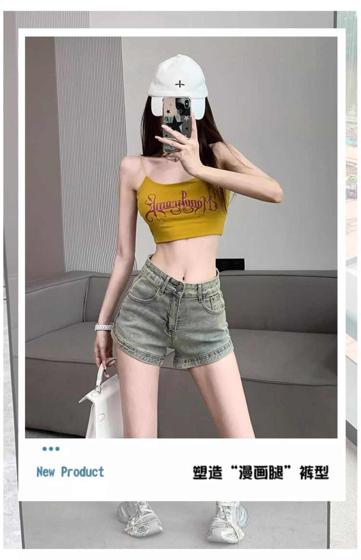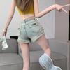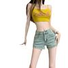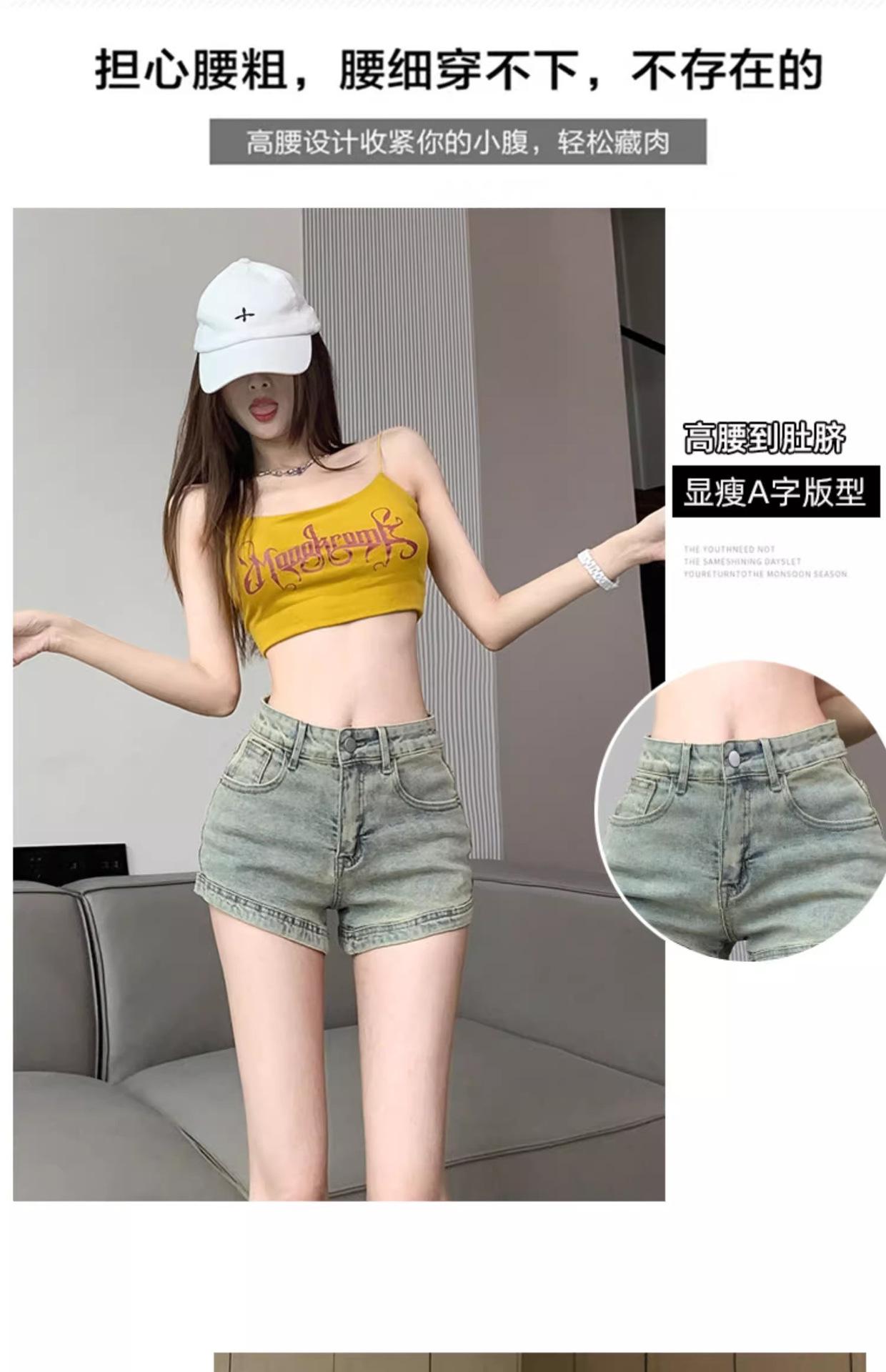 Pantalones cortos vaqueros retro americanos para mujer, novedad de verano 2024, de color claro, cintura alta, adelgazantes, combinables, ajustados.
