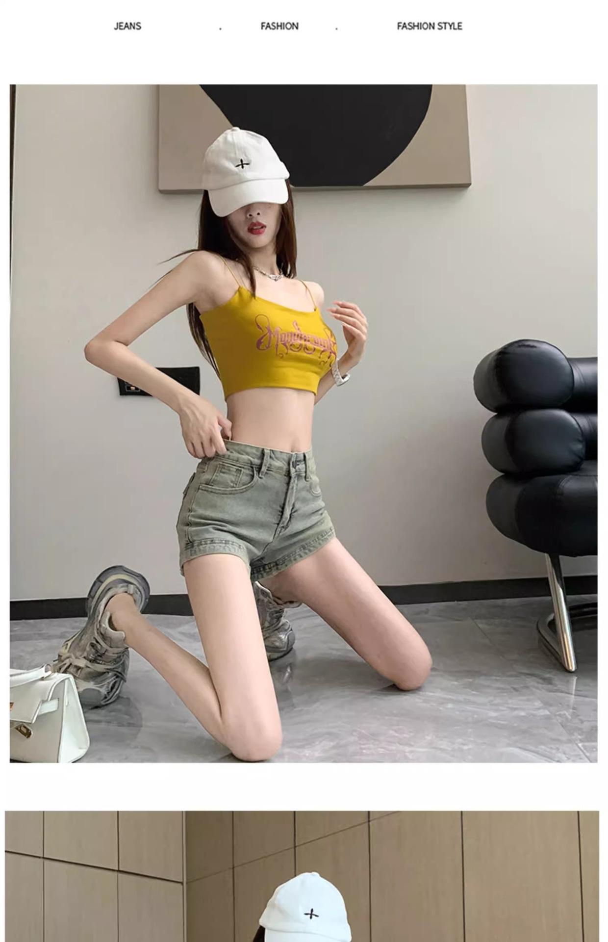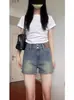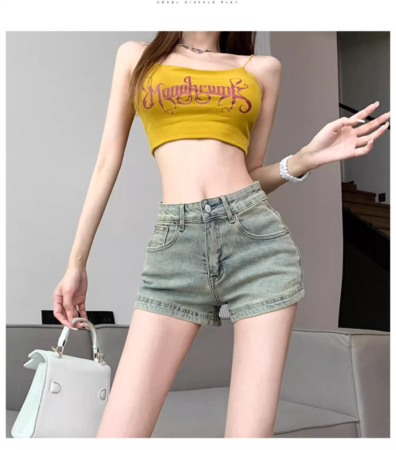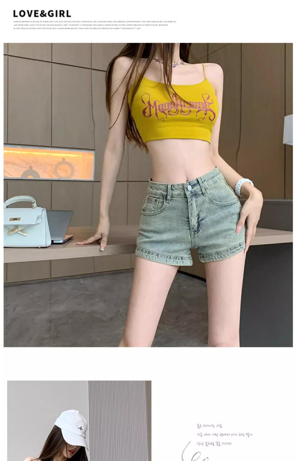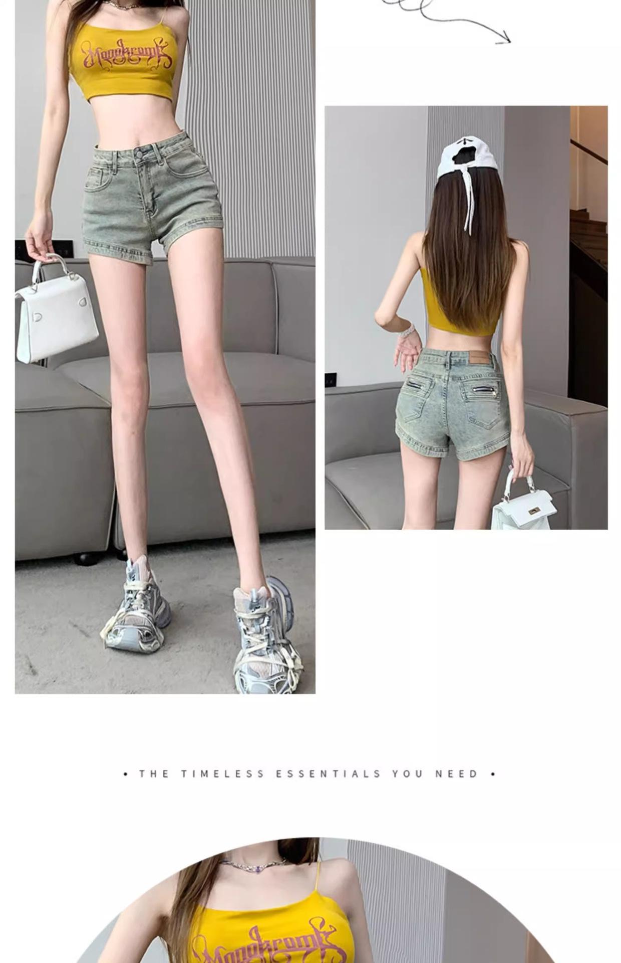 Pantalones cortos vaqueros retro americanos para mujer, novedad de verano 2024, de color claro, cintura alta, adelgazantes, combinables, ajustados.