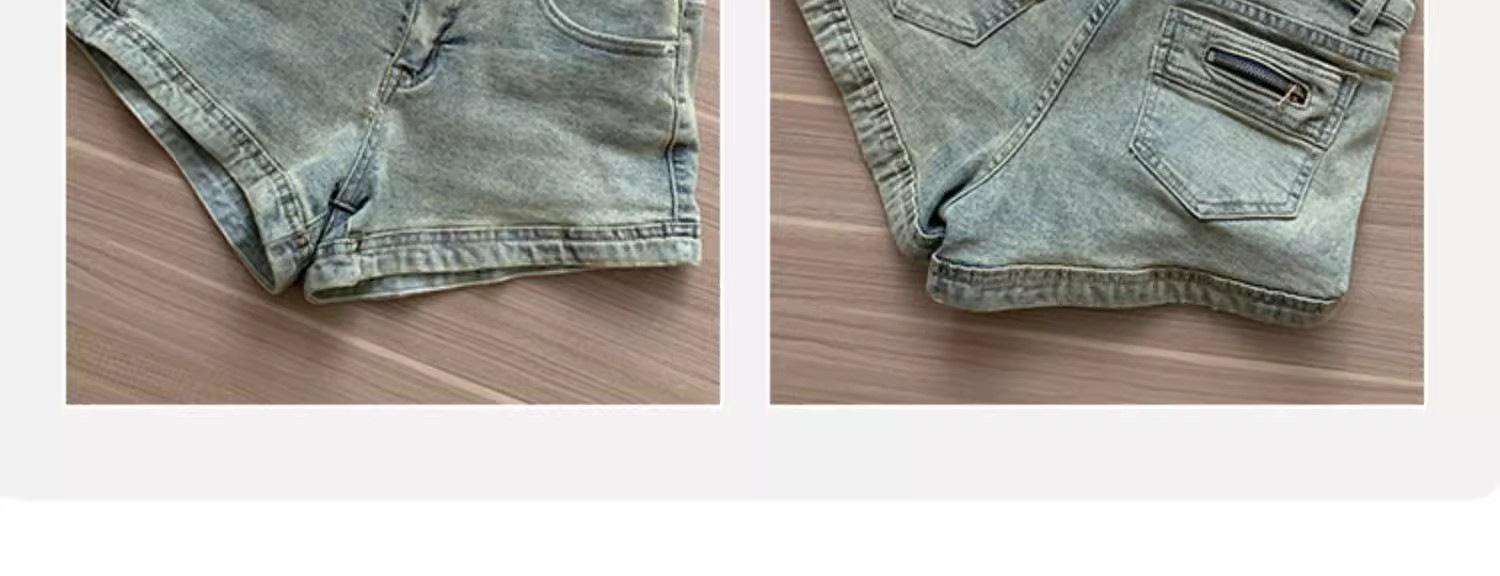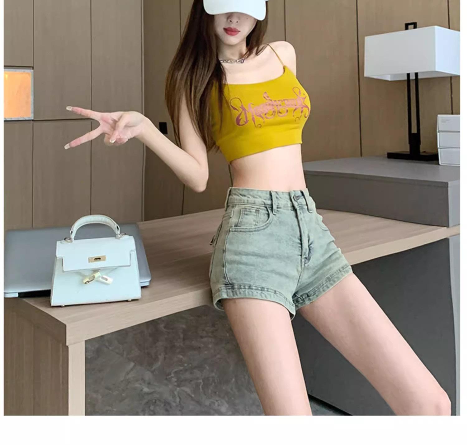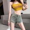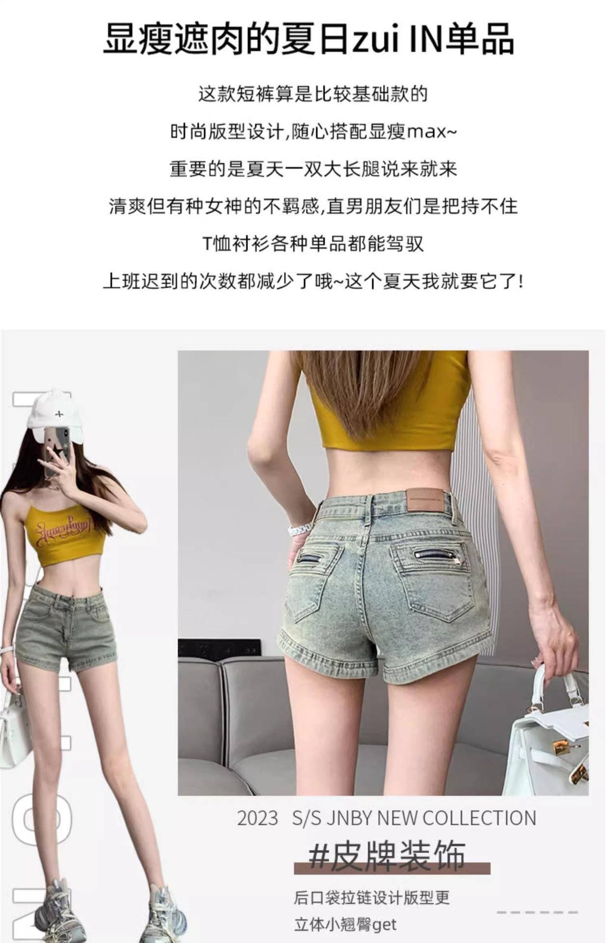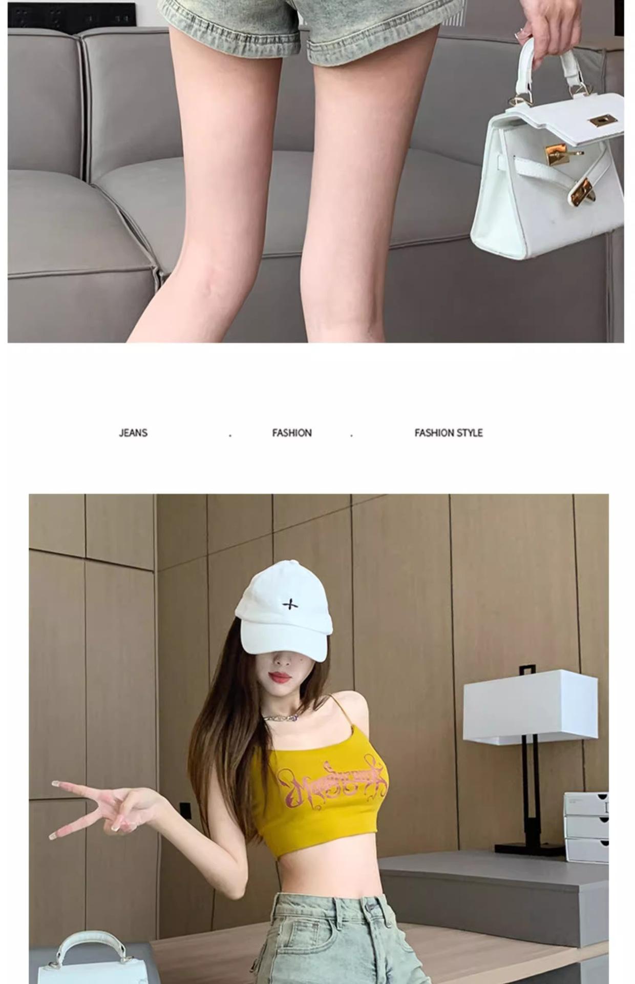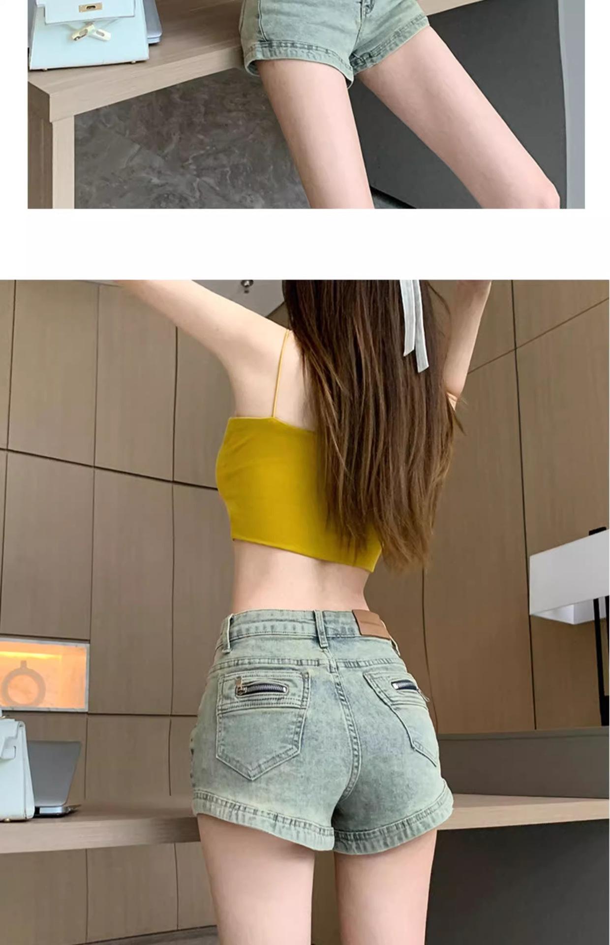 Pantalones cortos vaqueros retro americanos para mujer, novedad de verano 2024, de color claro, cintura alta, adelgazantes, combinables, ajustados.