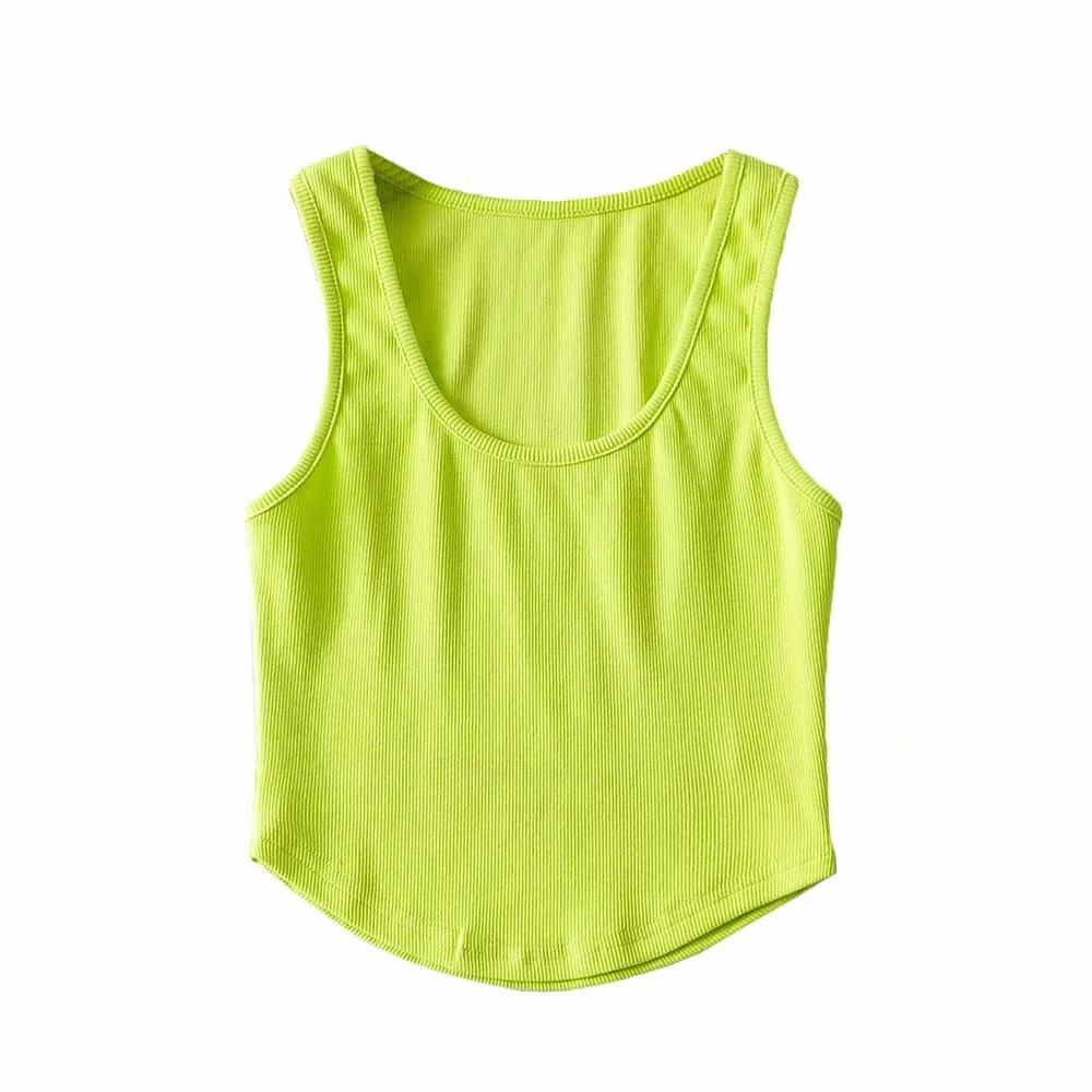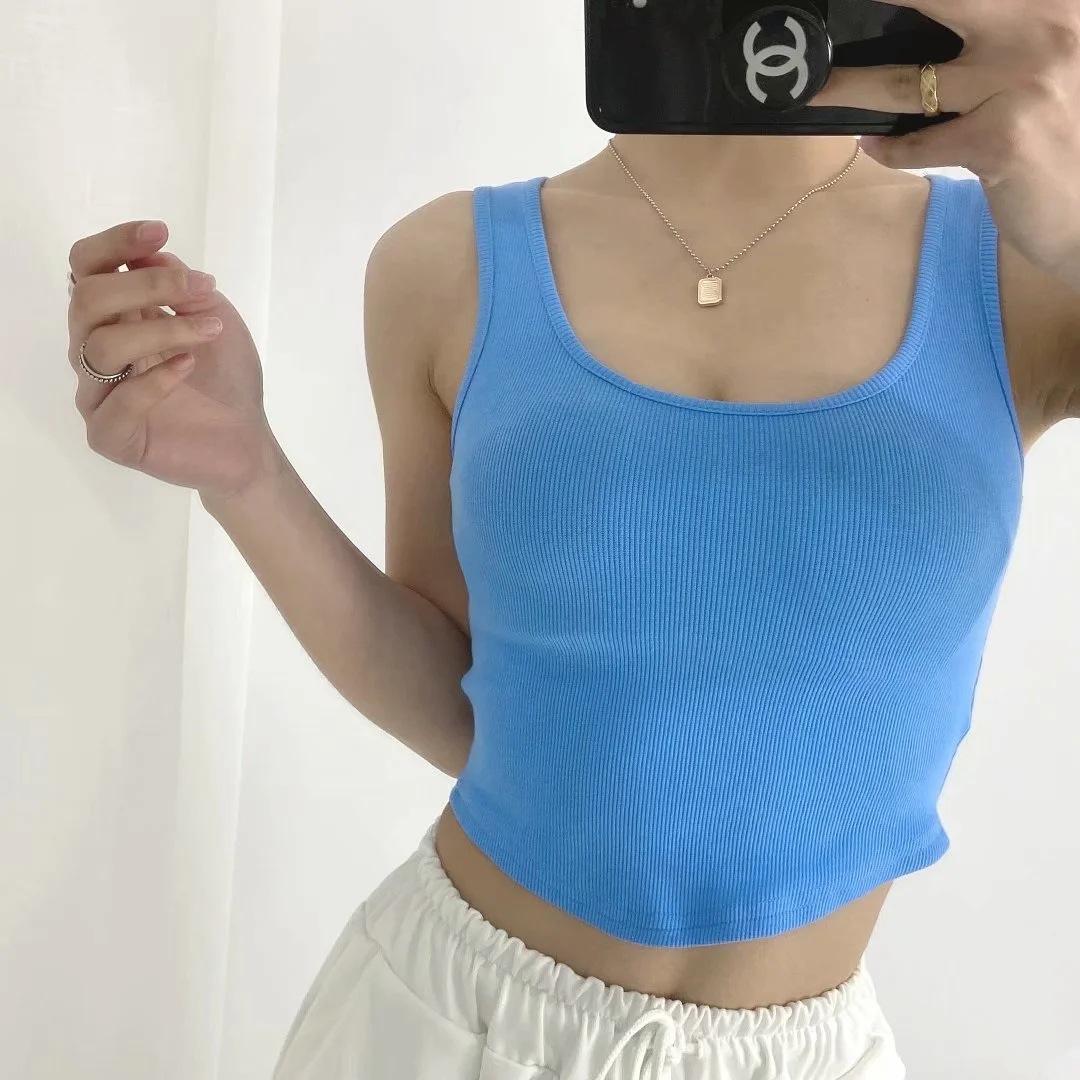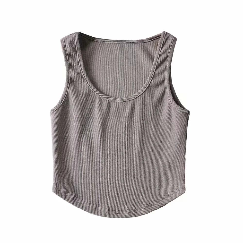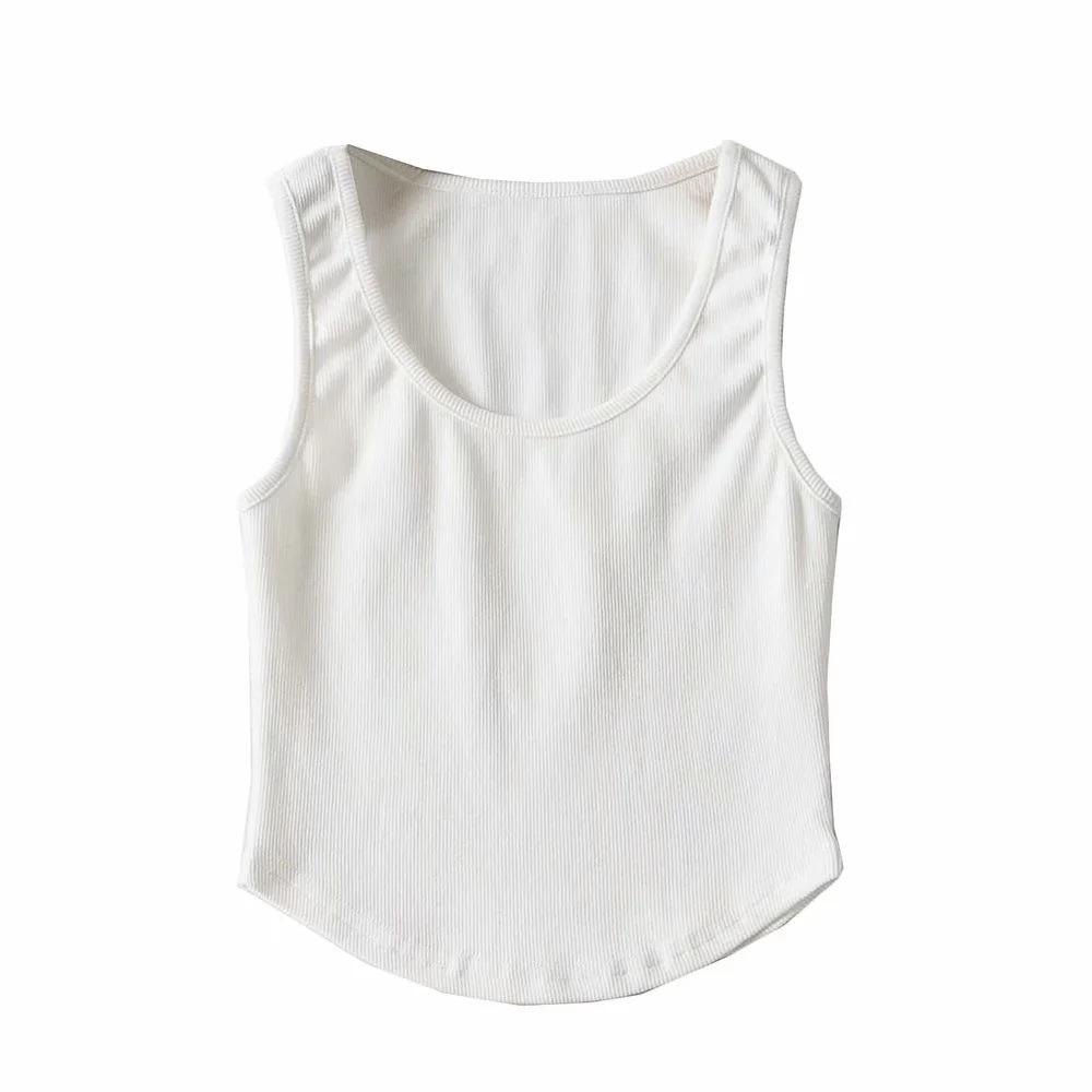 Camisola corta ajustada con bajo curvo para mujer, estilo blogger ins europeo y americano, sexy, color sólido, top de cuello en U