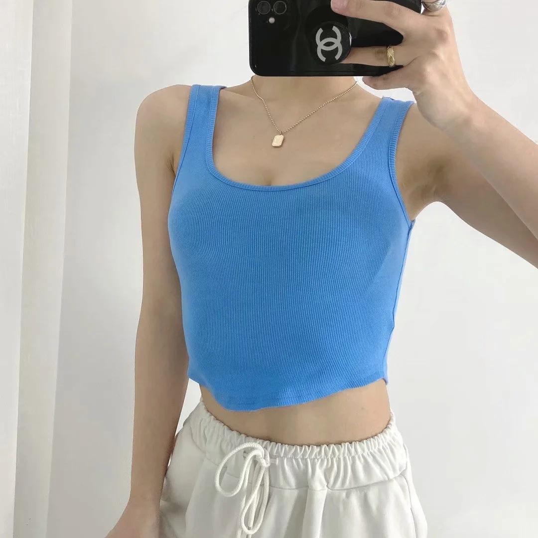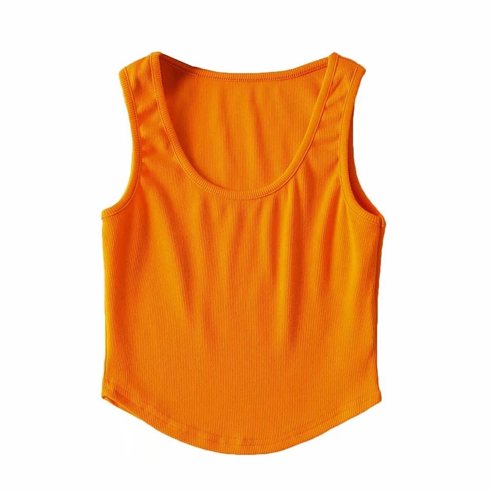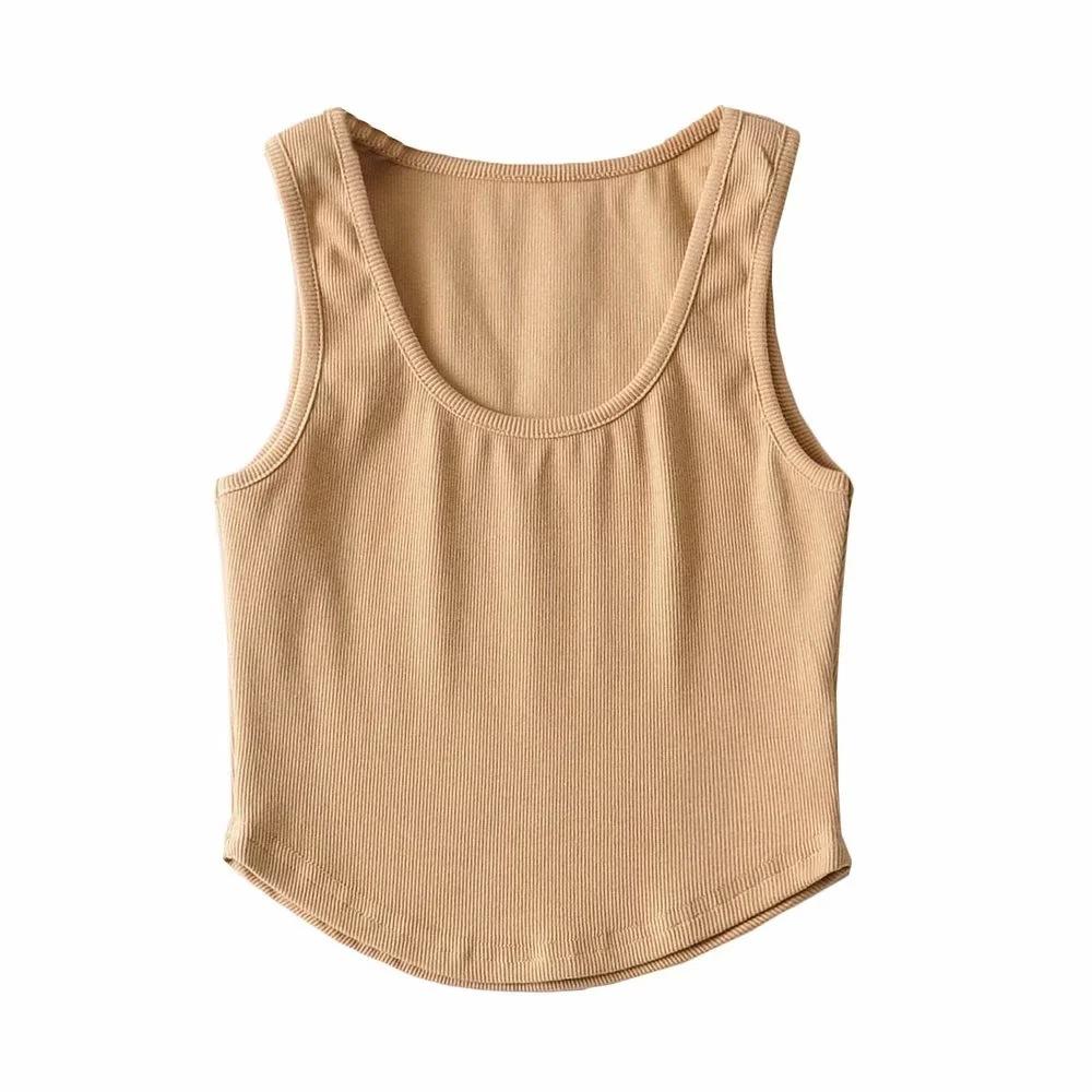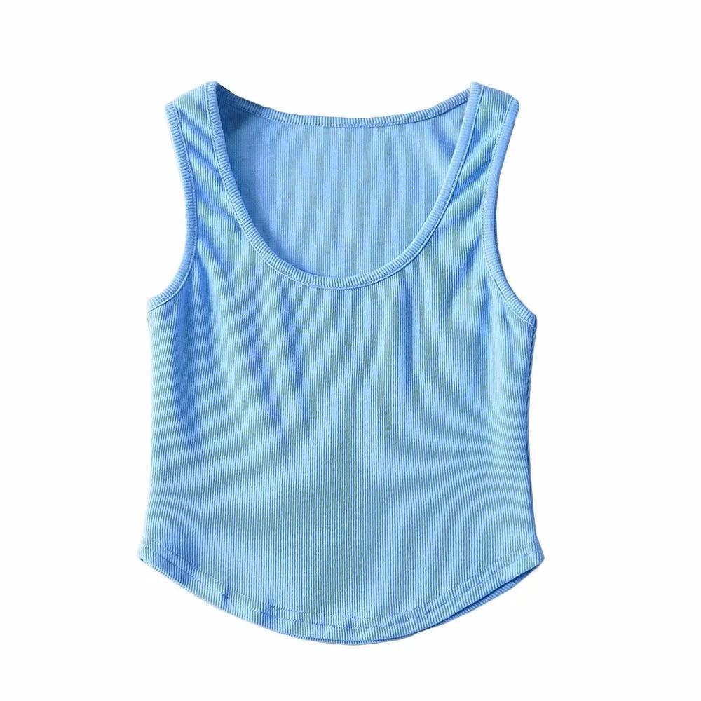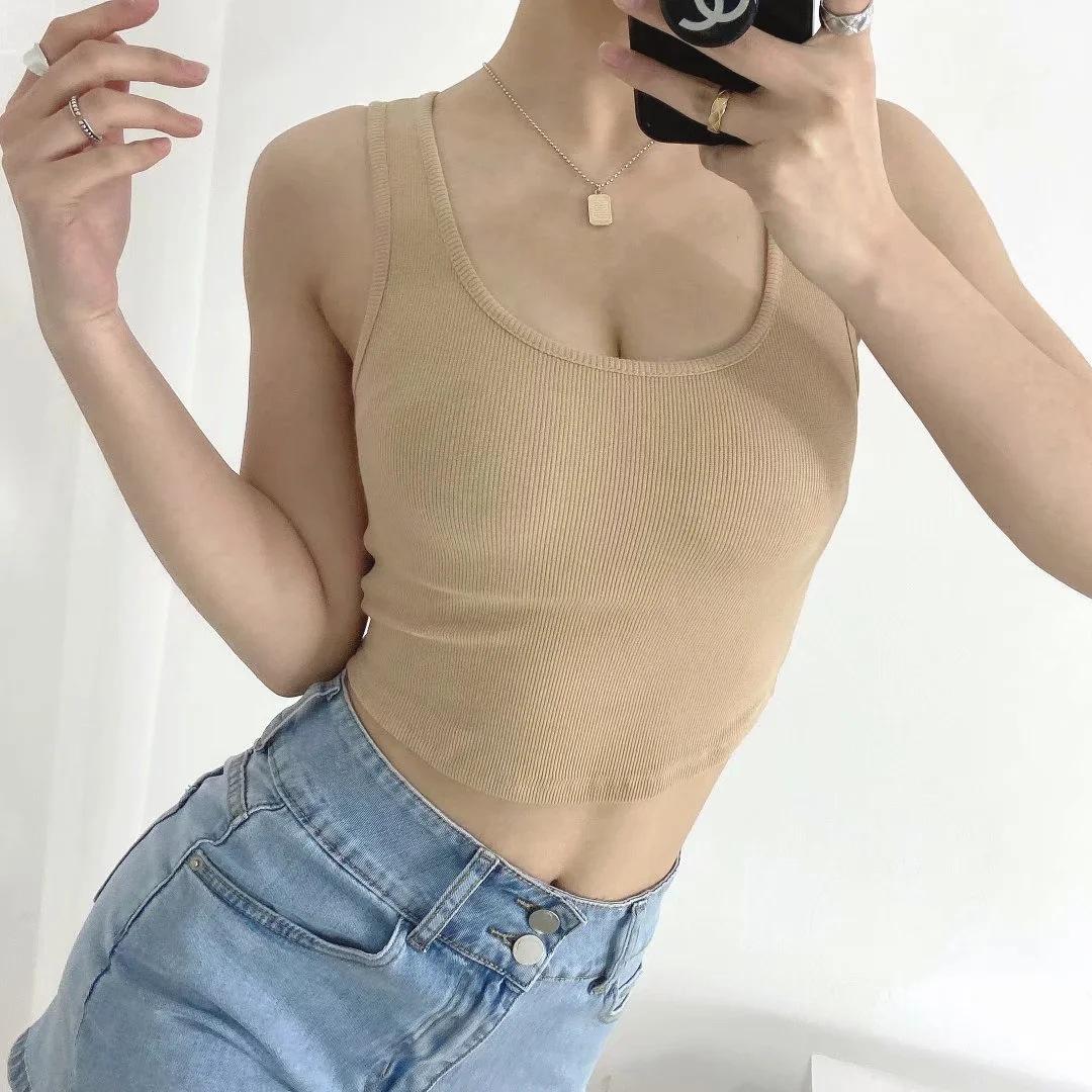 Camisola corta ajustada con bajo curvo para mujer, estilo blogger ins europeo y americano, sexy, color sólido, top de cuello en U