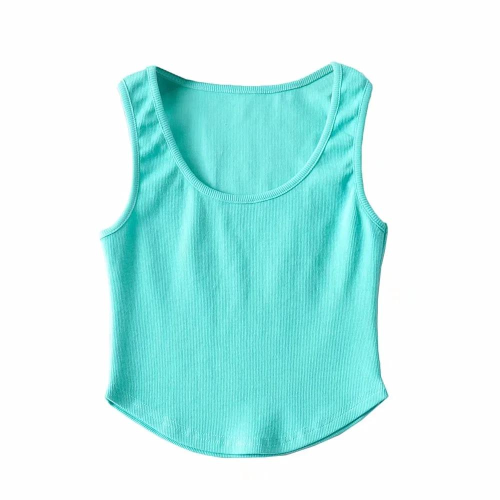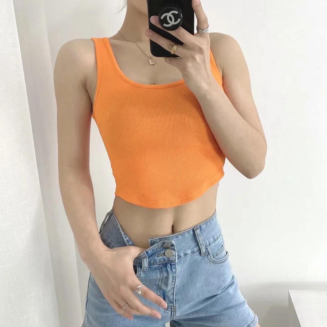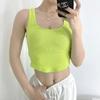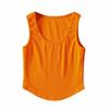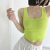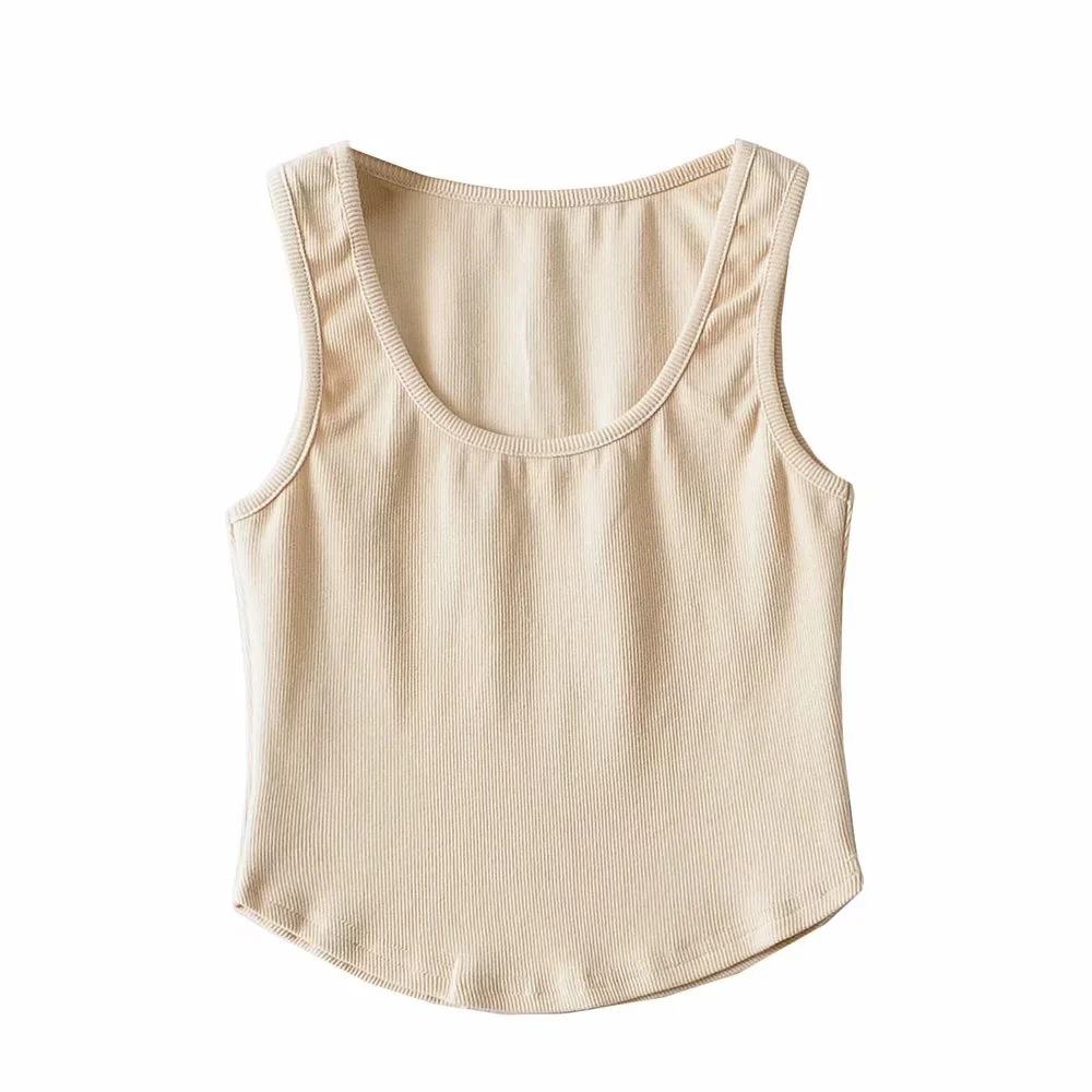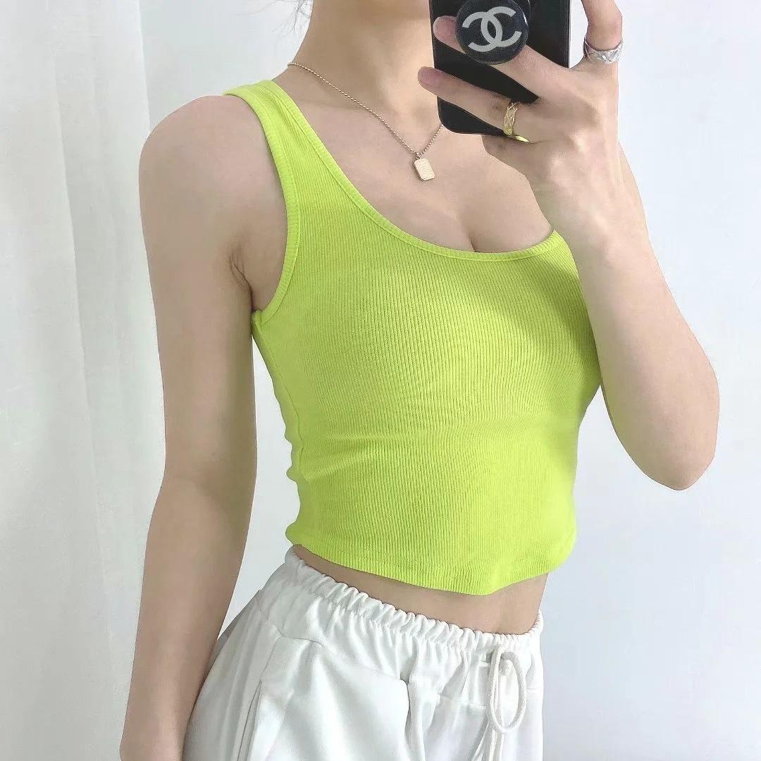 Camisola corta ajustada con bajo curvo para mujer, estilo blogger ins europeo y americano, sexy, color sólido, top de cuello en U
