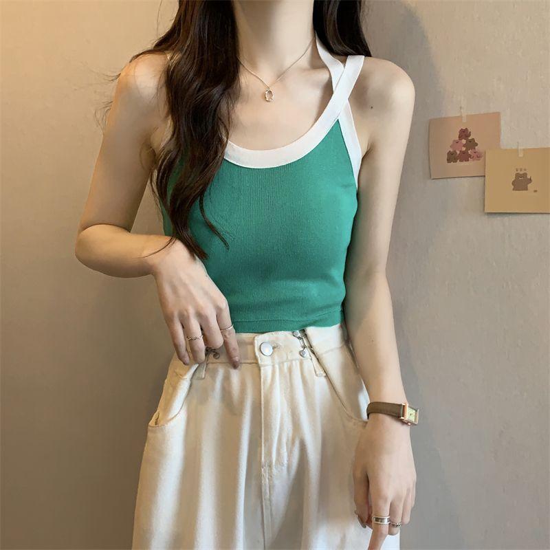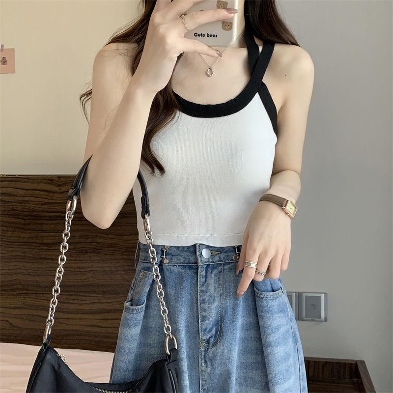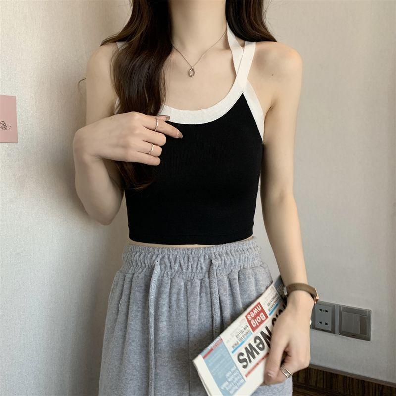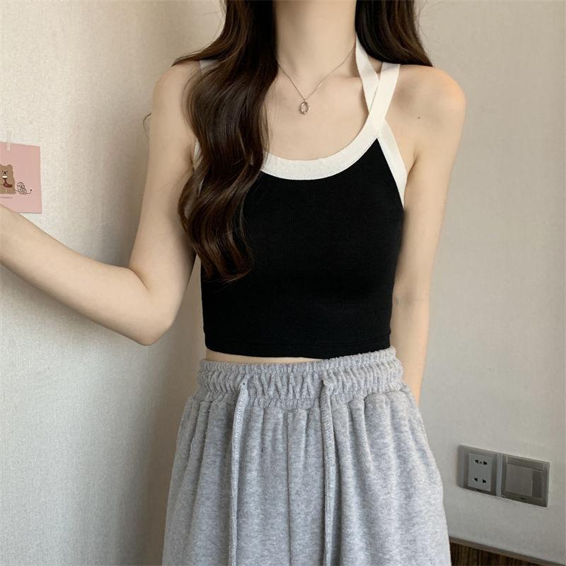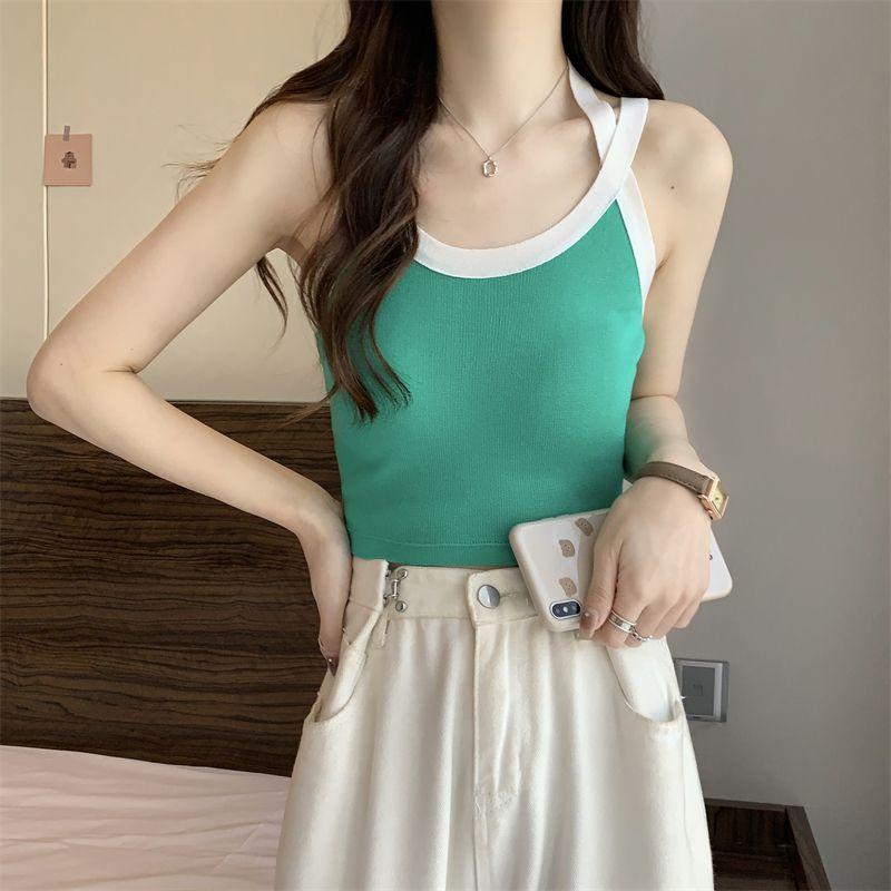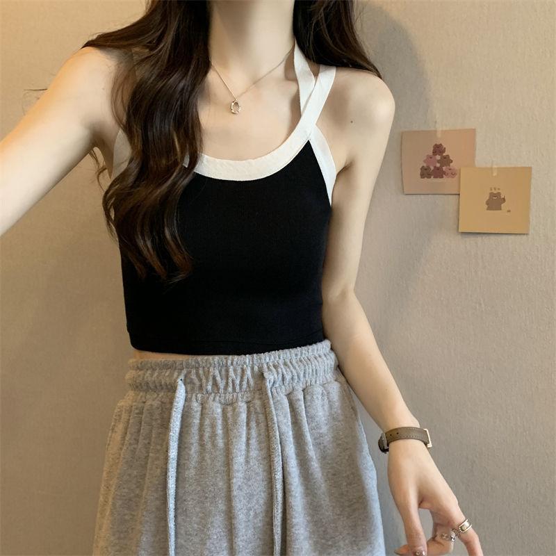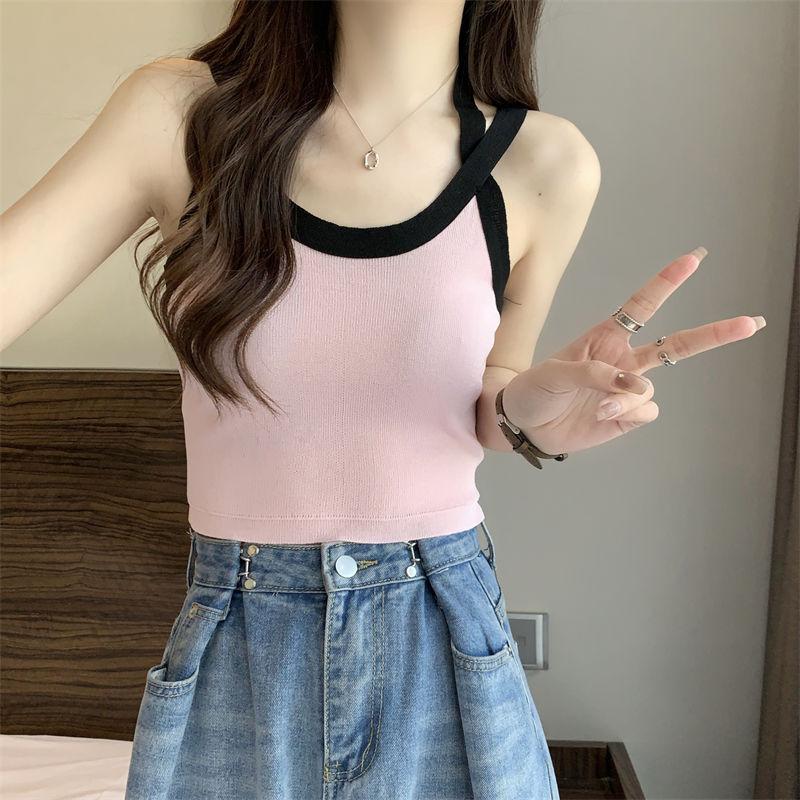 Camisola pequeña sin mangas con cuello halter cruzado para chica caliente, para mujer, nueva, de primavera y verano, con hombros descubiertos, corta, de cintura alta, interior