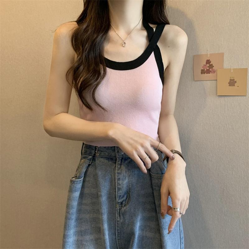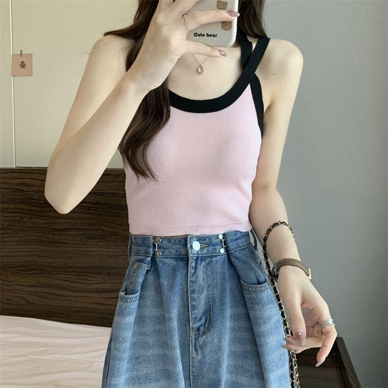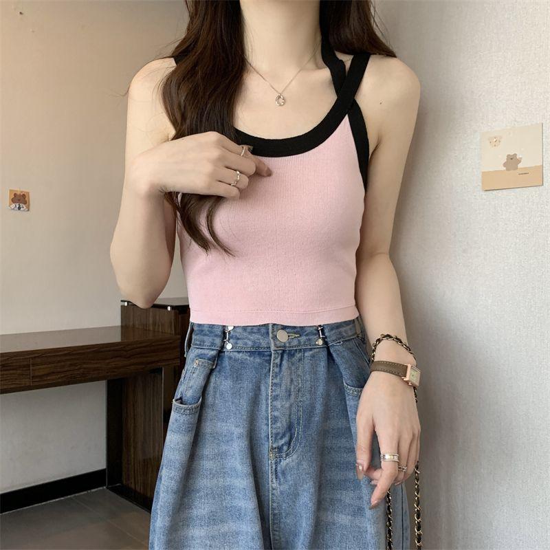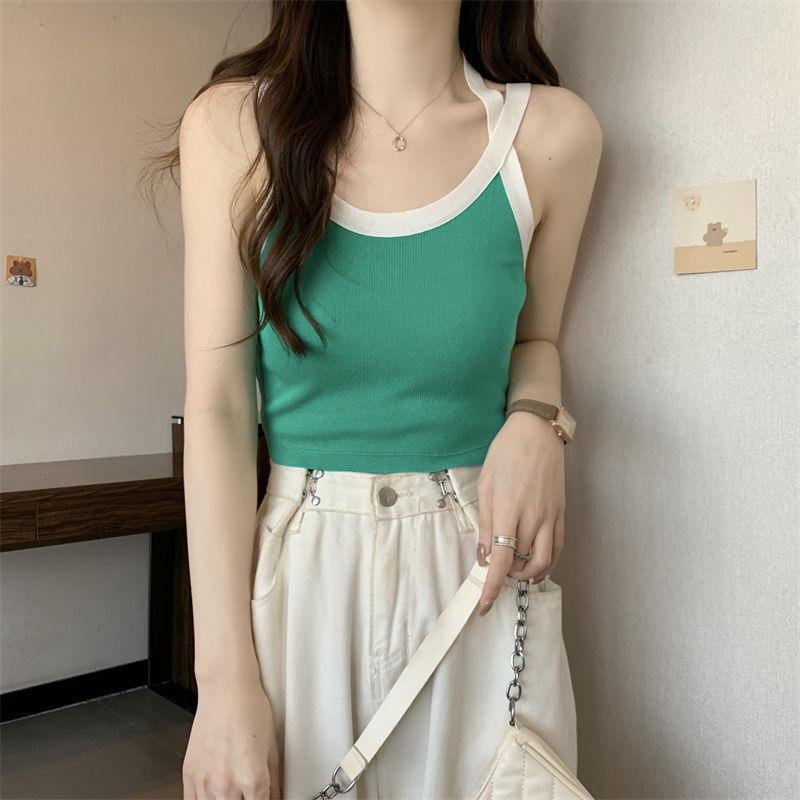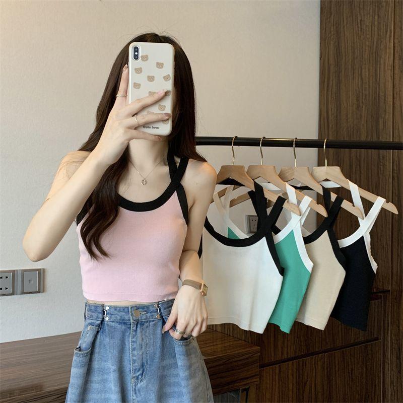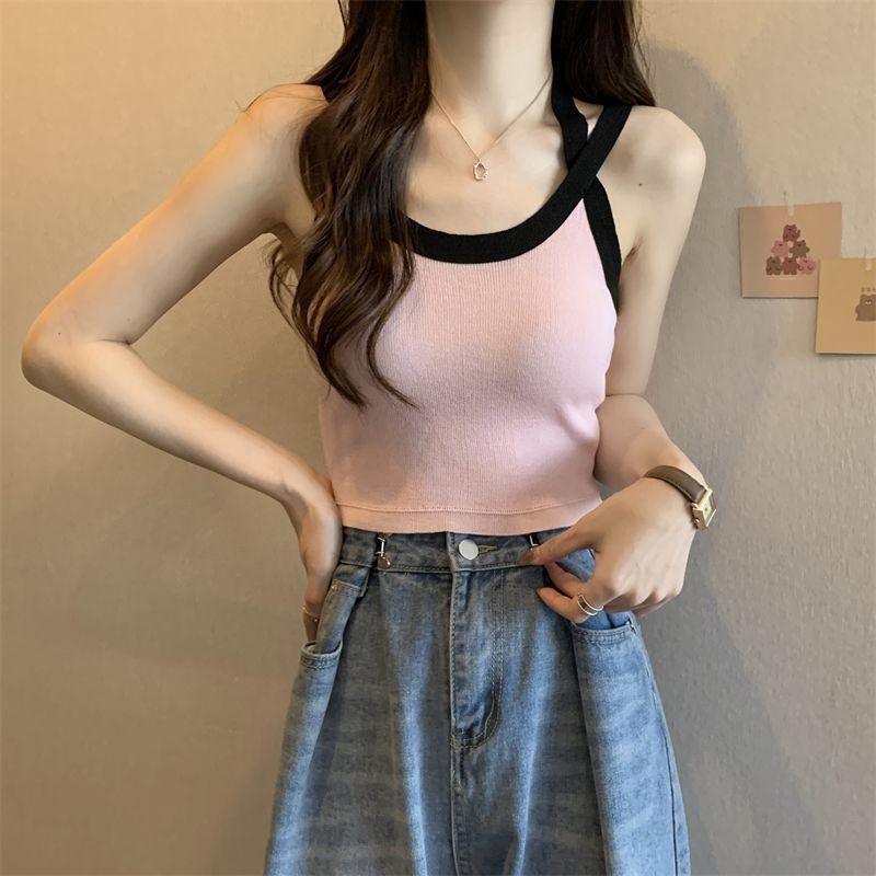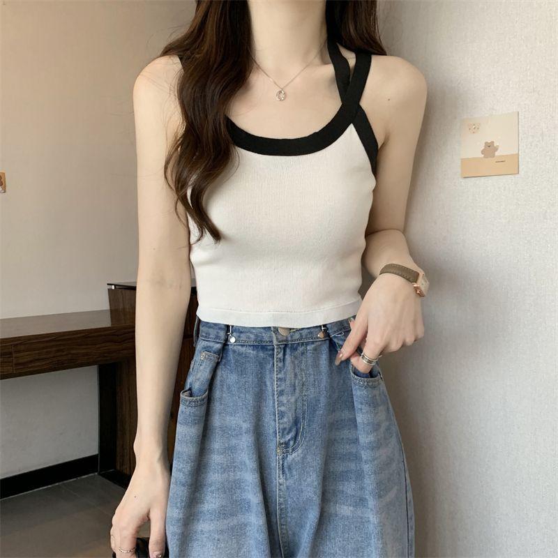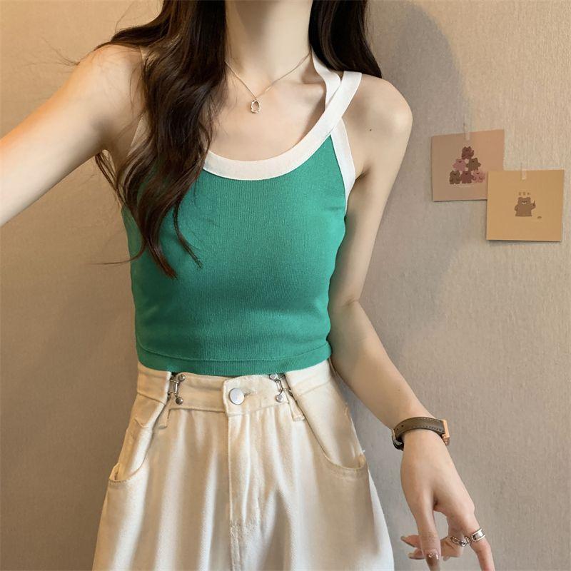 Camisola pequeña sin mangas con cuello halter cruzado para chica caliente, para mujer, nueva, de primavera y verano, con hombros descubiertos, corta, de cintura alta, interior