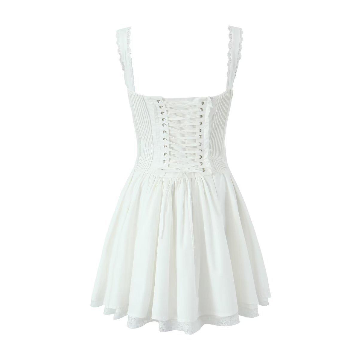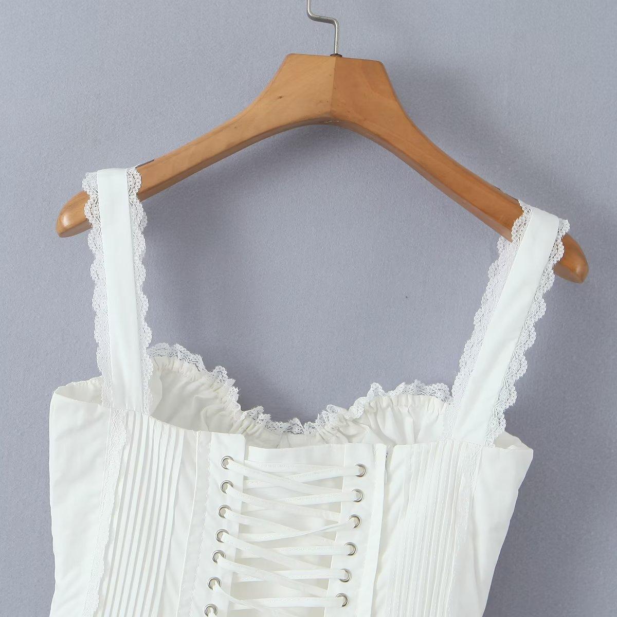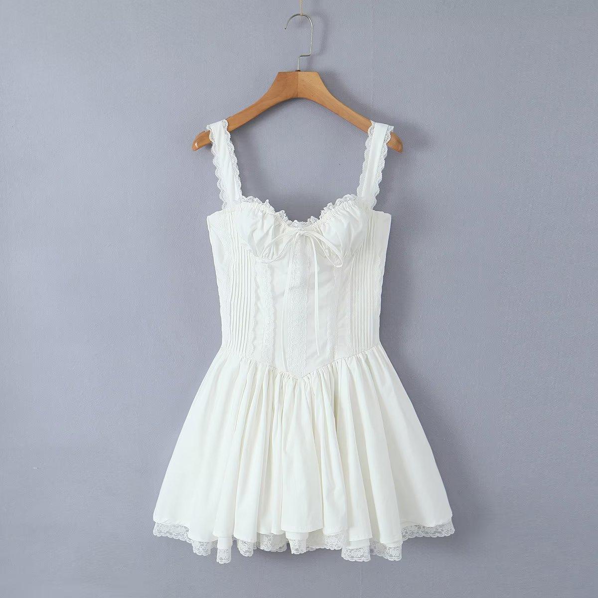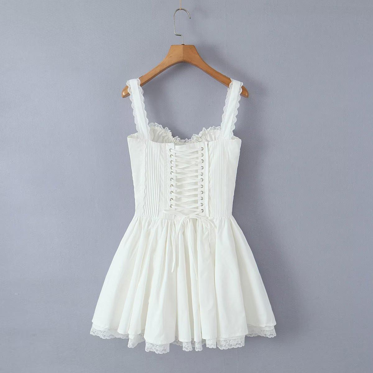 Vestido de verano con tirantes de encaje para mujer, estilo europeo y americano, con falda larga y vuelo S11586