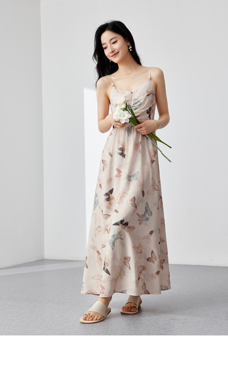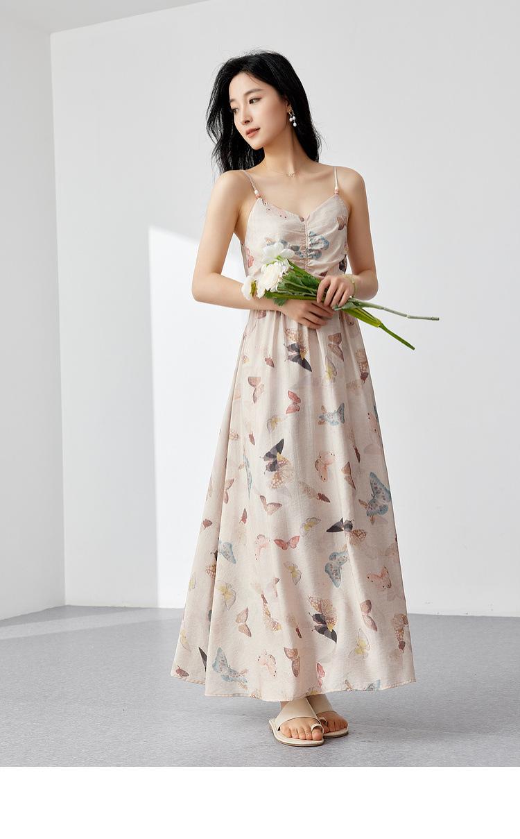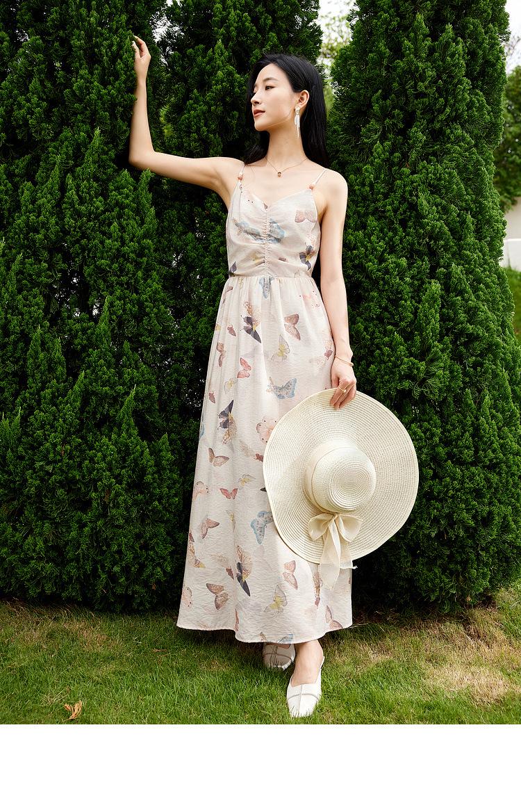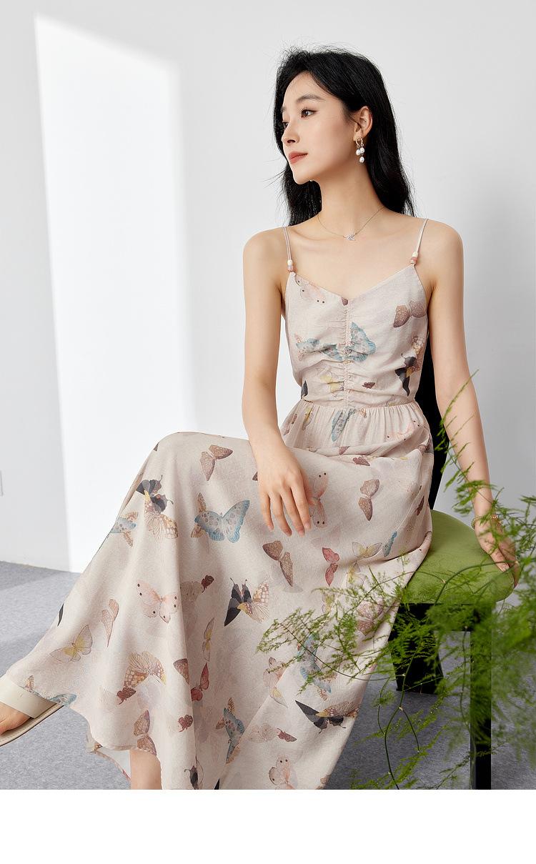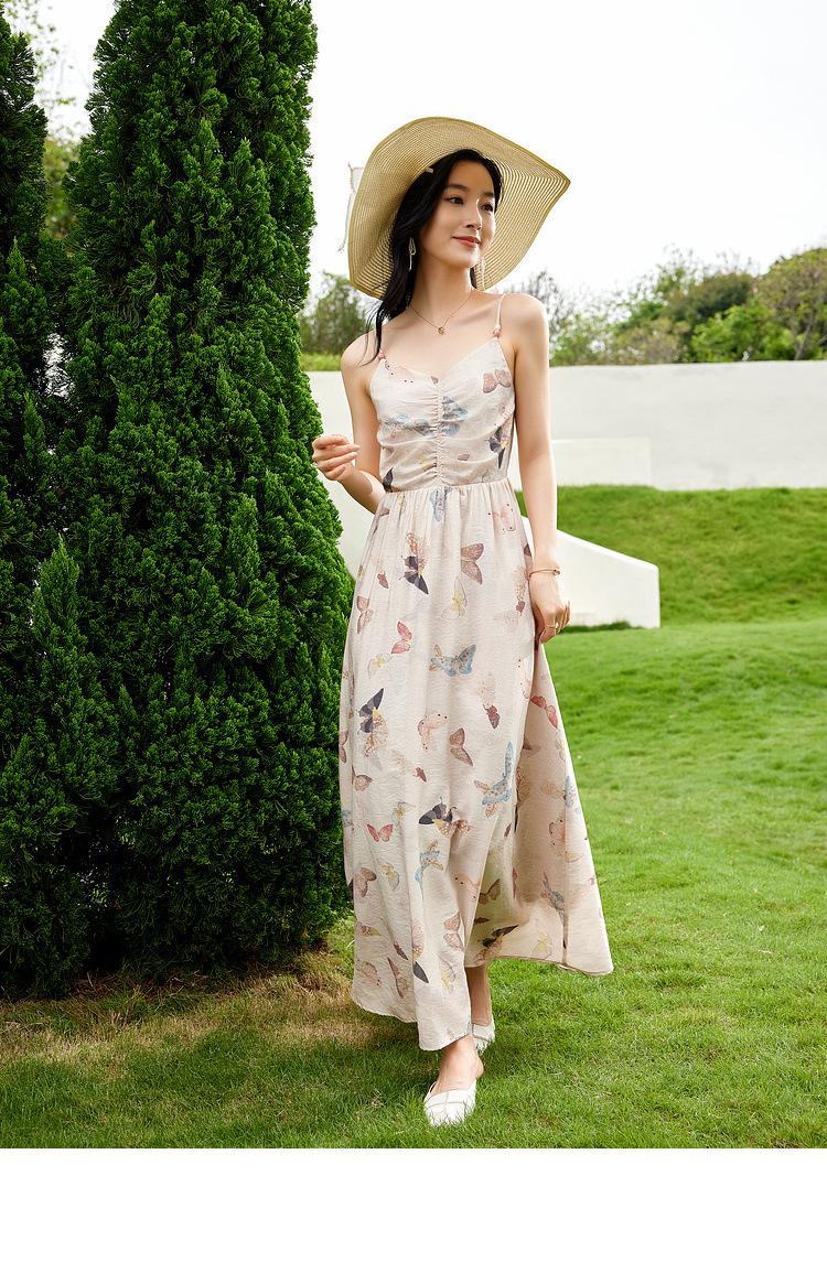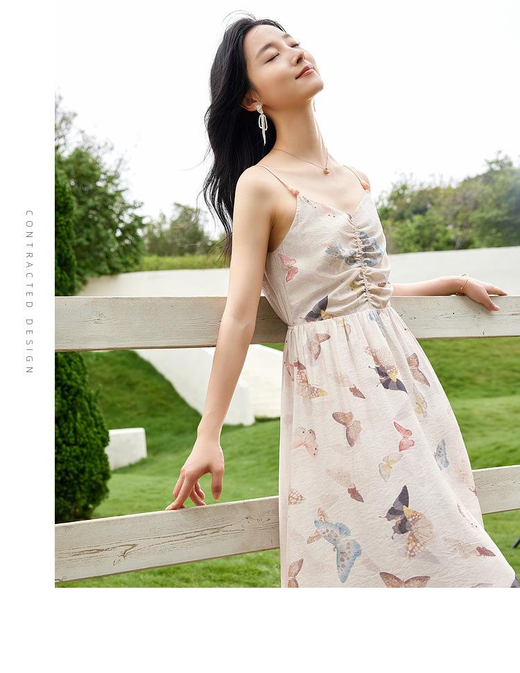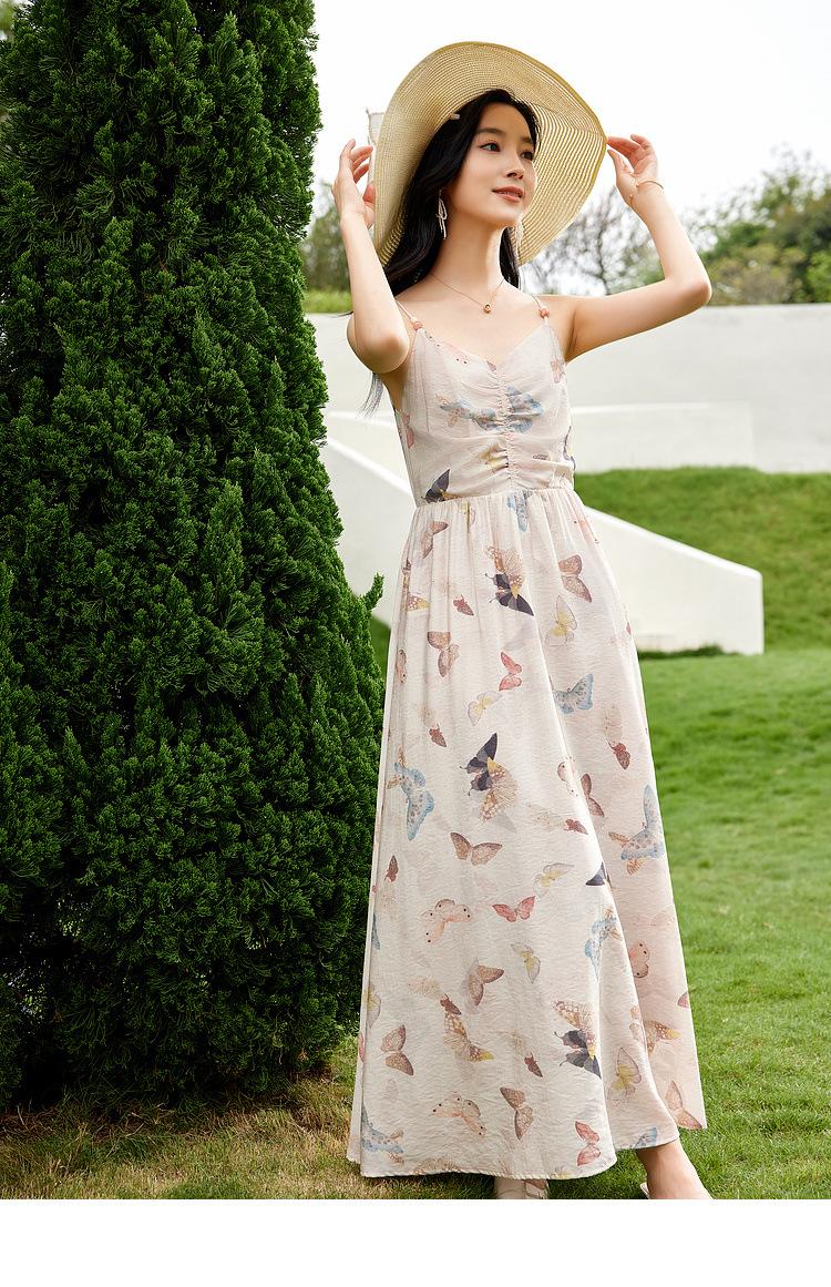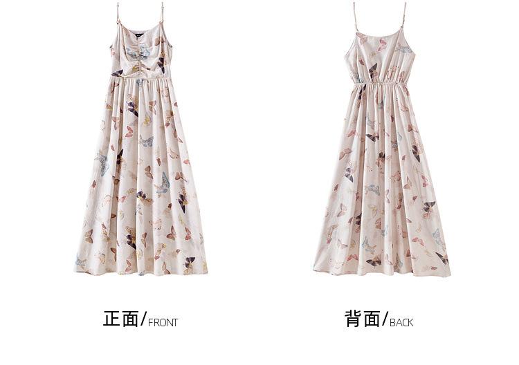 Zhen Xi Nuevo Vestido de Moda para Mujer con Cuello en V, Estampado de Mariposas, Cintura Alta, Cintura Plisada, Tirantes, DP283