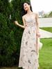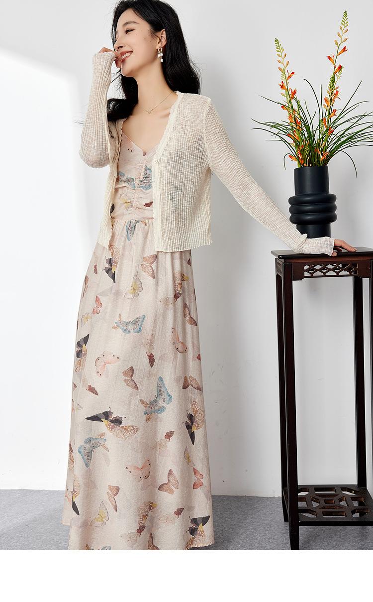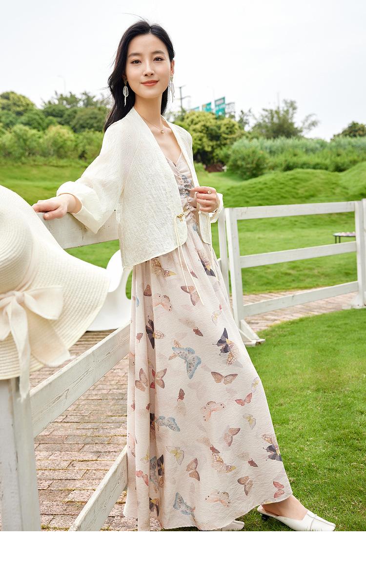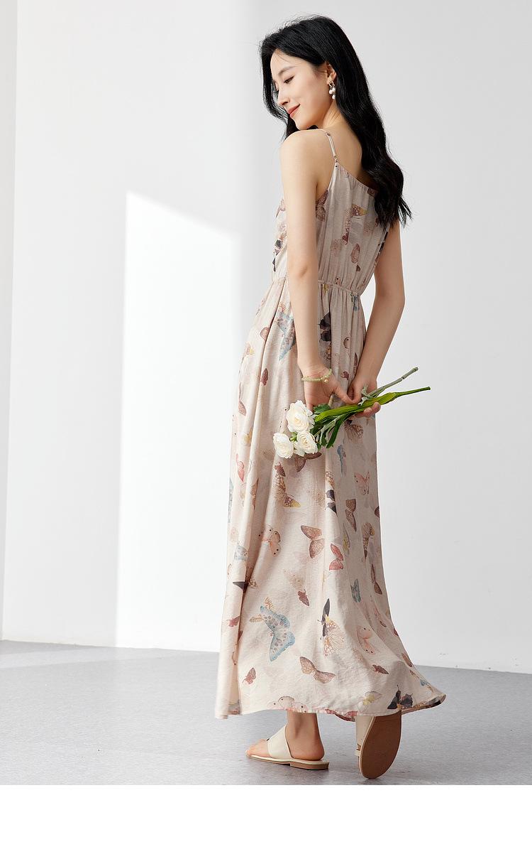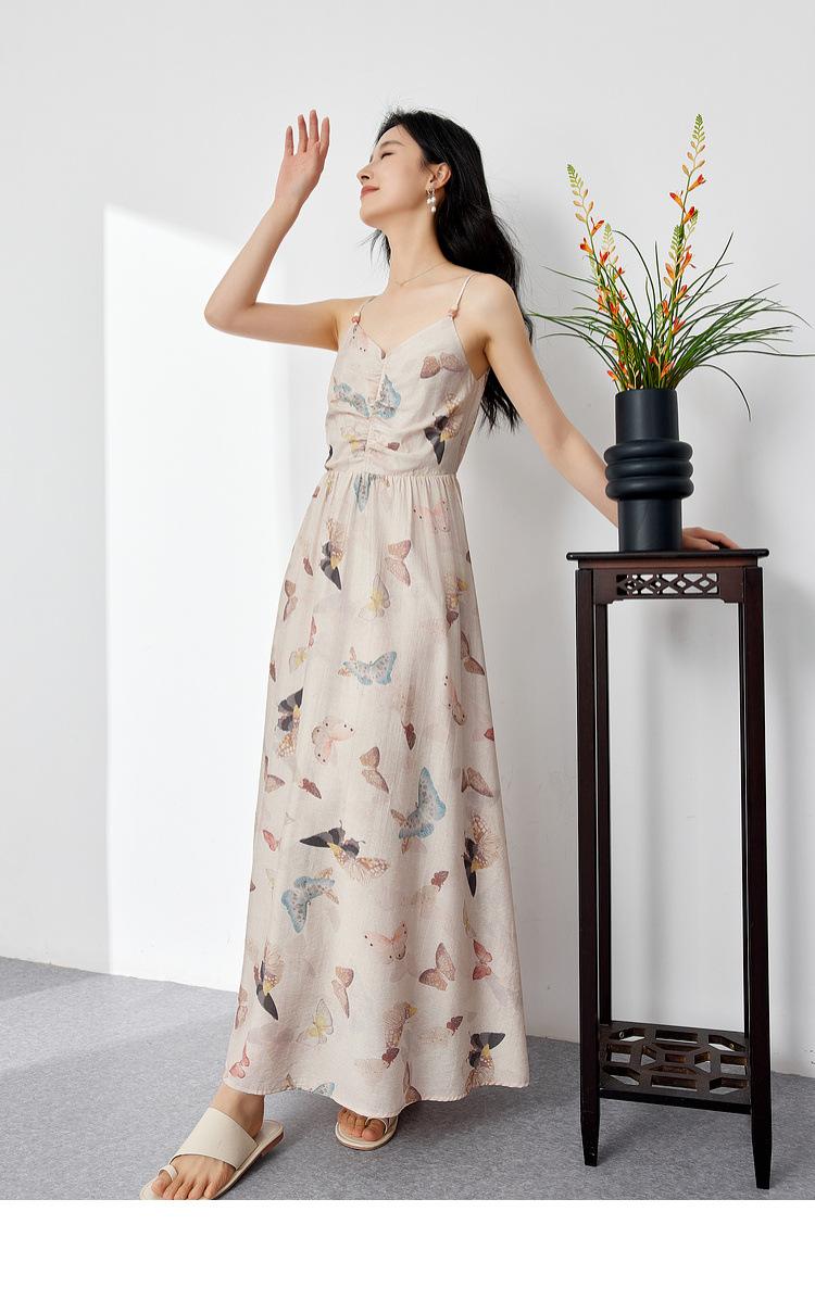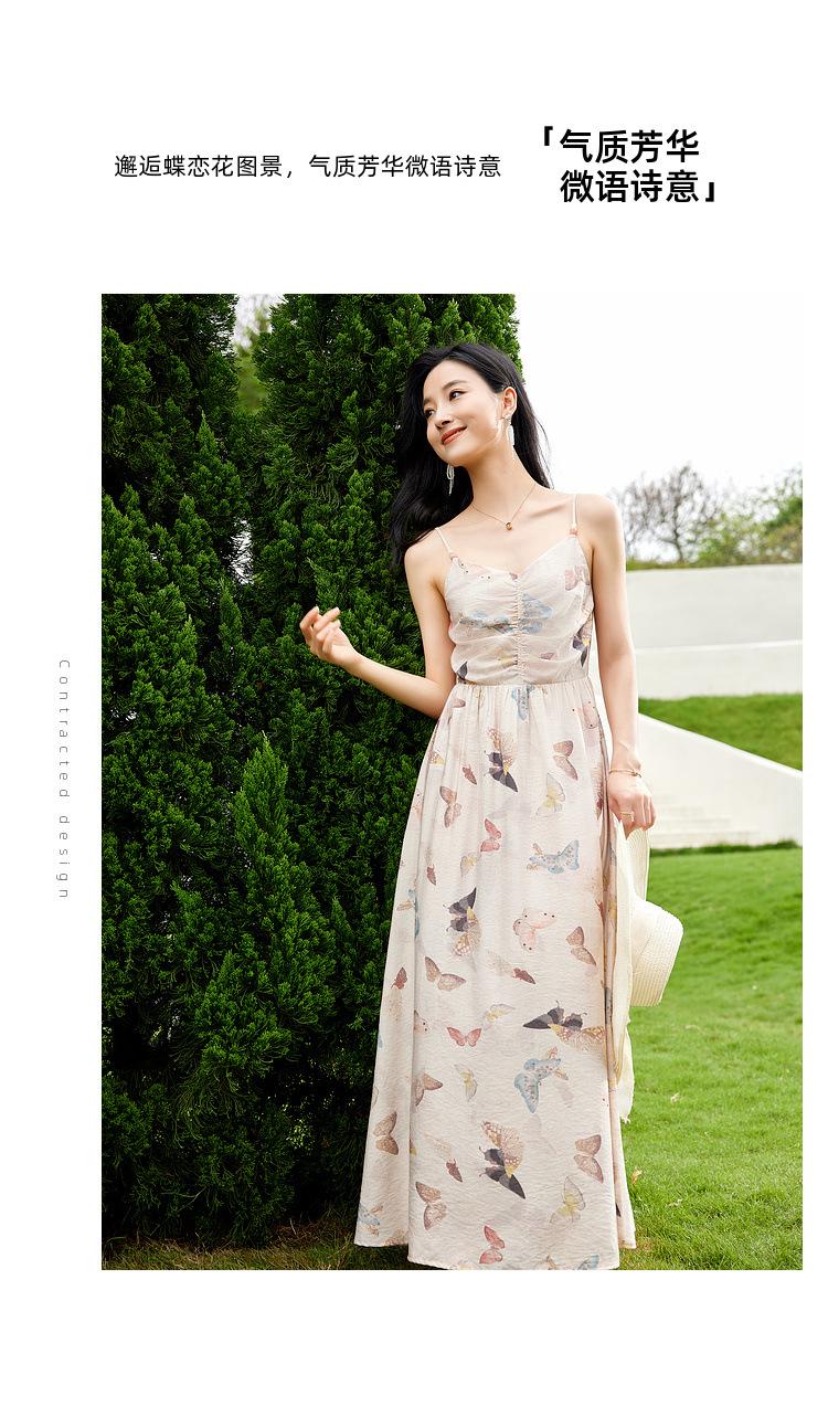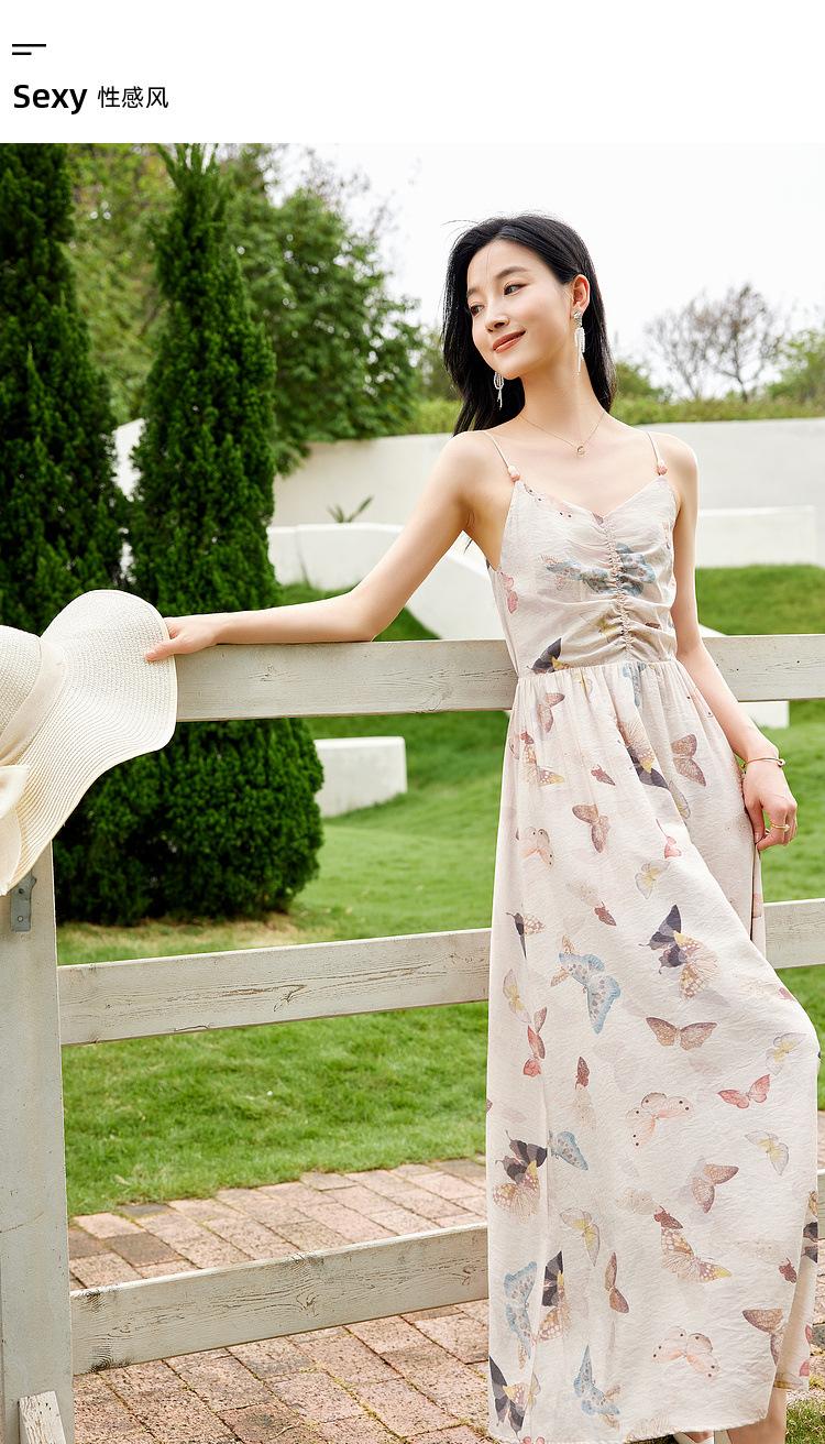 Zhen Xi Nuevo Vestido de Moda para Mujer con Cuello en V, Estampado de Mariposas, Cintura Alta, Cintura Plisada, Tirantes, DP283