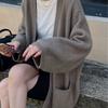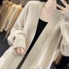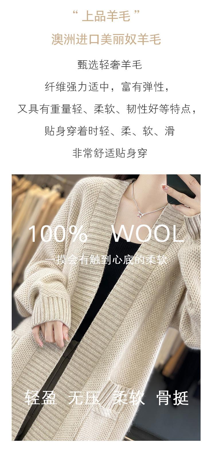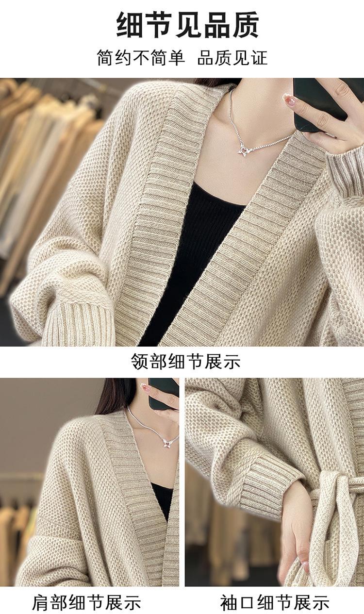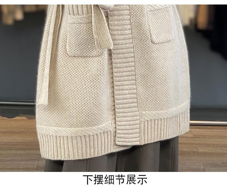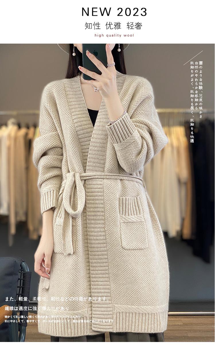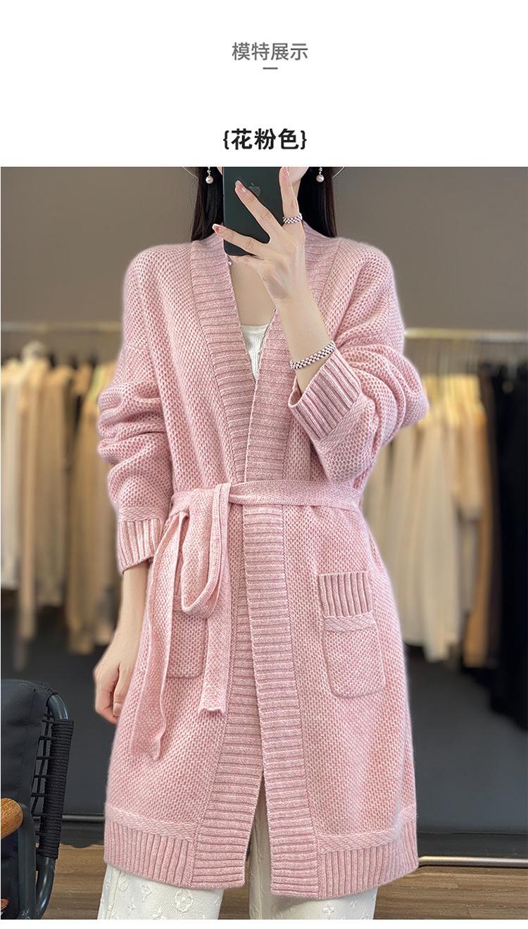 Suéter de Lana de Largo Medio con Cuello en V 2025 para Mujer con Cinturón, Abrigo Jacquard de Manga Larga, Cárdigan Holgado de Cachemira