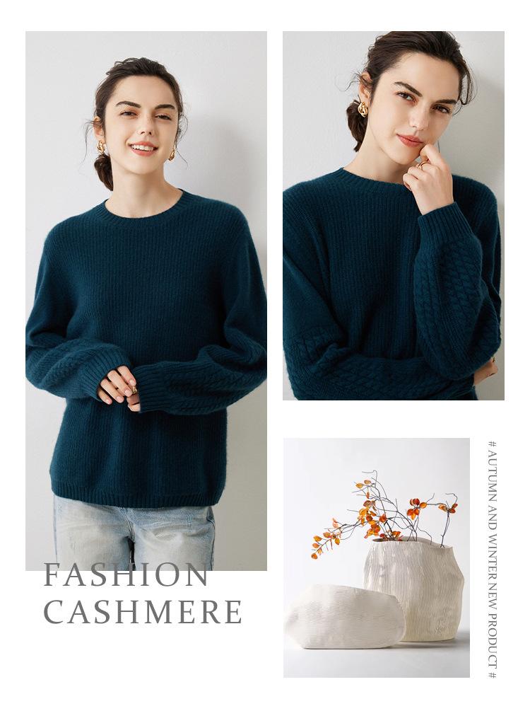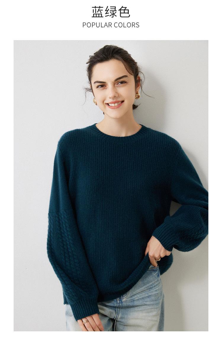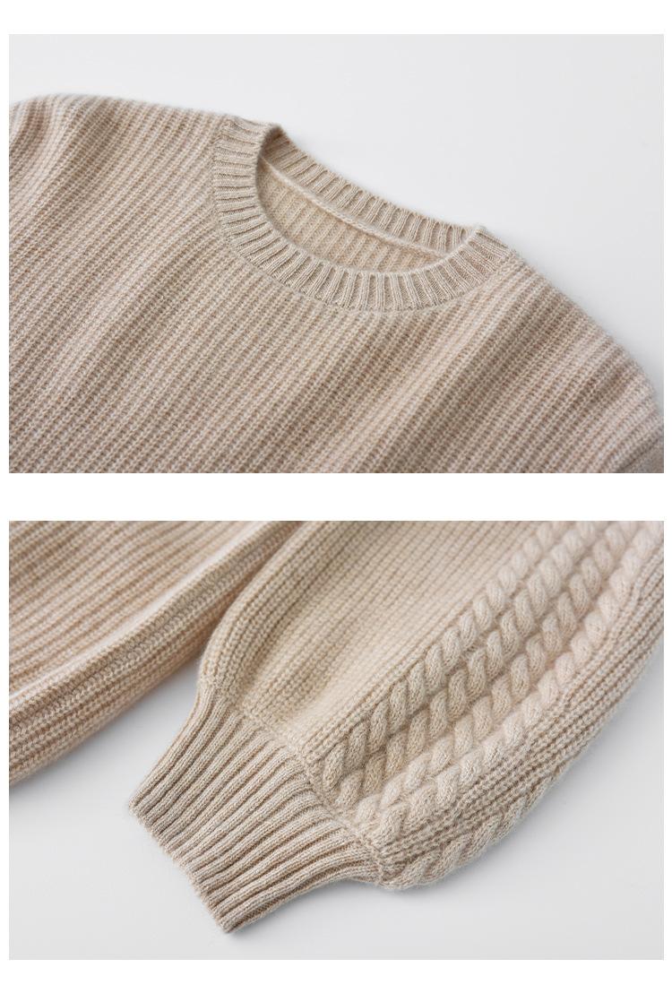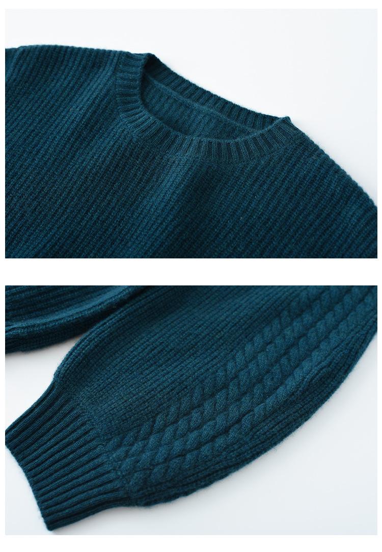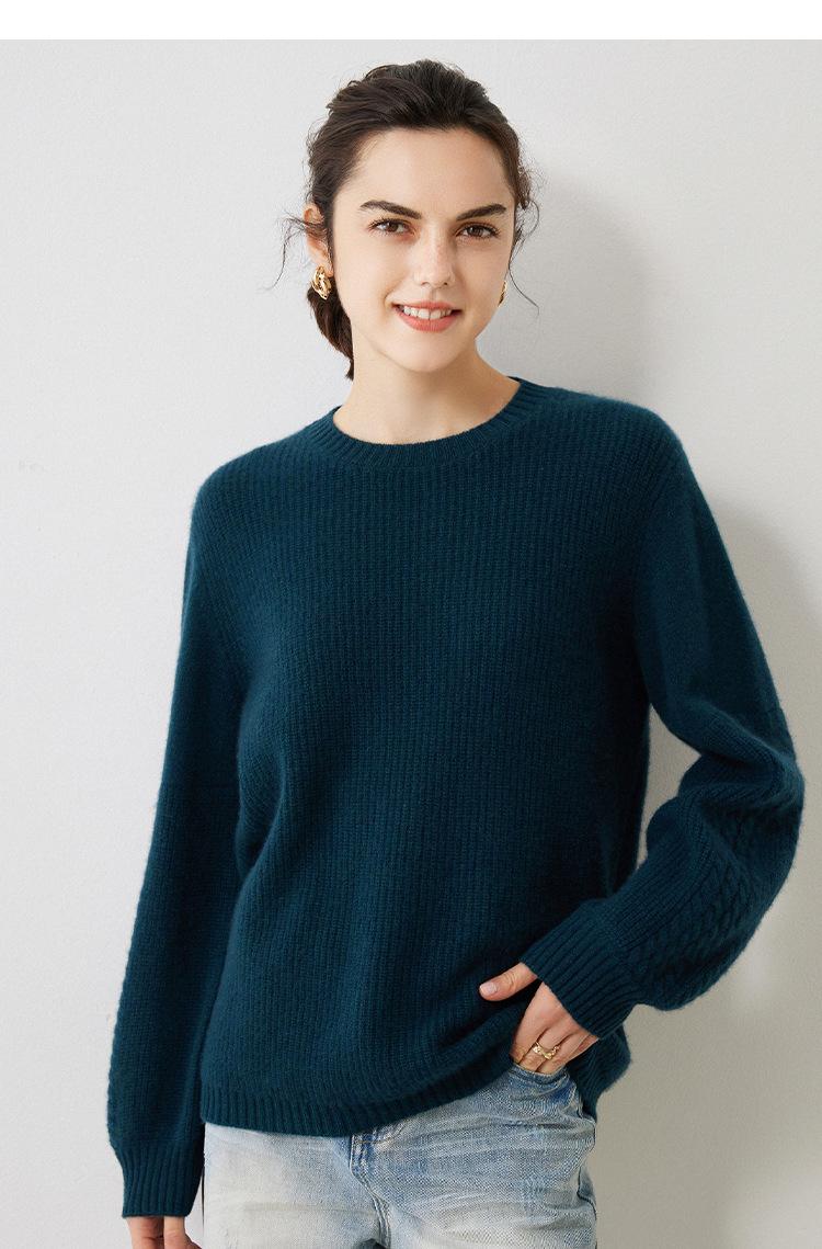 Suéter de Cachemira de Cuello Redondo Nuevo Otoño e Invierno 2023 para Mujer de Manga Larga con Aguja Lingote Manga Linterna Tejido de Cachemira para Fondo