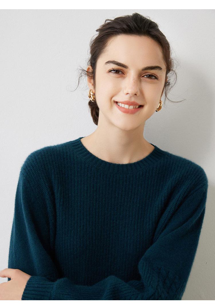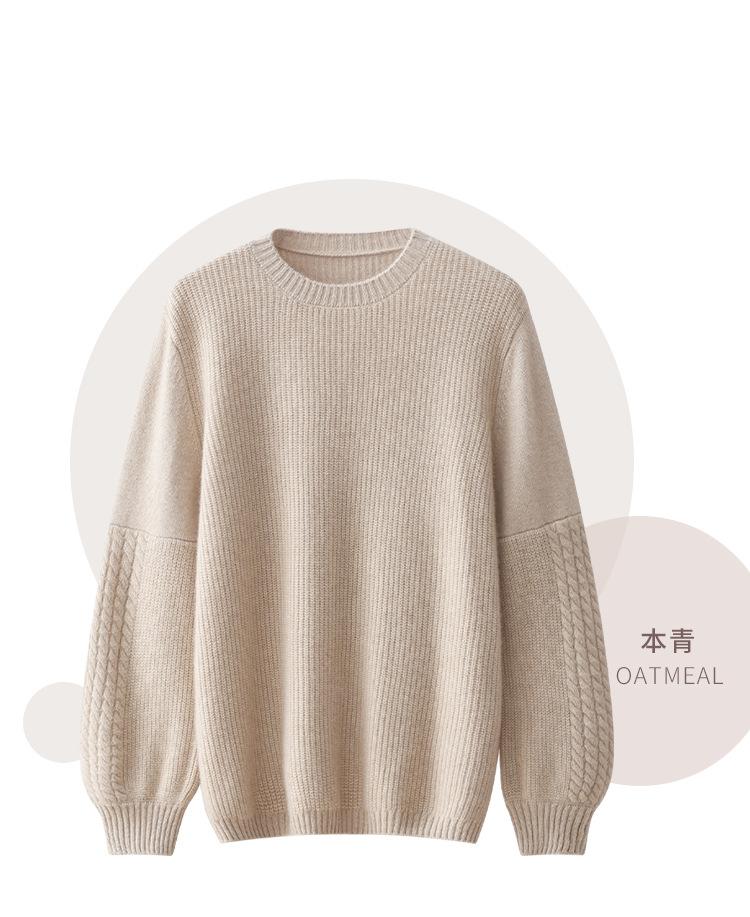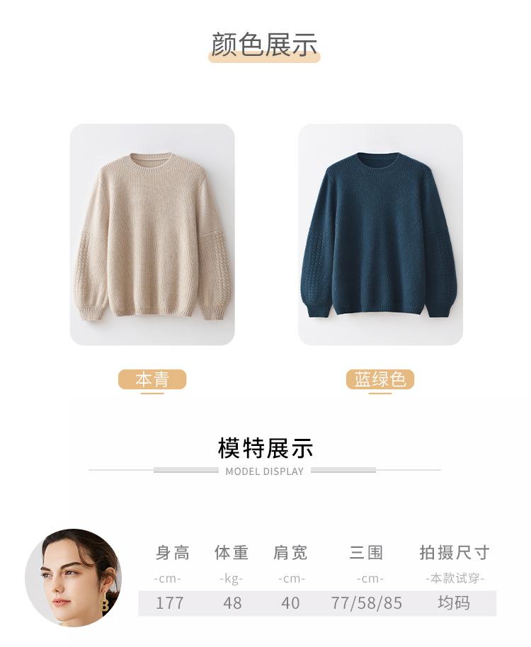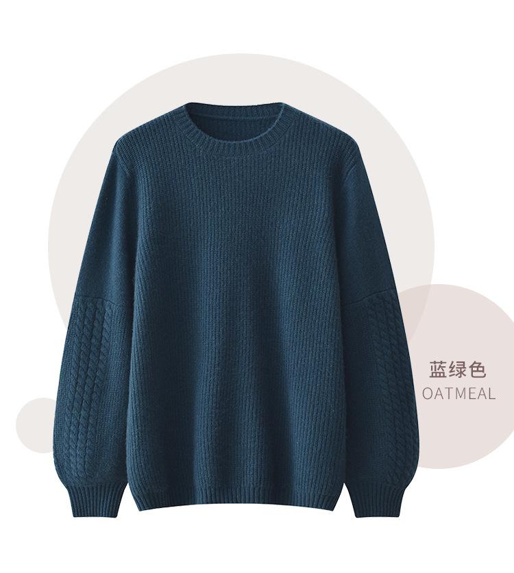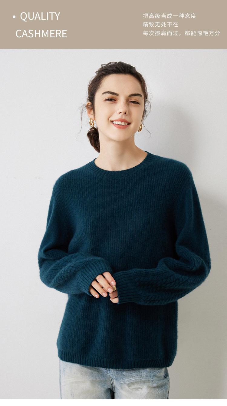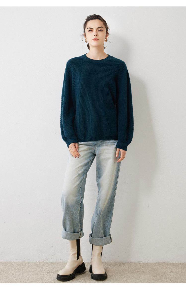 Suéter de Cachemira de Cuello Redondo Nuevo Otoño e Invierno 2023 para Mujer de Manga Larga con Aguja Lingote Manga Linterna Tejido de Cachemira para Fondo