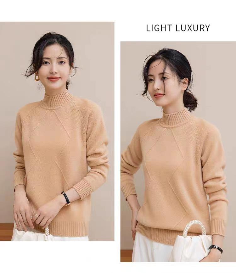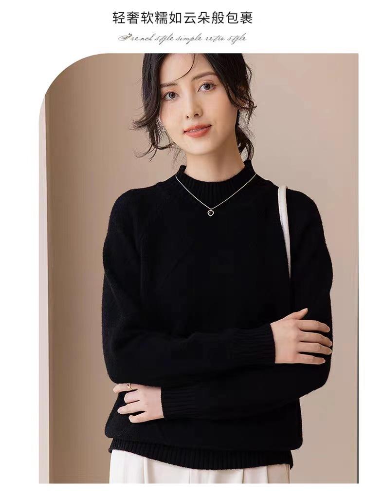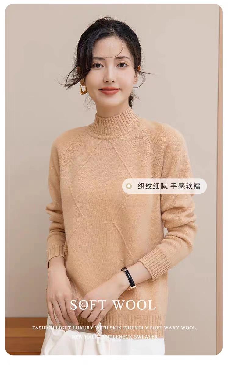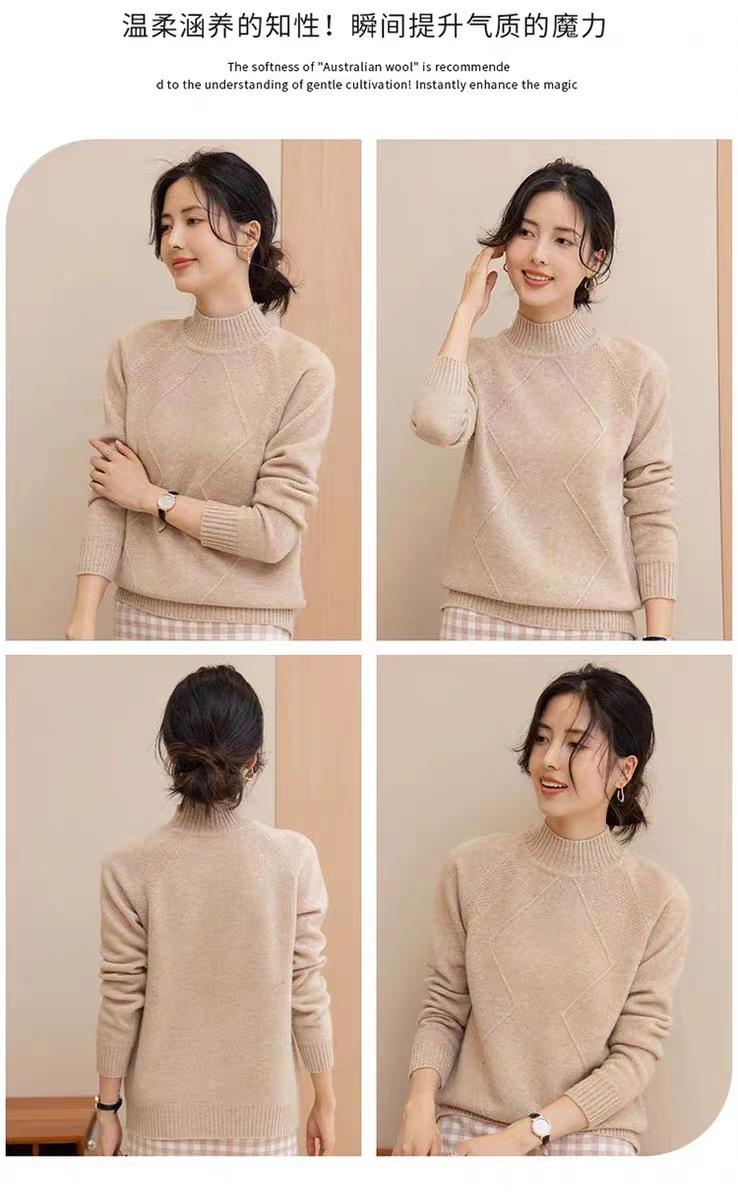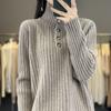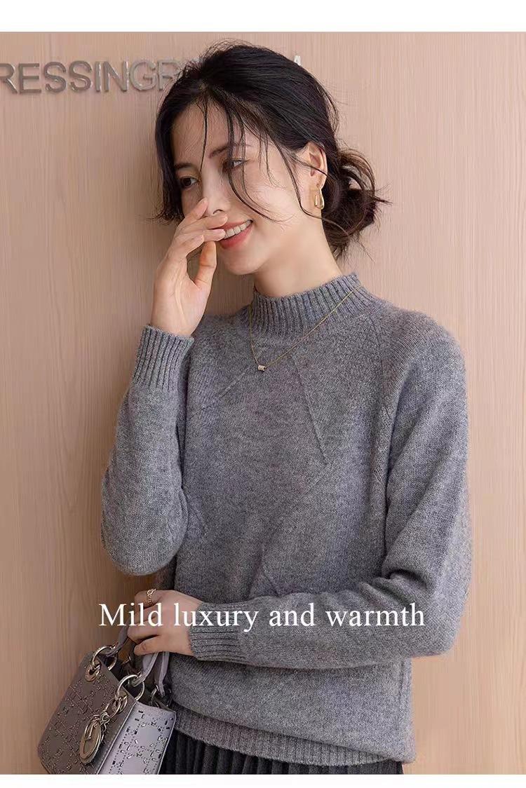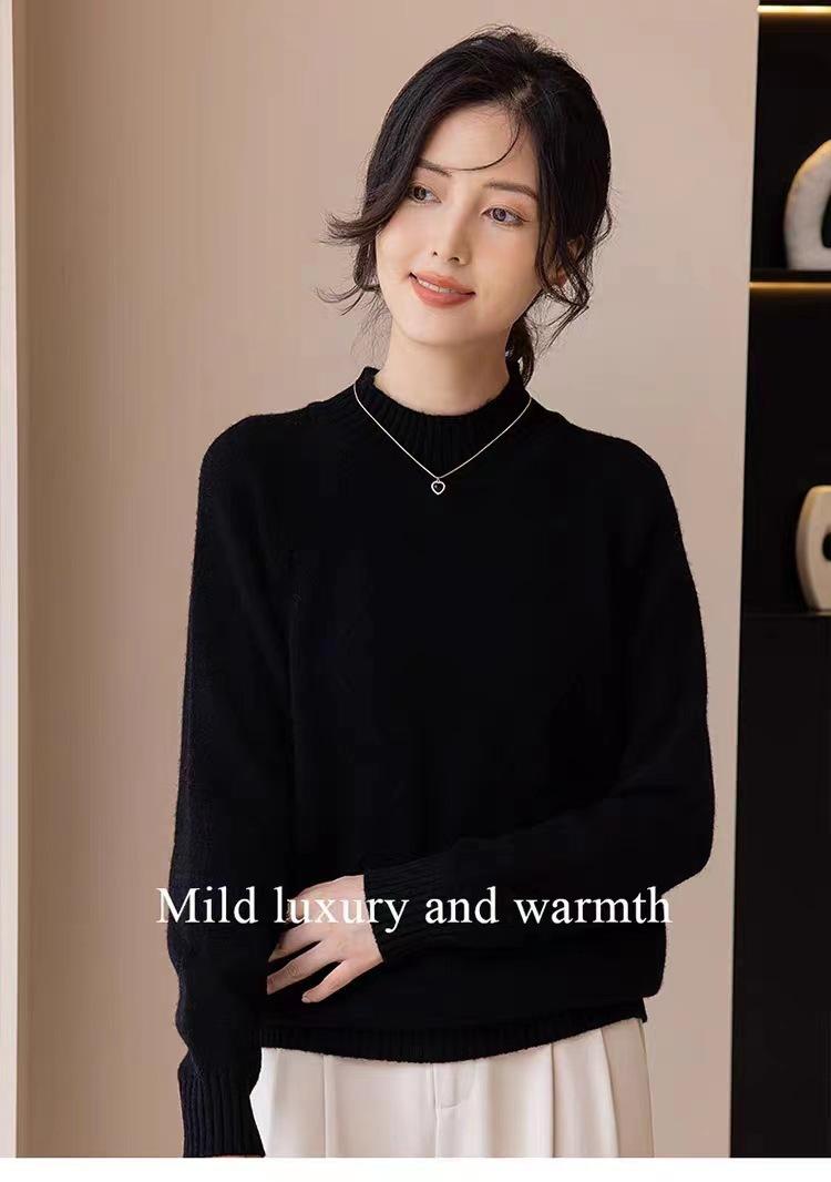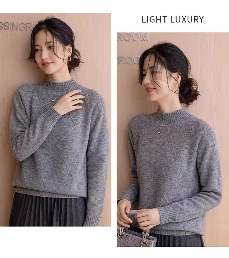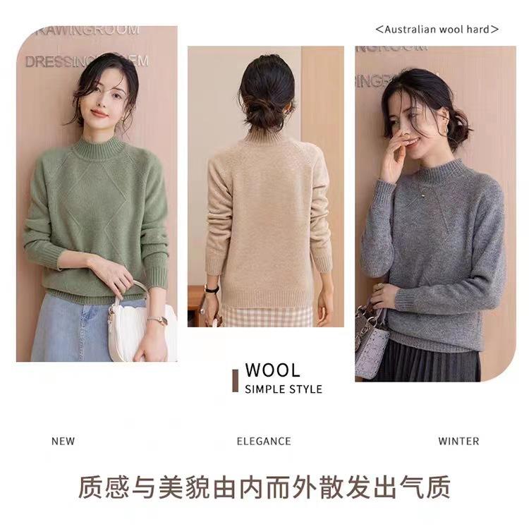 Suéter grueso de cuello alto medio 100% lana para mujer, nuevo suéter interior holgado corto, jersey de cuello medio, camisa básica superior