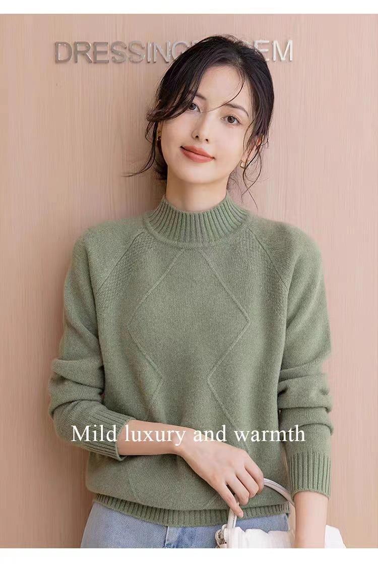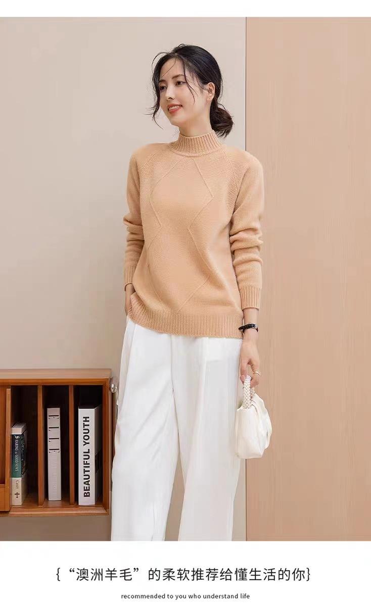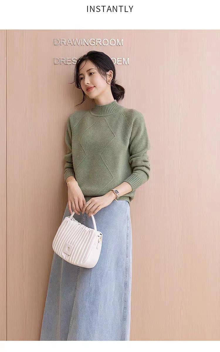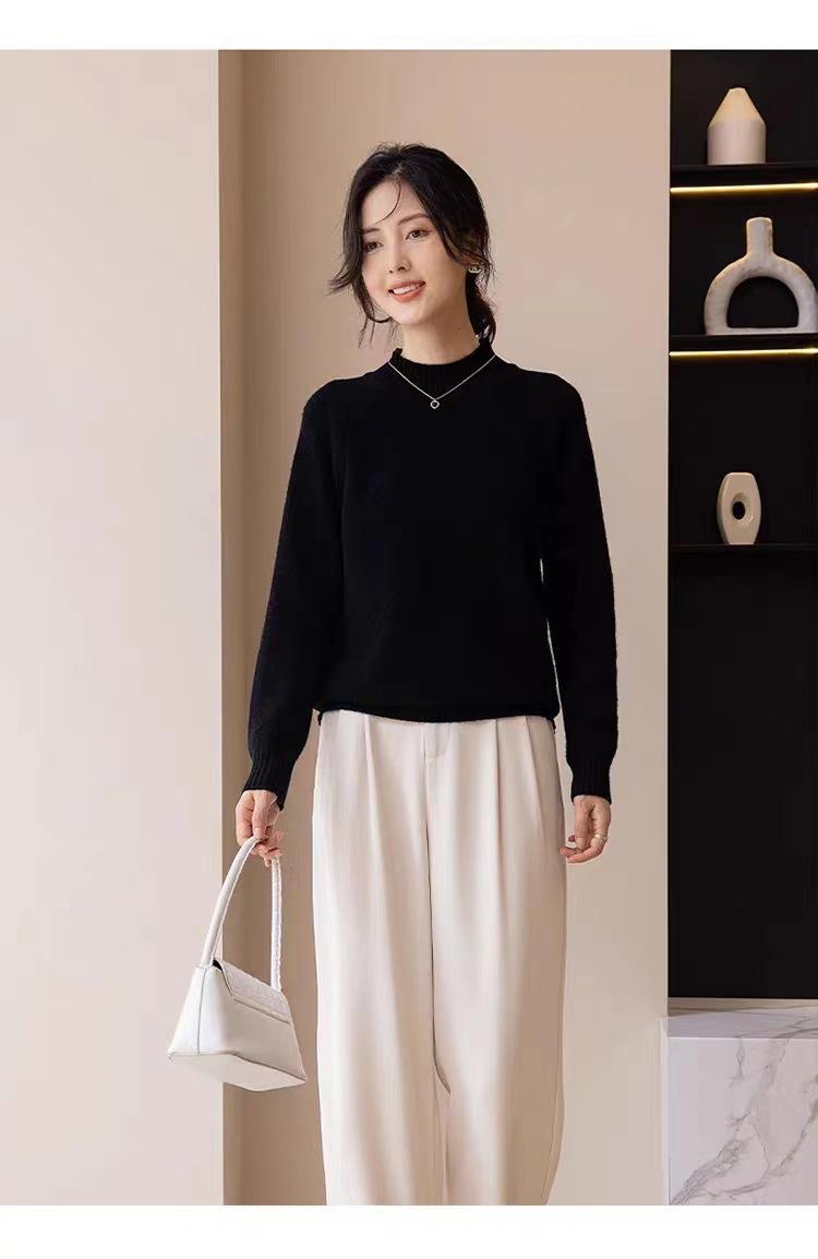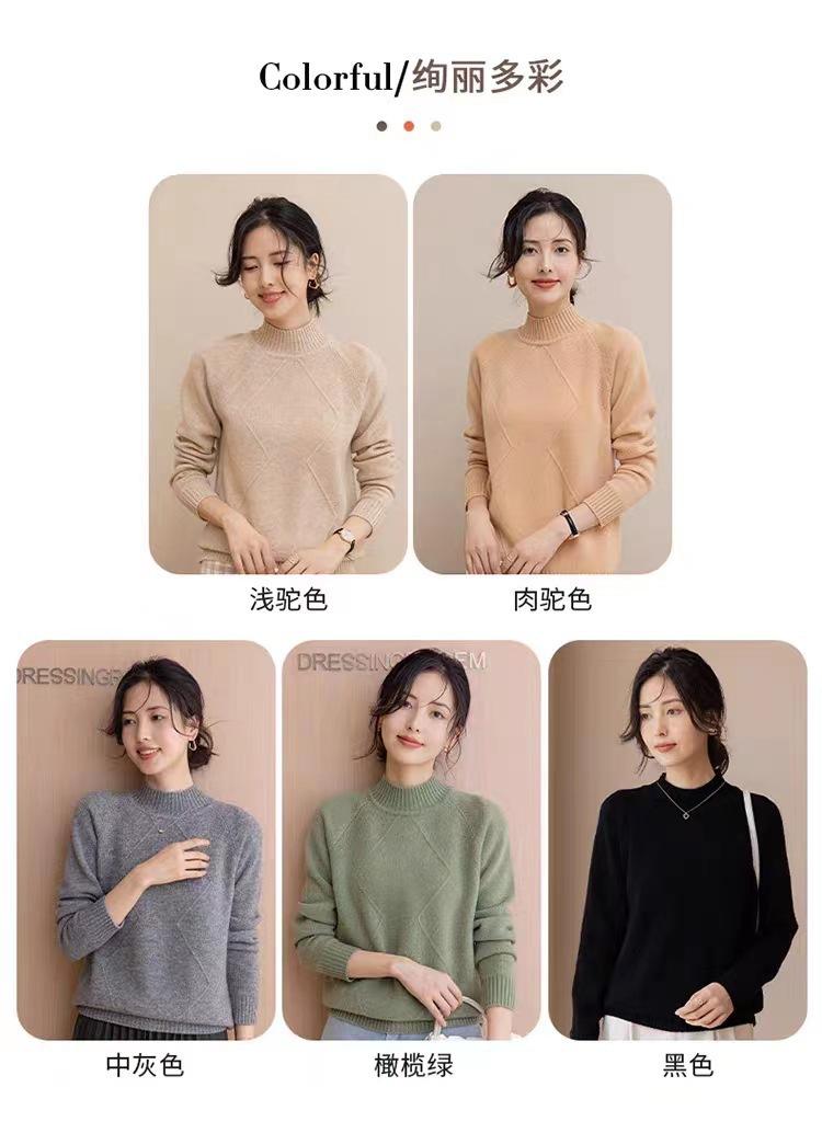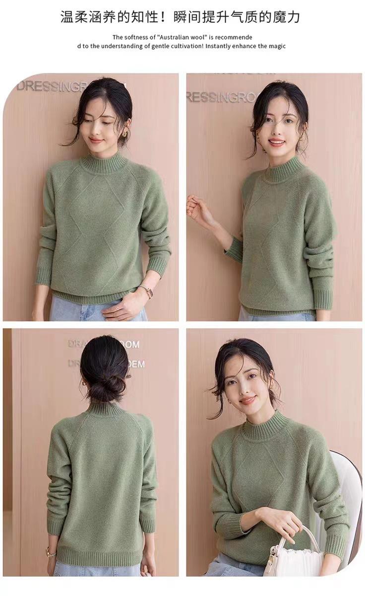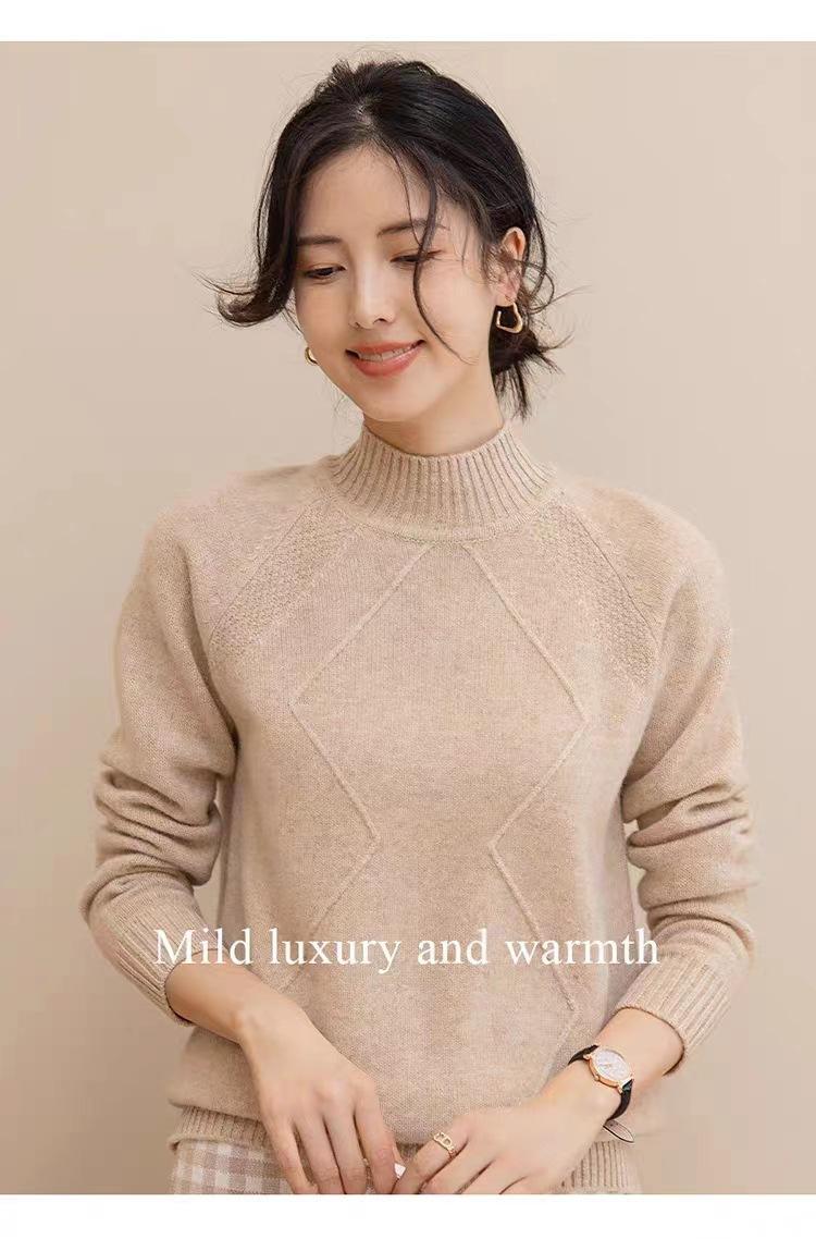 Suéter grueso de cuello alto medio 100% lana para mujer, nuevo suéter interior holgado corto, jersey de cuello medio, camisa básica superior