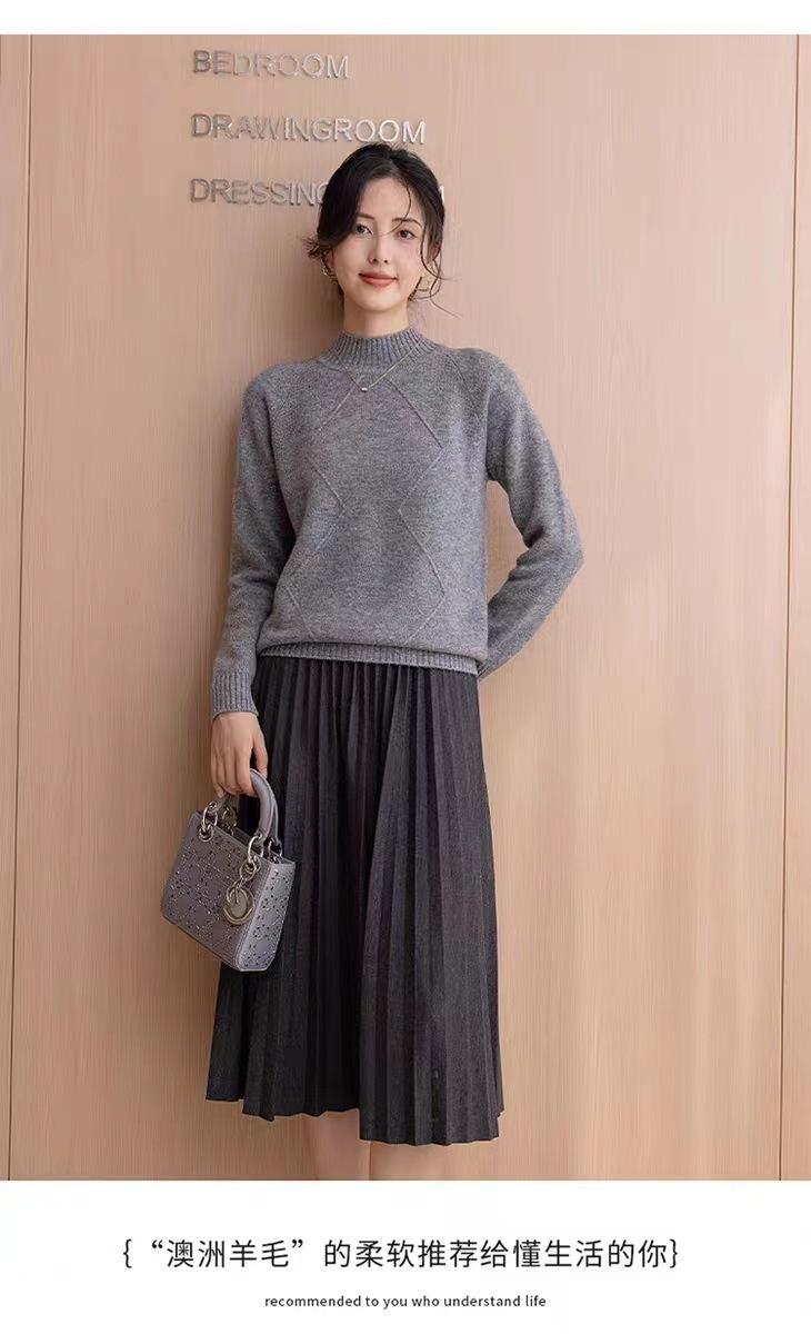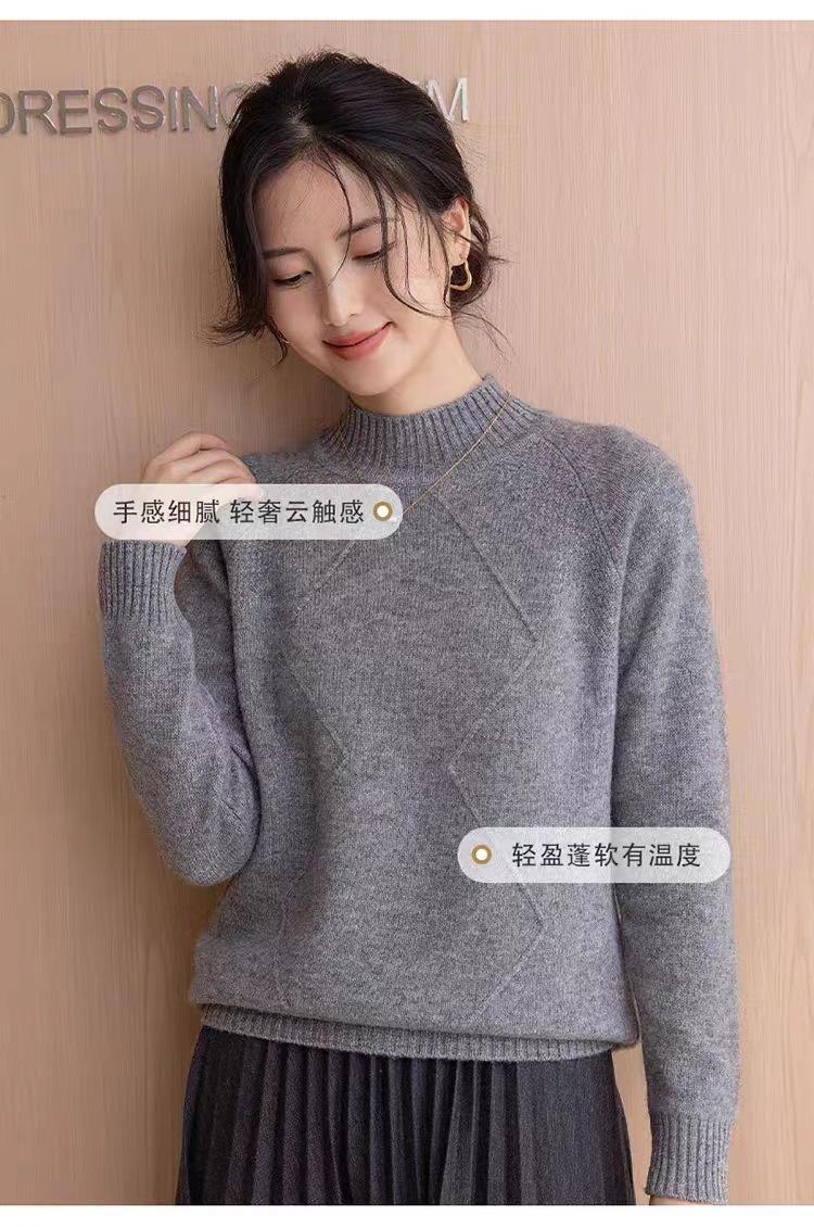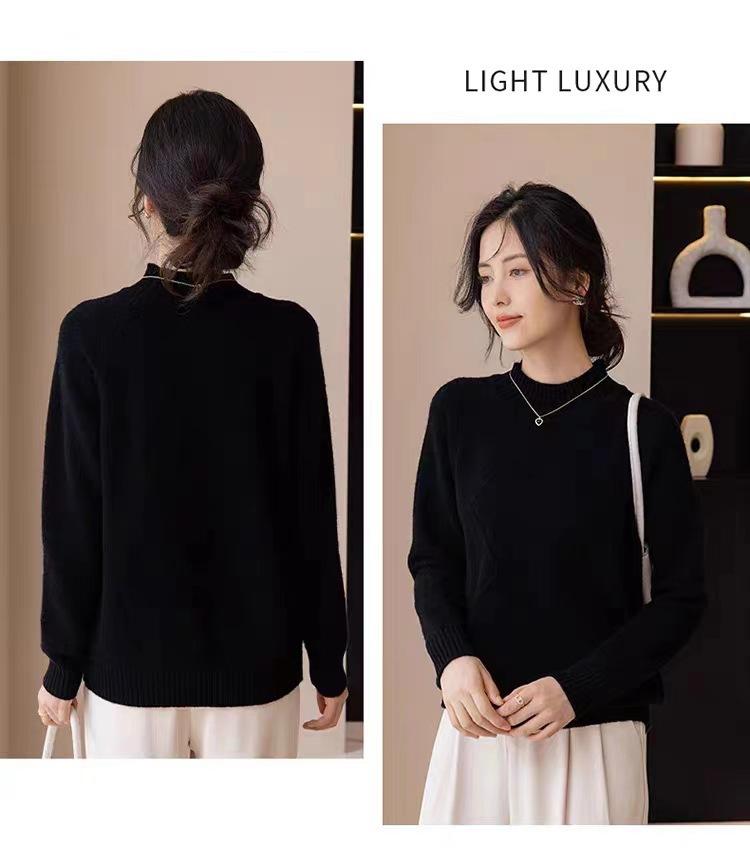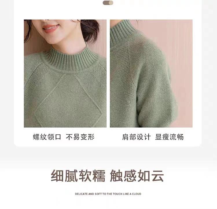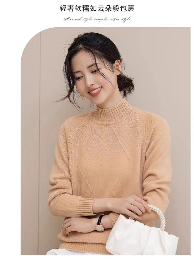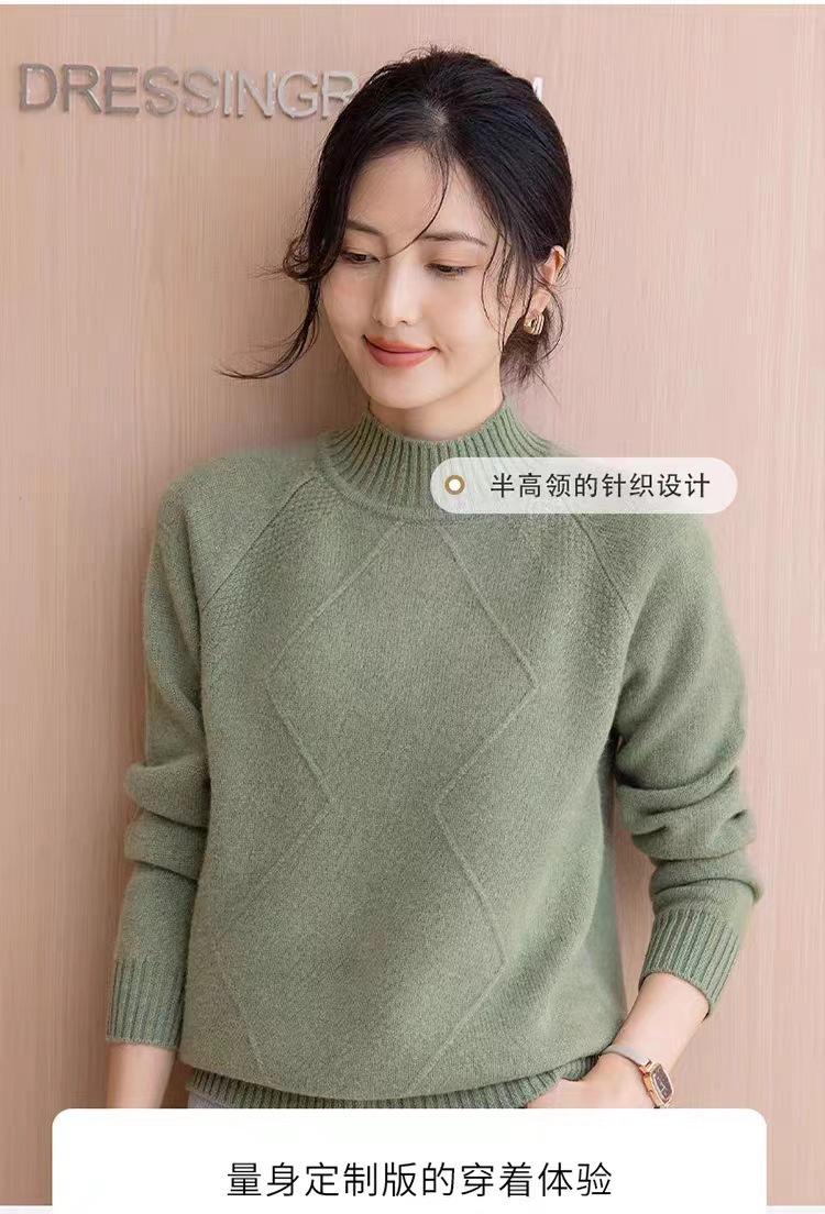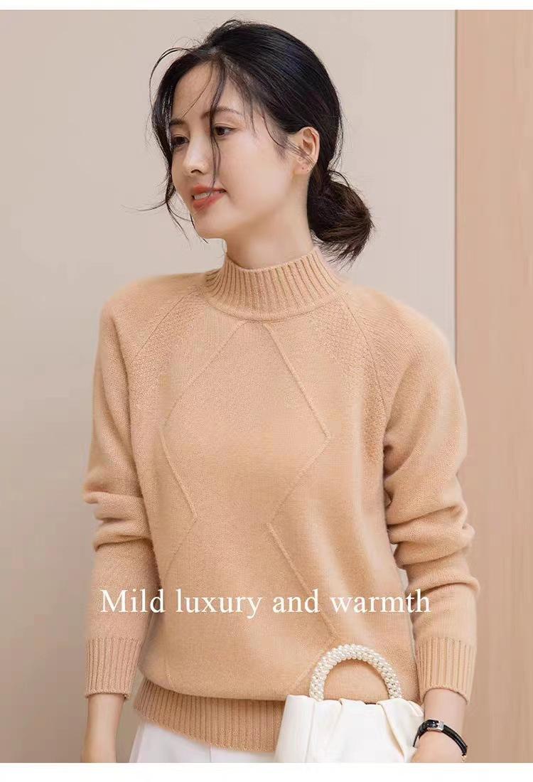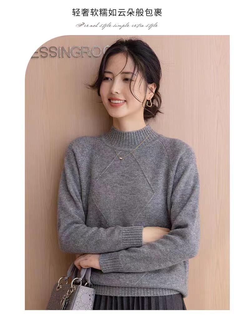 Suéter grueso de cuello alto medio 100% lana para mujer, nuevo suéter interior holgado corto, jersey de cuello medio, camisa básica superior