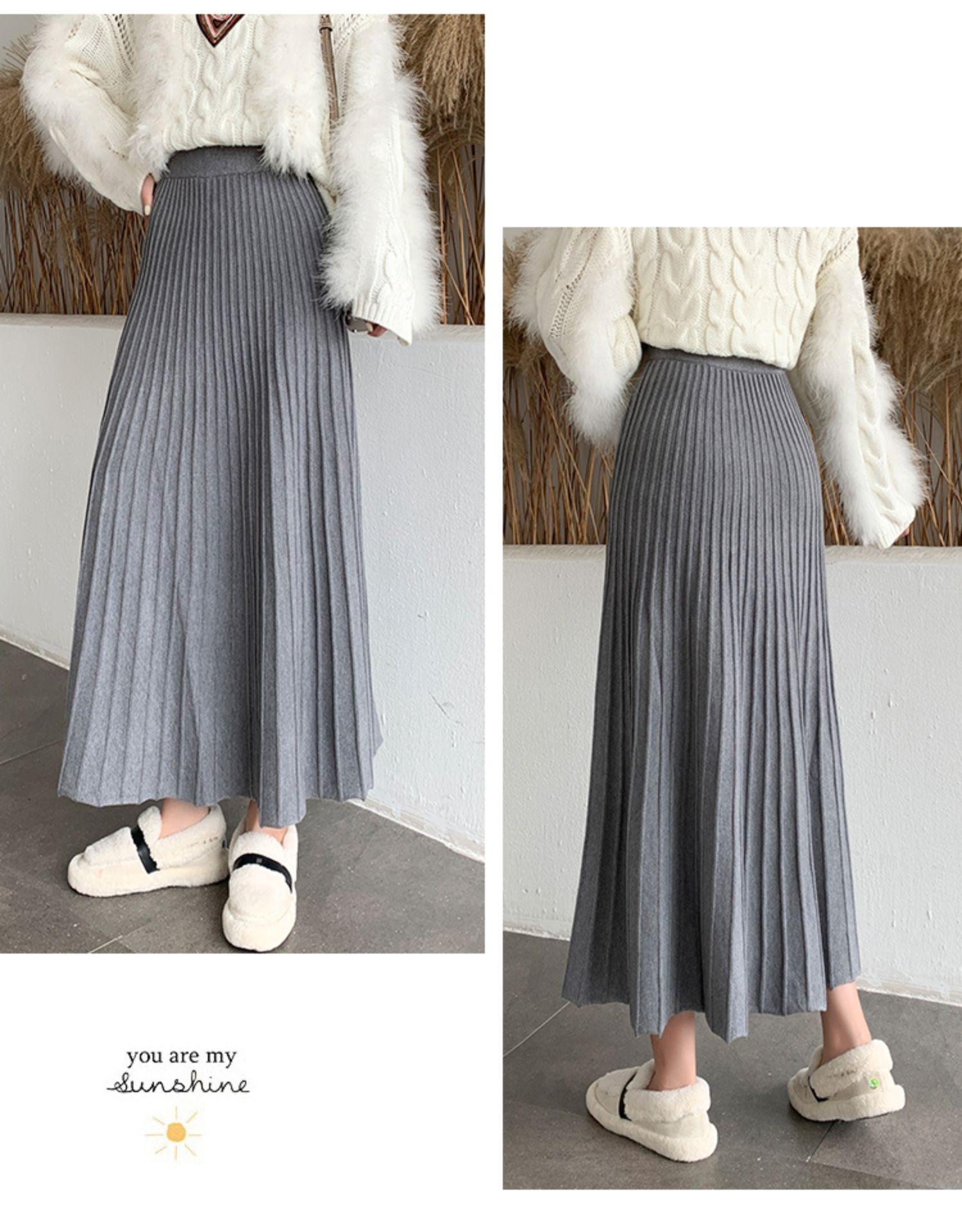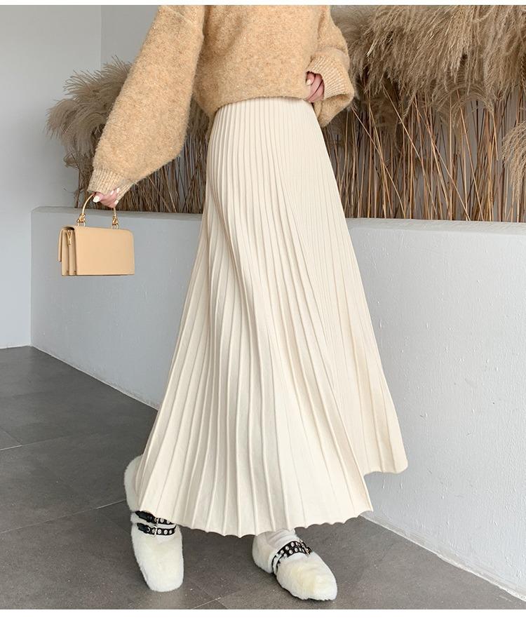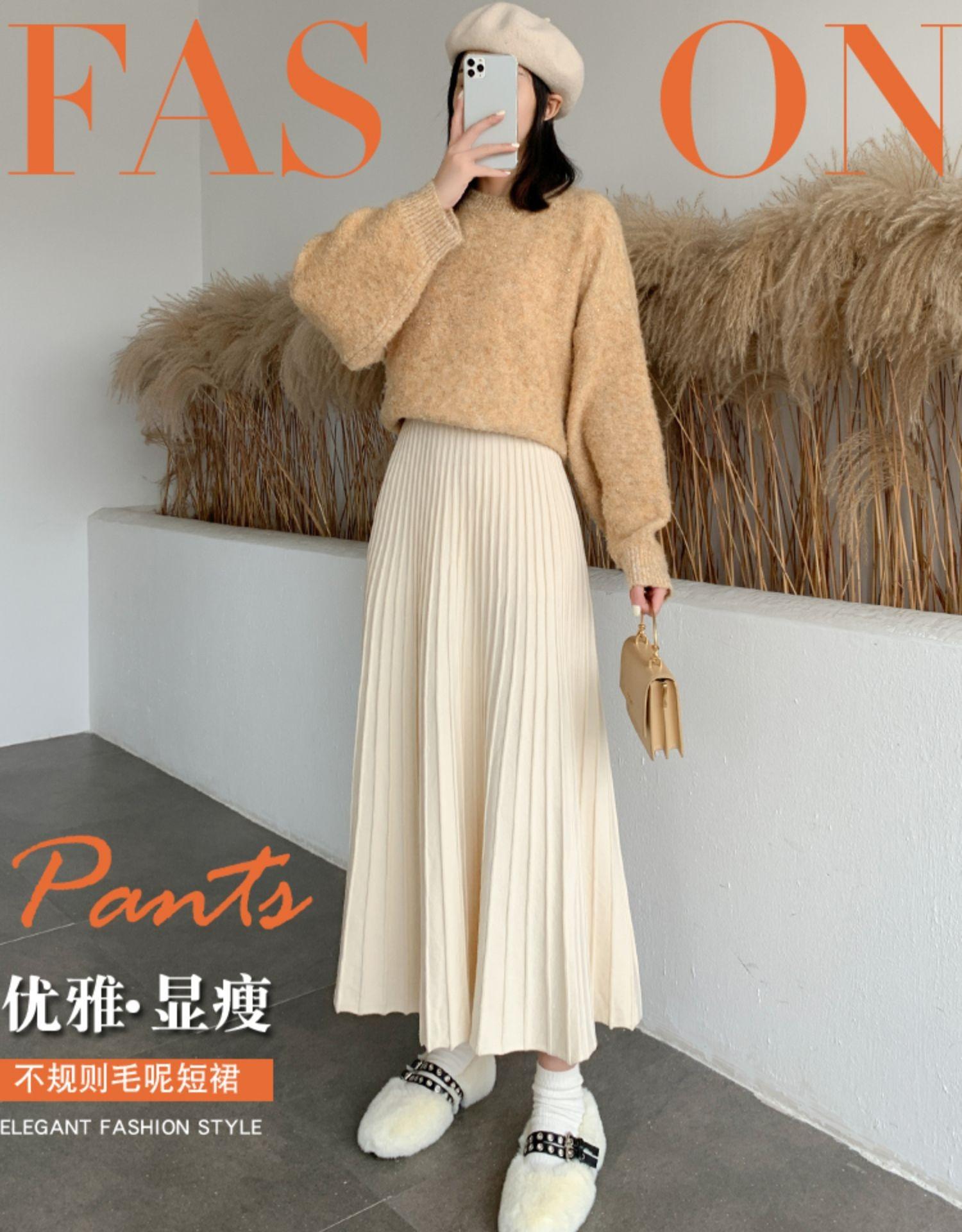 Falda de lana de longitud media para mujer, falda tipo paraguas en forma de A, plisada, con suéter, versátil, de punto, para otoño e invierno, 2023