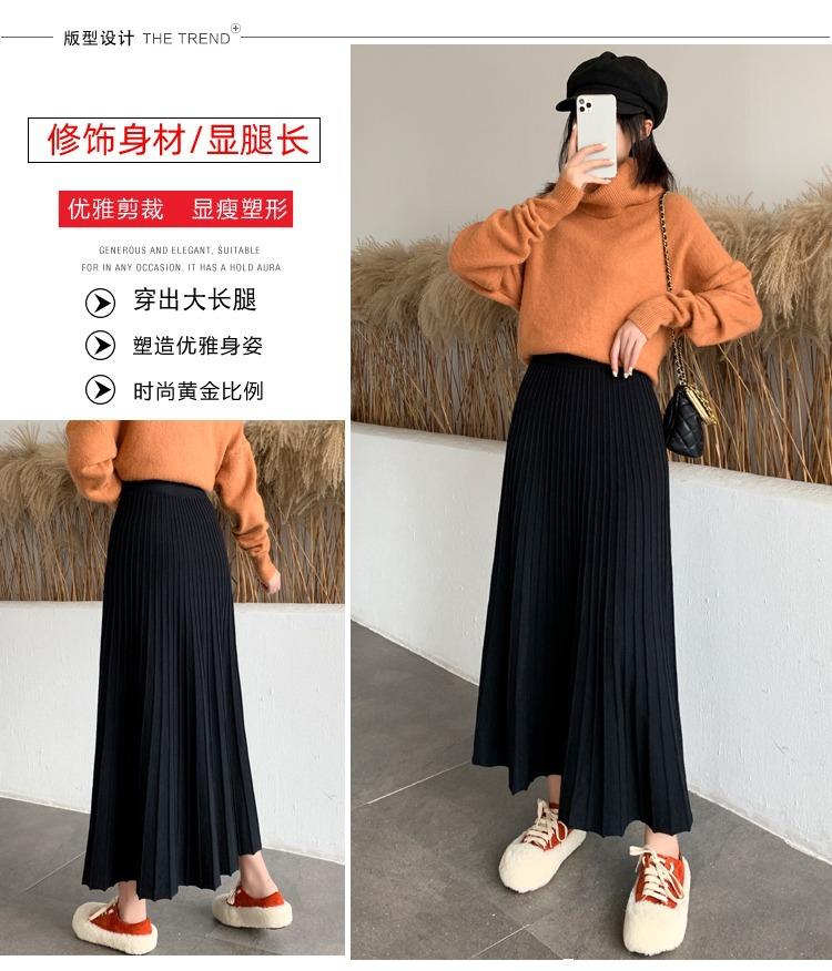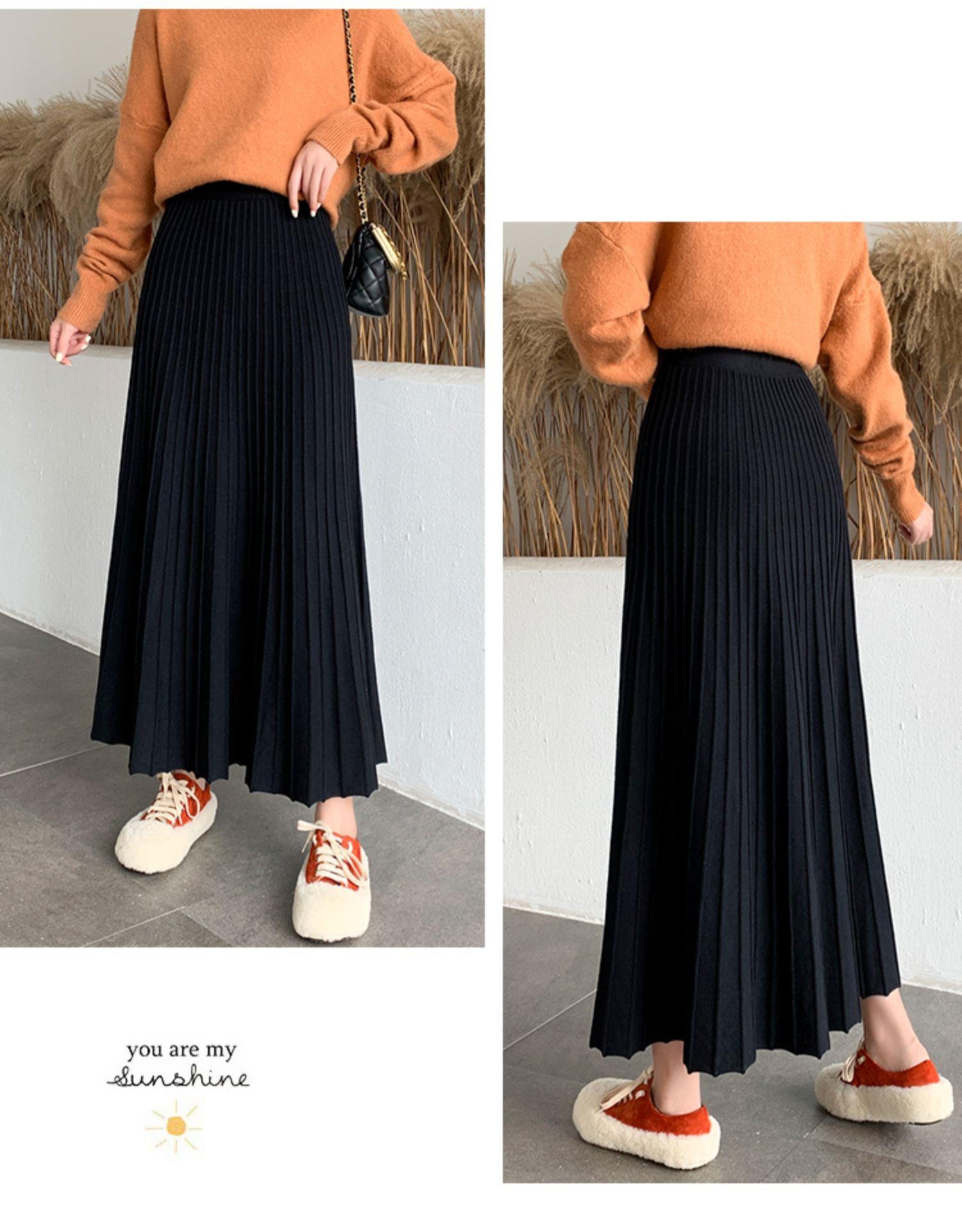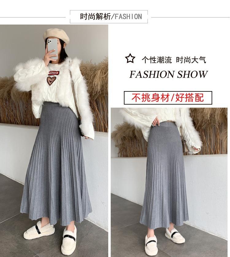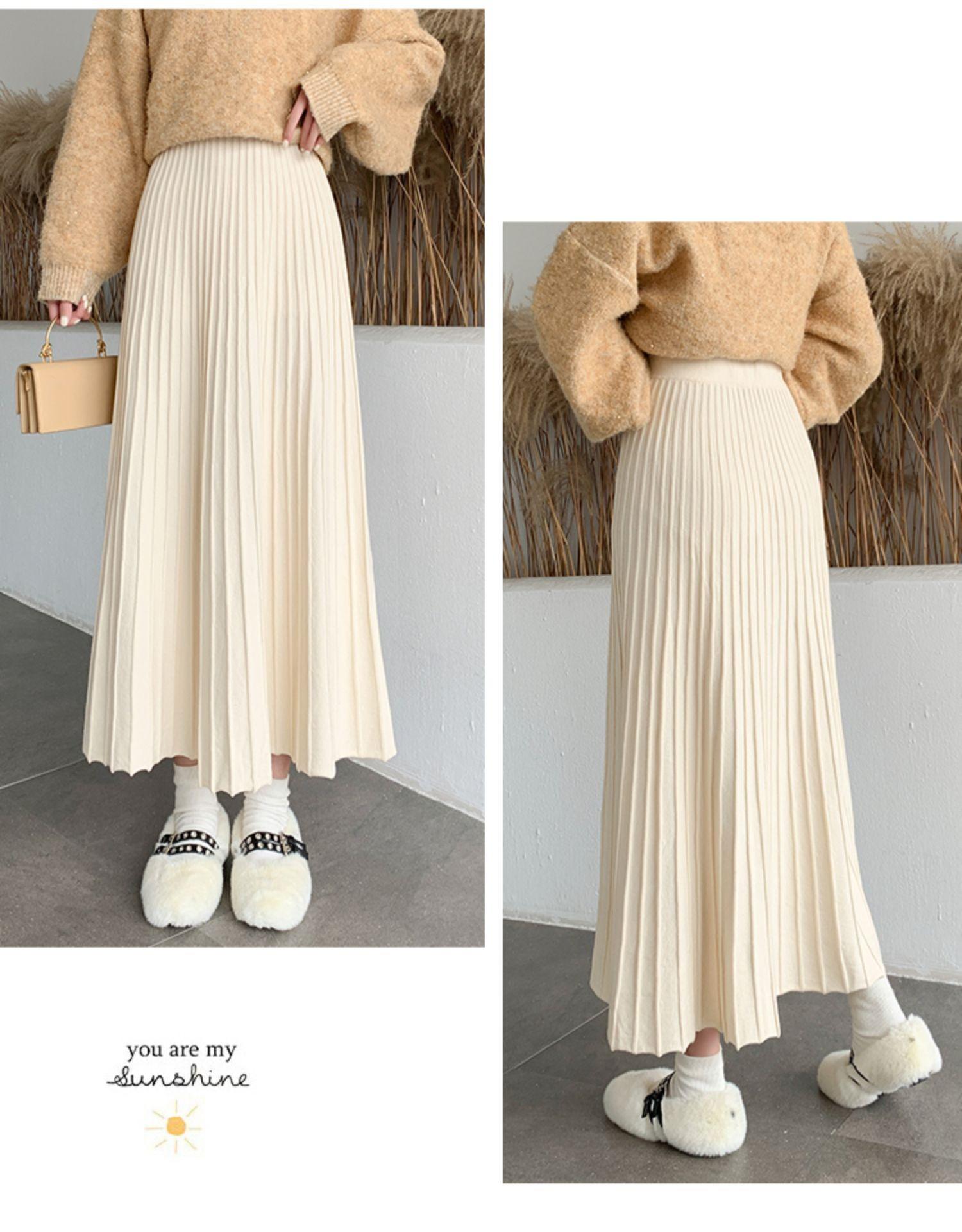 Falda de lana de longitud media para mujer, falda tipo paraguas en forma de A, plisada, con suéter, versátil, de punto, para otoño e invierno, 2023