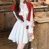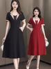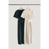 Vestido de leche de papaya, cuello redondo, primavera y otoño, recién llegado, manga de siete puntos, largo medio, costura irregular, dulce y elegante falda.