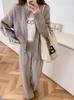 Traje de punto estilo coreano estilo perezoso para mujer 2024 nuevo chaqueta con cremallera torcida pantalones casuales de pierna ancha de dos piezas 186