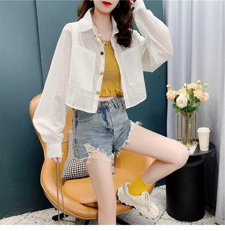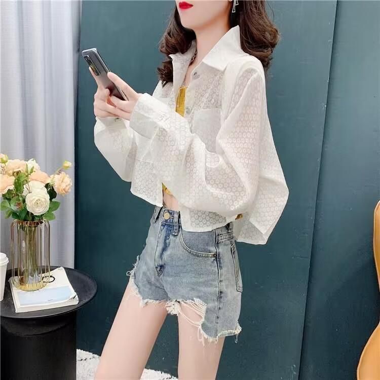 Camisa de Protección Solar Estilo Hong Kong para Mujer Blanca Diseño Corto 2023 Nueva Primavera Otoño Verano Top Delgado Chaqueta Trendy