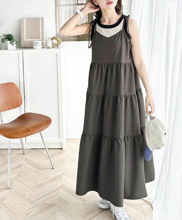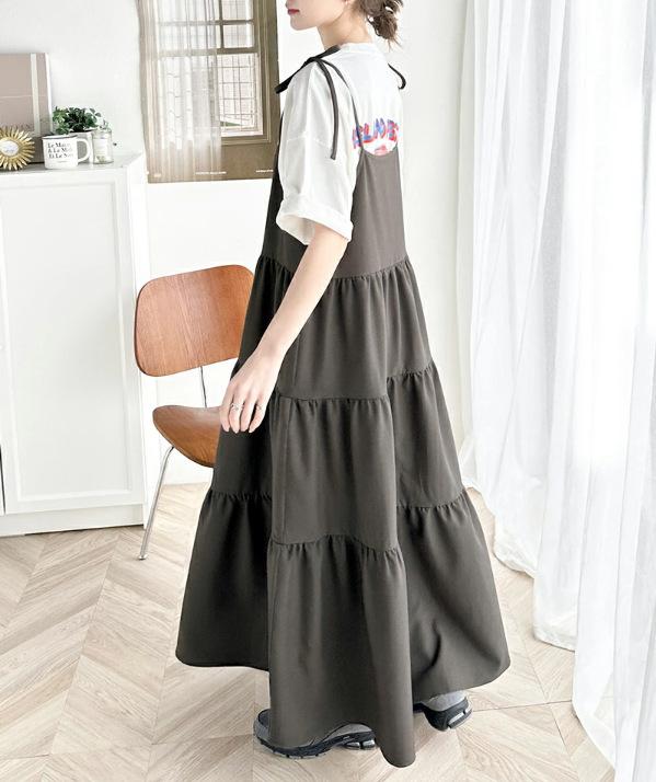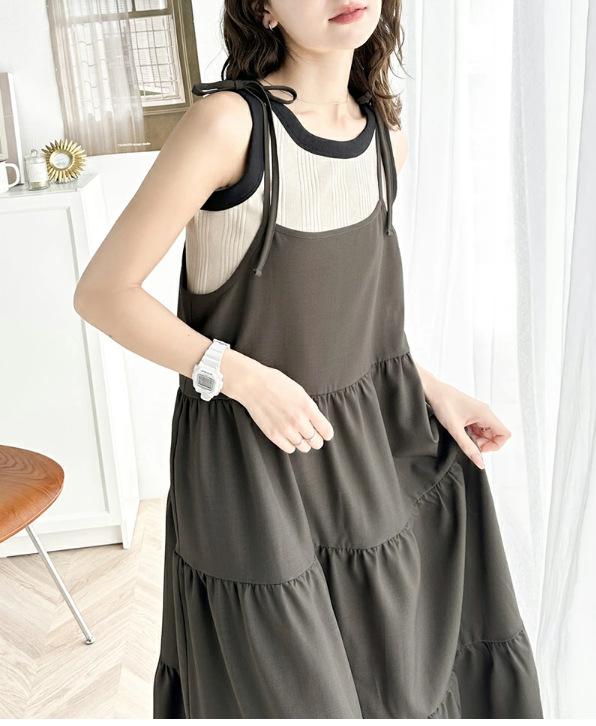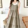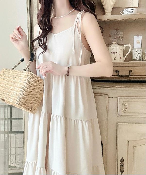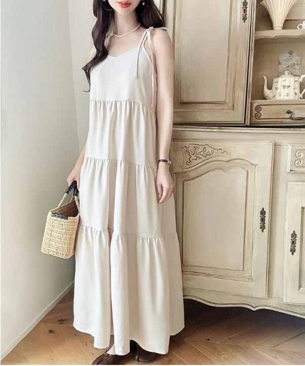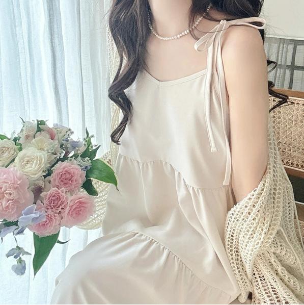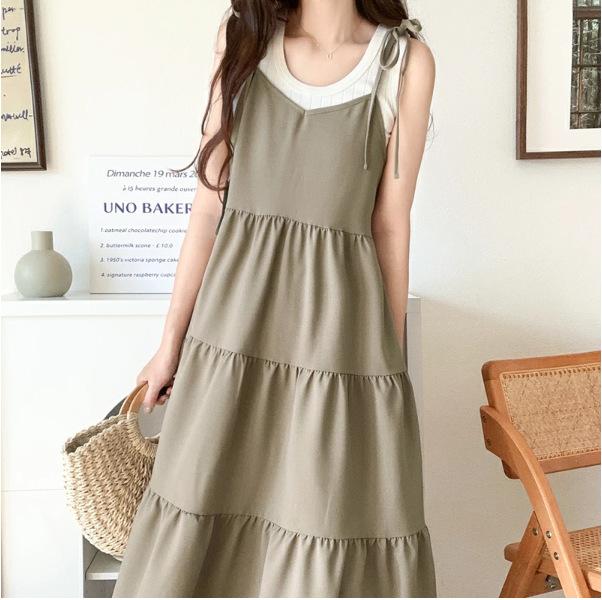 Vestido francés de verano con tirantes, estilo vintage, escote en V, a juego, dulce, color liso, midi, vestido pastel para mujer