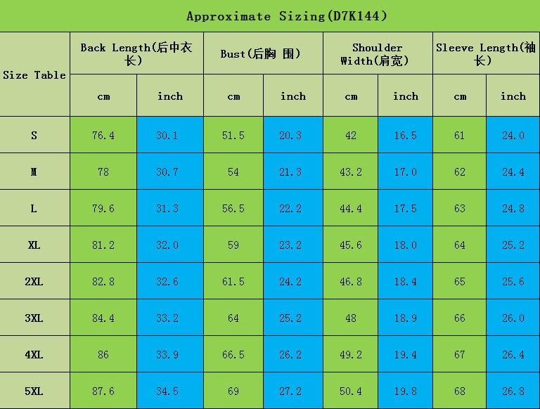 S, M, L, XL, XXL, 3XL, 4XL, 5XL