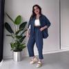 Otoño 2024, nueva ropa transfronteriza de Amazon europea y americana para mujer, conjunto de dos piezas de camisa y pantalón informal holgado con solapa de color liso