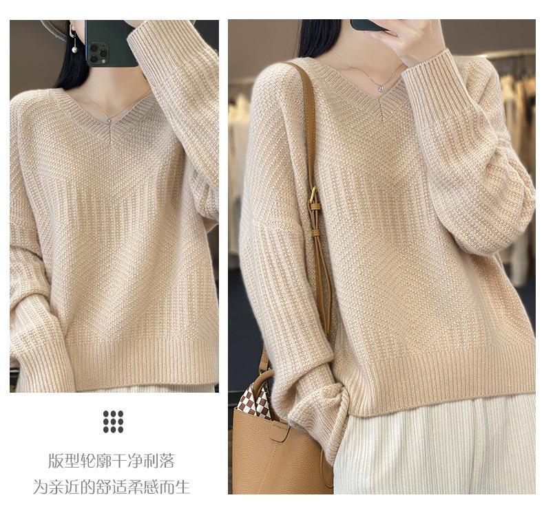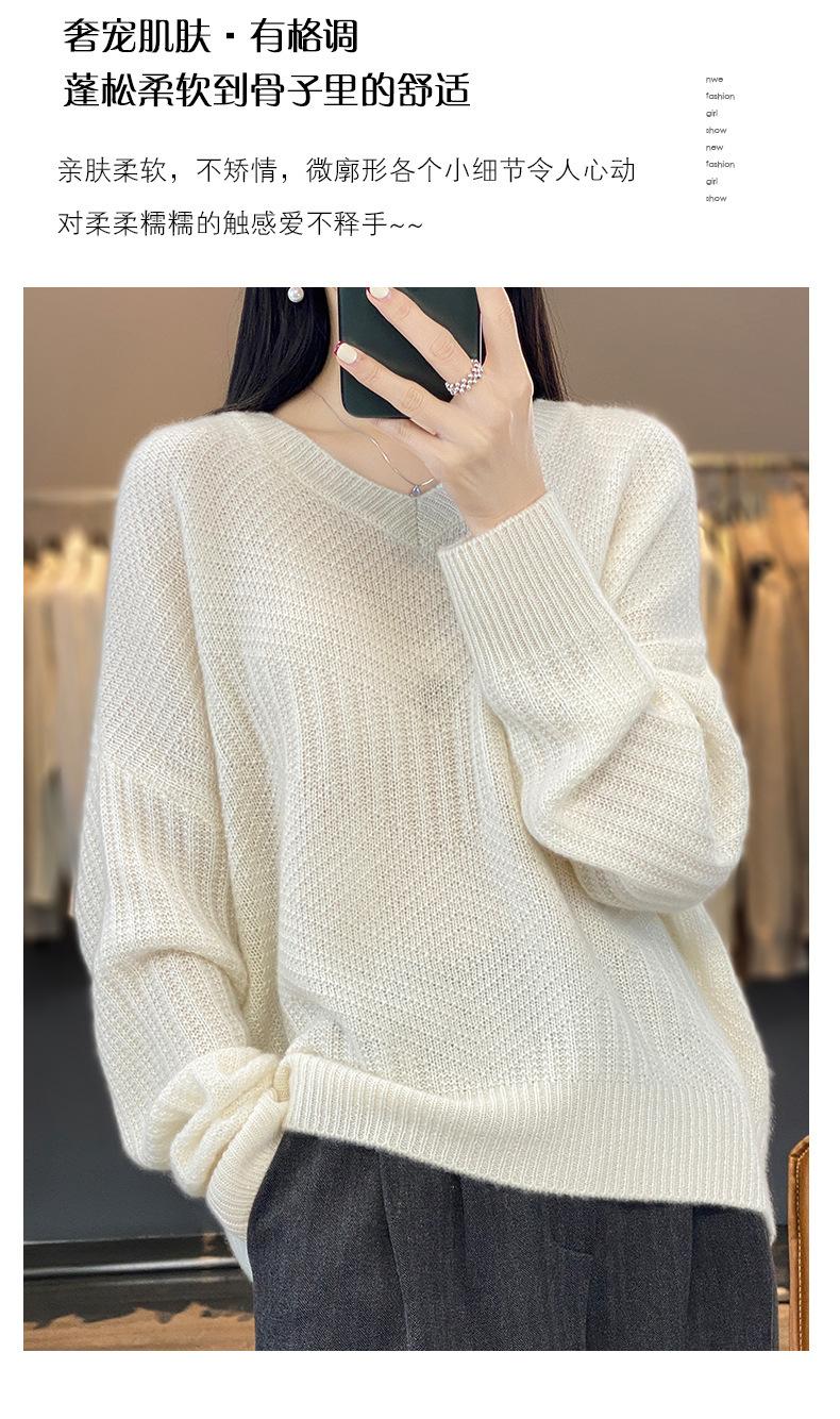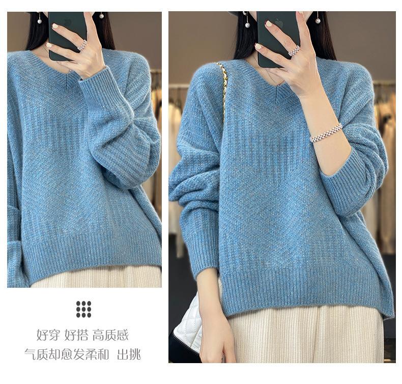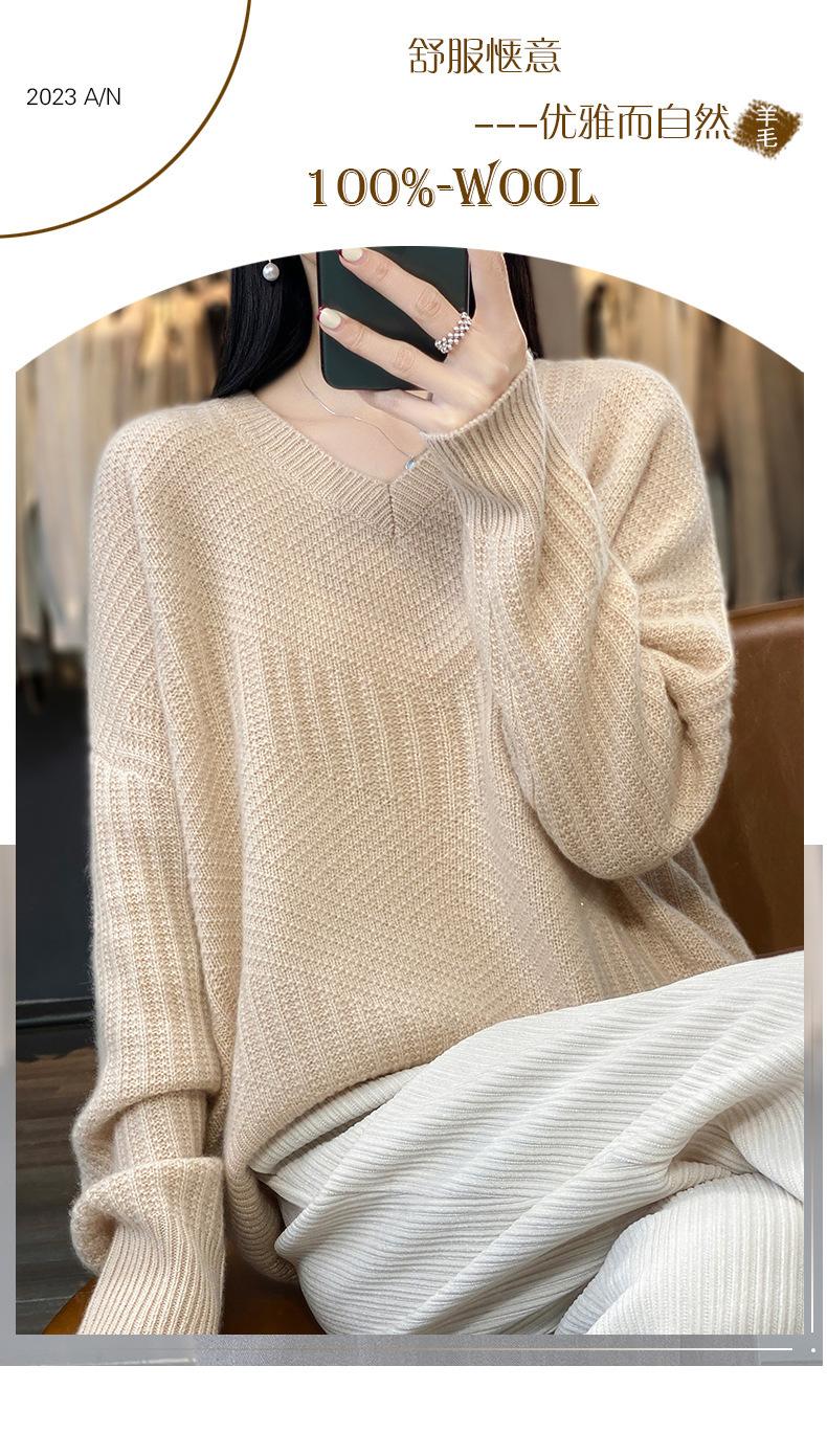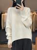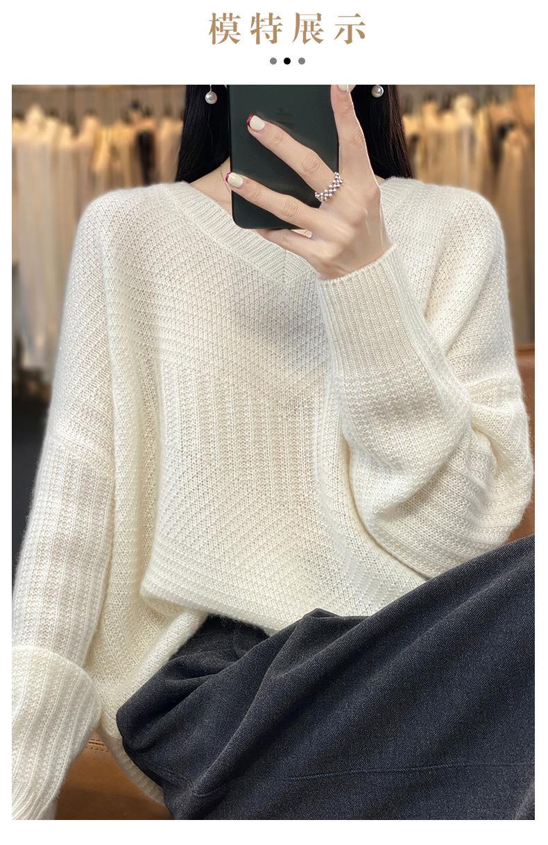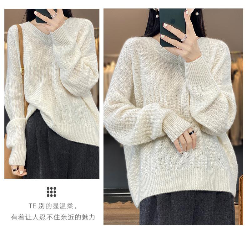 Suéter de Lana Estilo Coreano Nuevo Otoño e Invierno 2025 para Mujer, Cuello Redondo, Cuello en V, Mangas Largas, Suéter Holgado de Cachemira Tejido para Usar Debajo