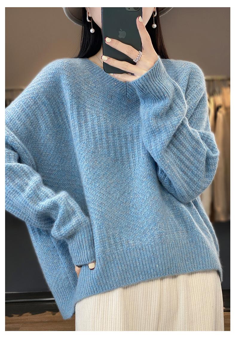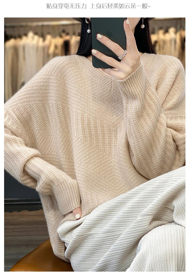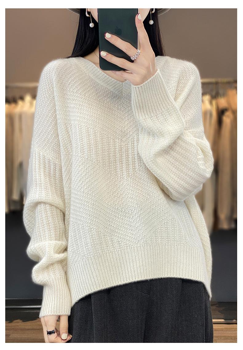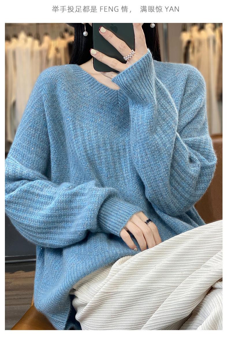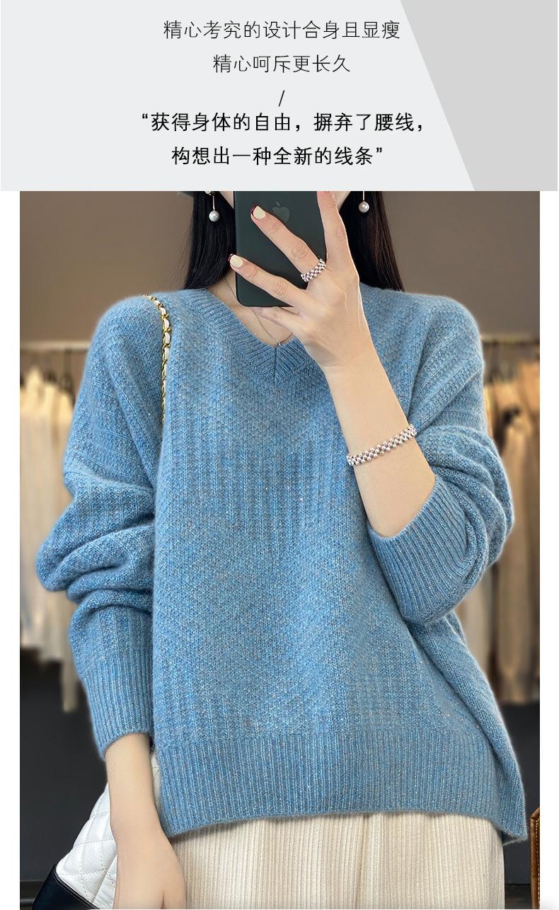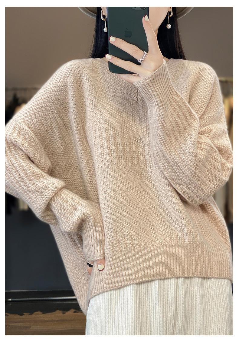 Suéter de Lana Estilo Coreano Nuevo Otoño e Invierno 2025 para Mujer, Cuello Redondo, Cuello en V, Mangas Largas, Suéter Holgado de Cachemira Tejido para Usar Debajo