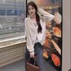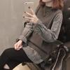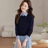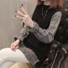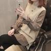 2024 Tejido de punto de dos piezas falsas con empalme a cuadros para mujer, jersey holgado para exterior, tejido de punto de manga acampanada, ropa de otoño para mujer
