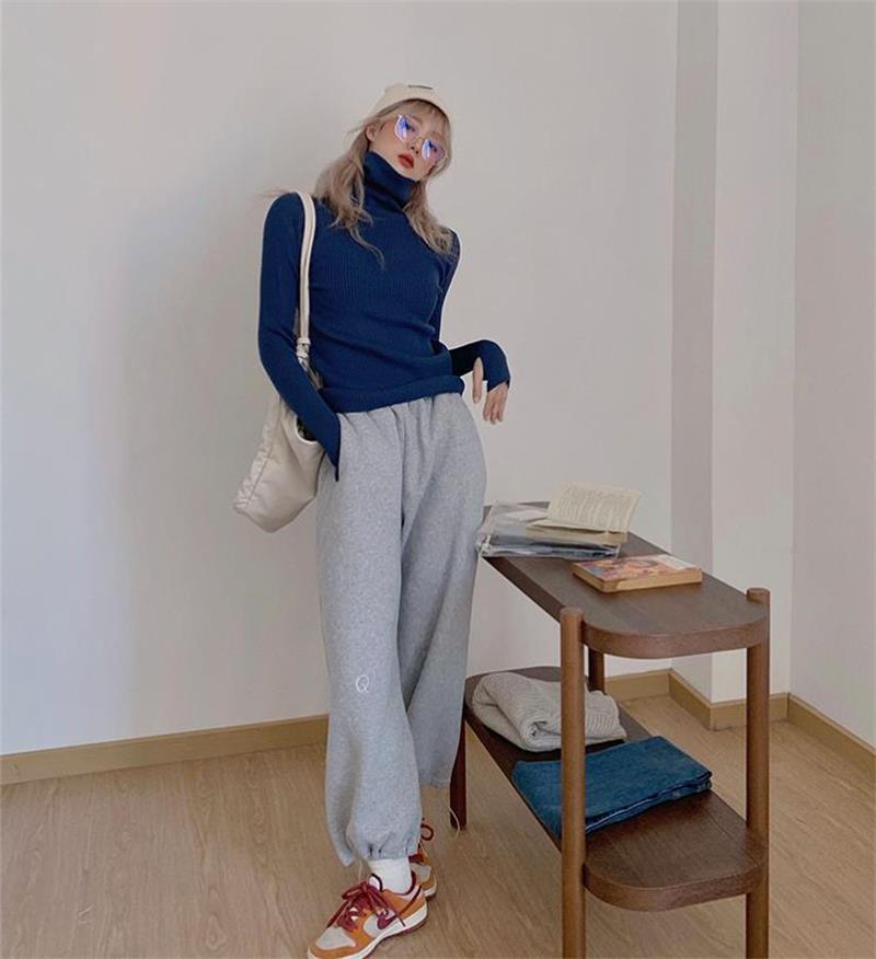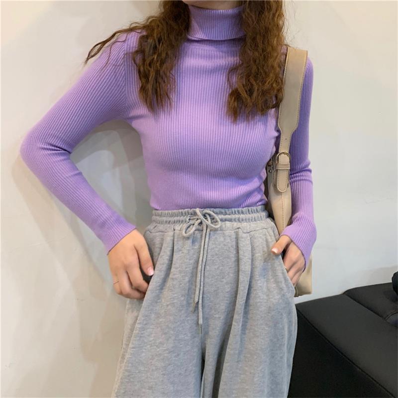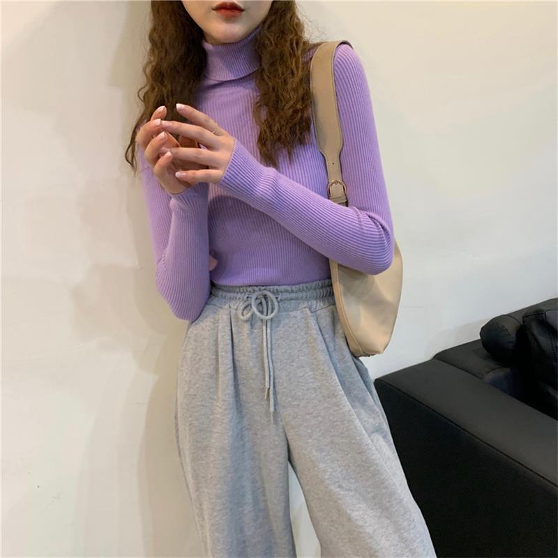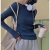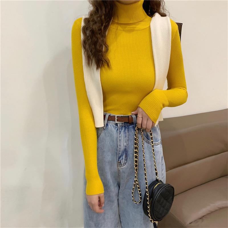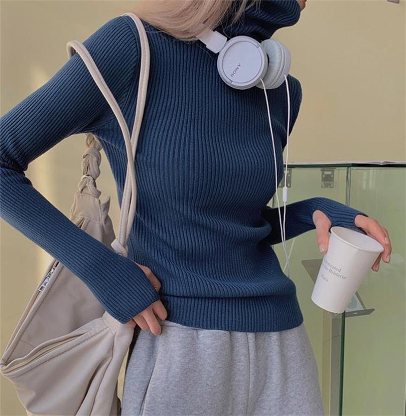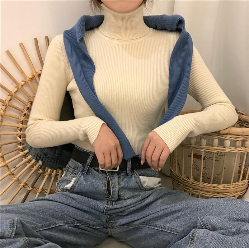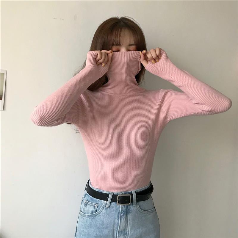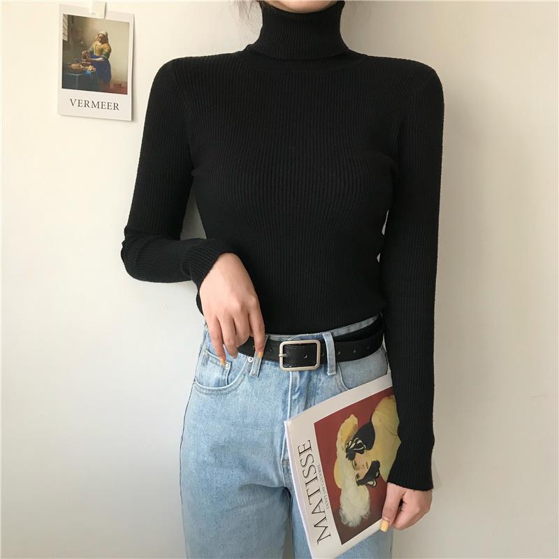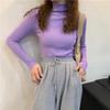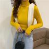 Camisa de punto de manga larga ajustada, gruesa, de cuello alto, color negro, estilo coreano, nueva, para otoño e invierno, cálida
