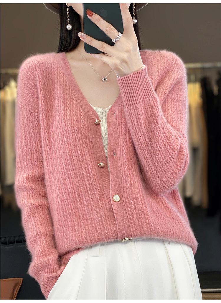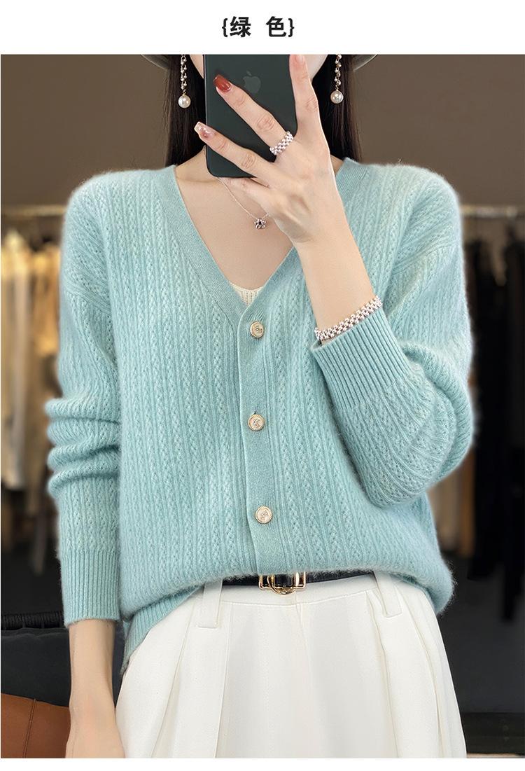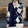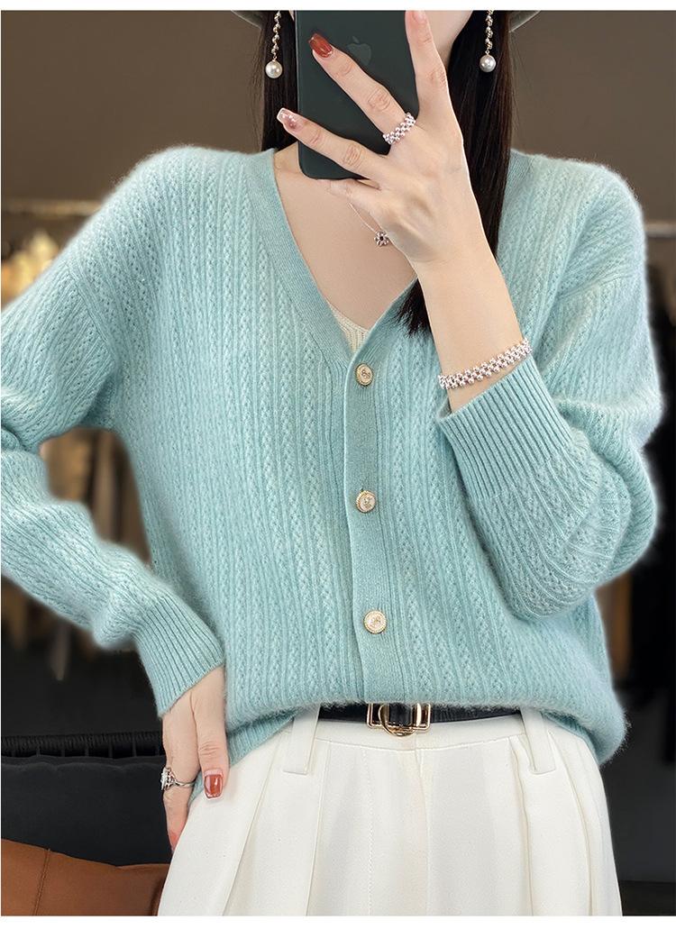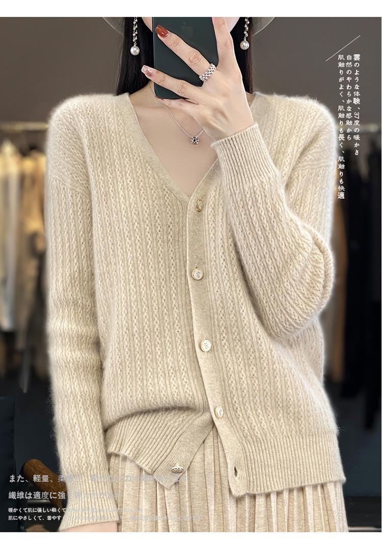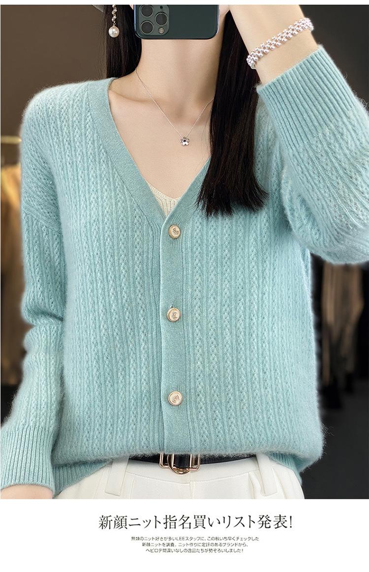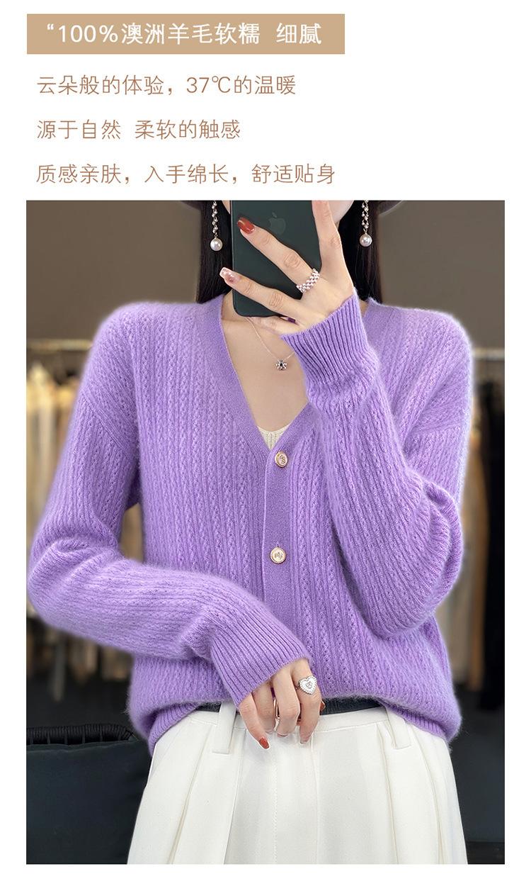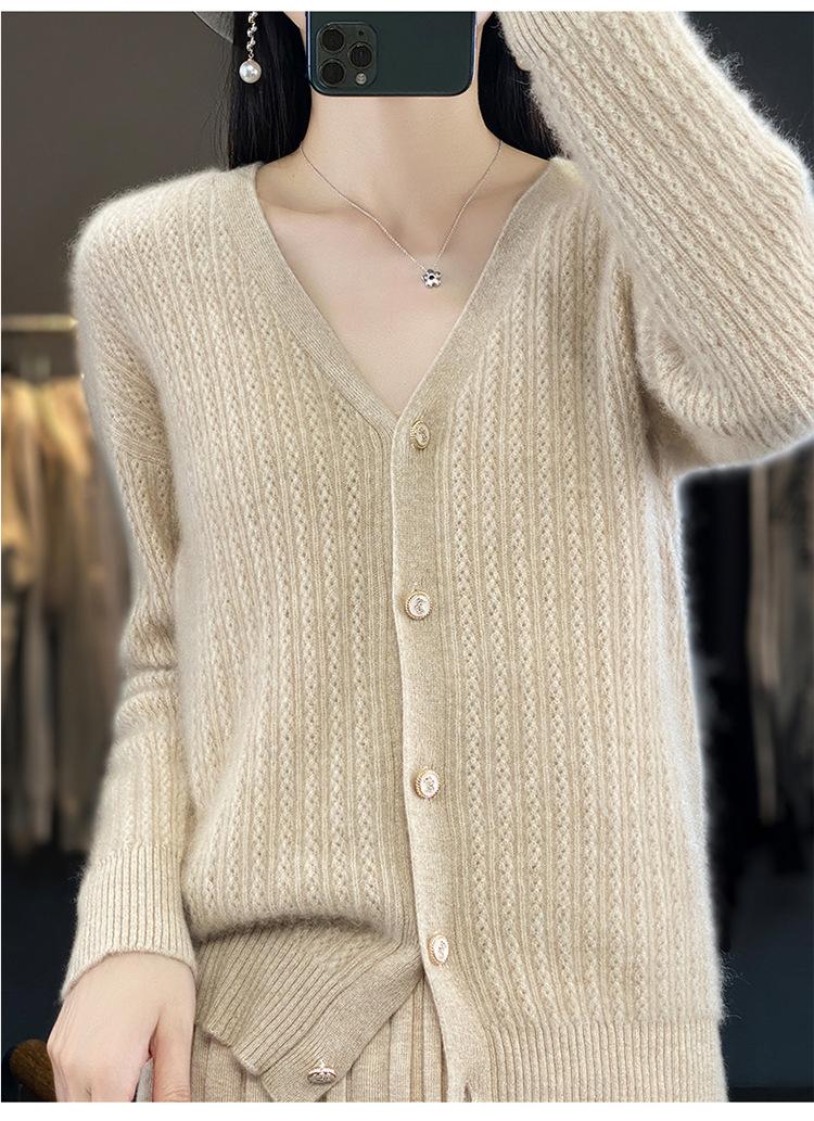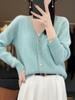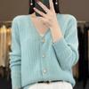 Cárdigan de lana pura para mujer, suéter holgado torcido con cuello en V, abrigo informal de moda de punto, nuevo otoño e invierno